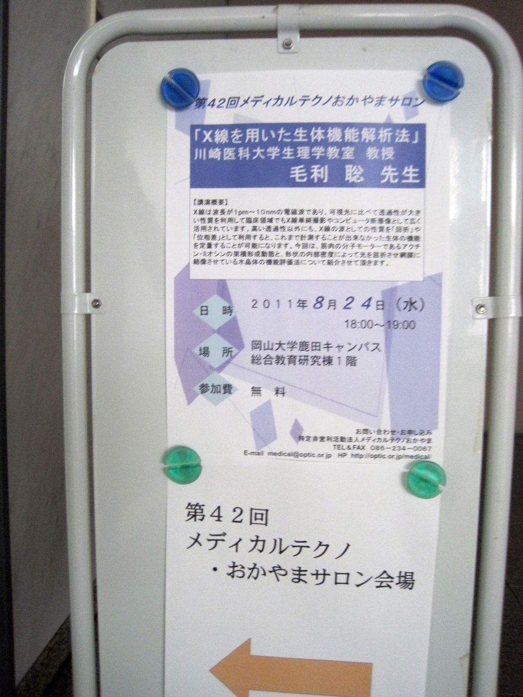 SPring 8 での研究の成果で,心臓が動くときの,アクチンとミオシンの結合の様子とか眼の水晶体の解析とか・・・興味深いお話でした。