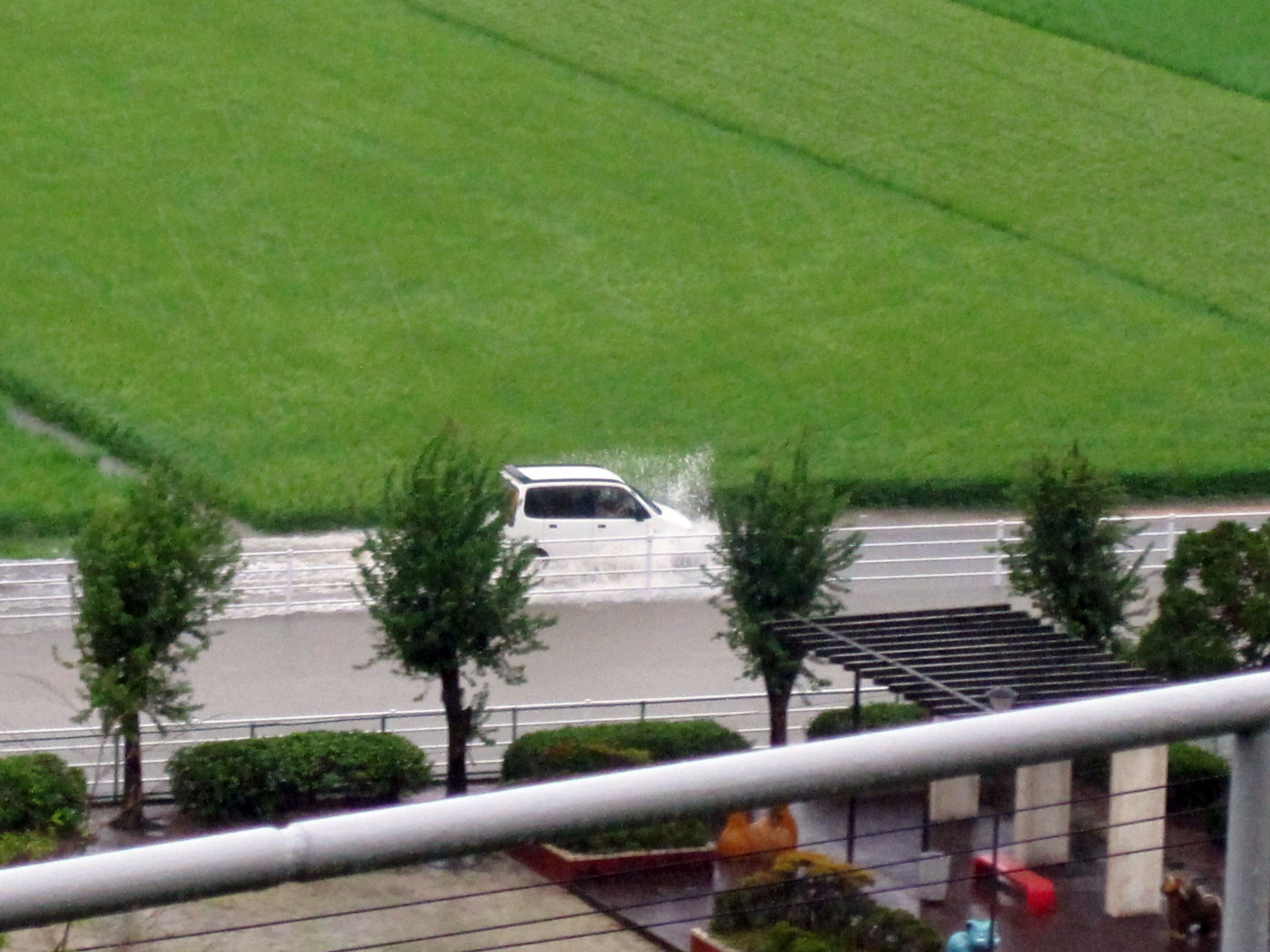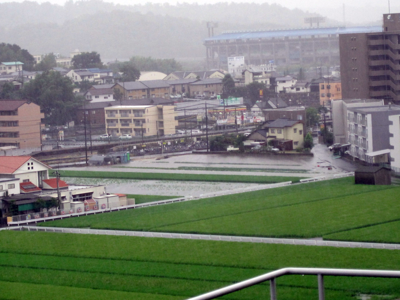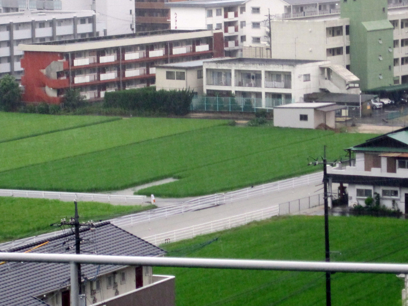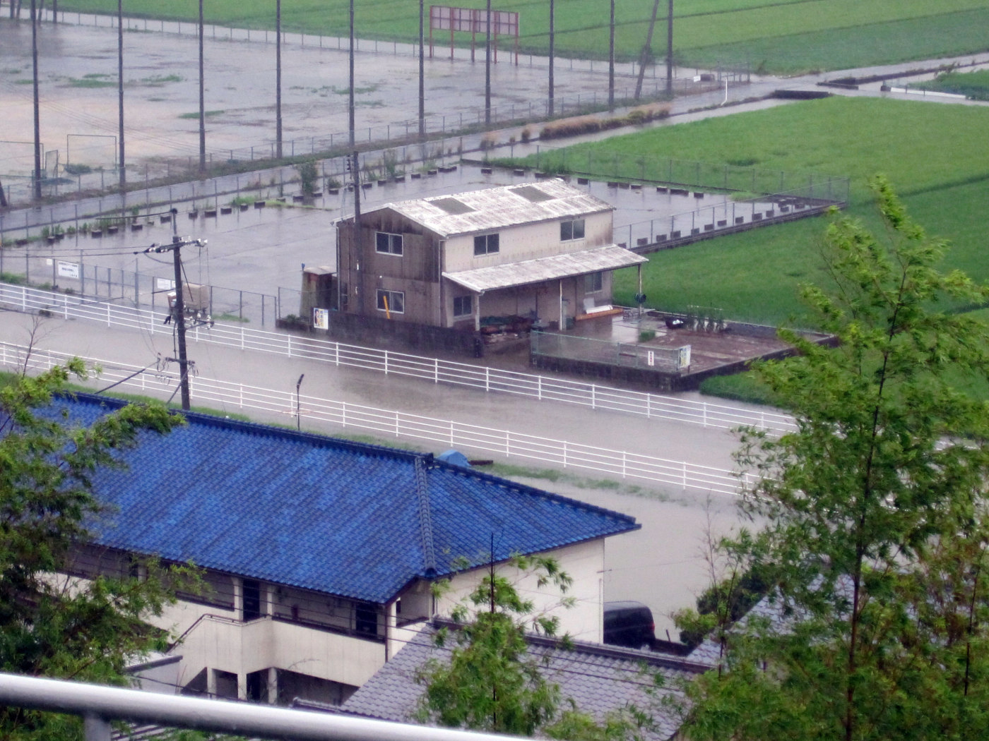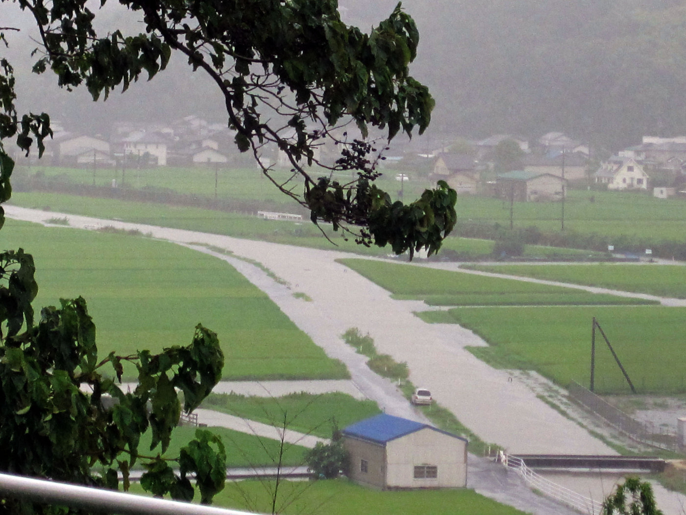 教室の窓の外は,田圃が広がっていて,用水路である六間川が流れているのですが,溢れて,川沿いの細い道路とかが,冠水していますし,田圃にも流れ込んでいる様です。