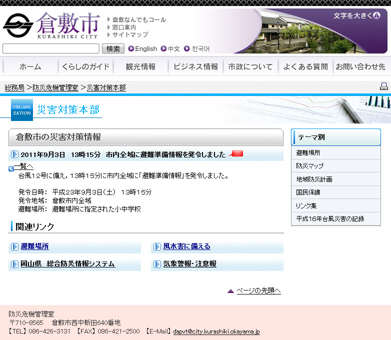 避難の方々,被災の方々には心からお見舞いを申し上げます。 |