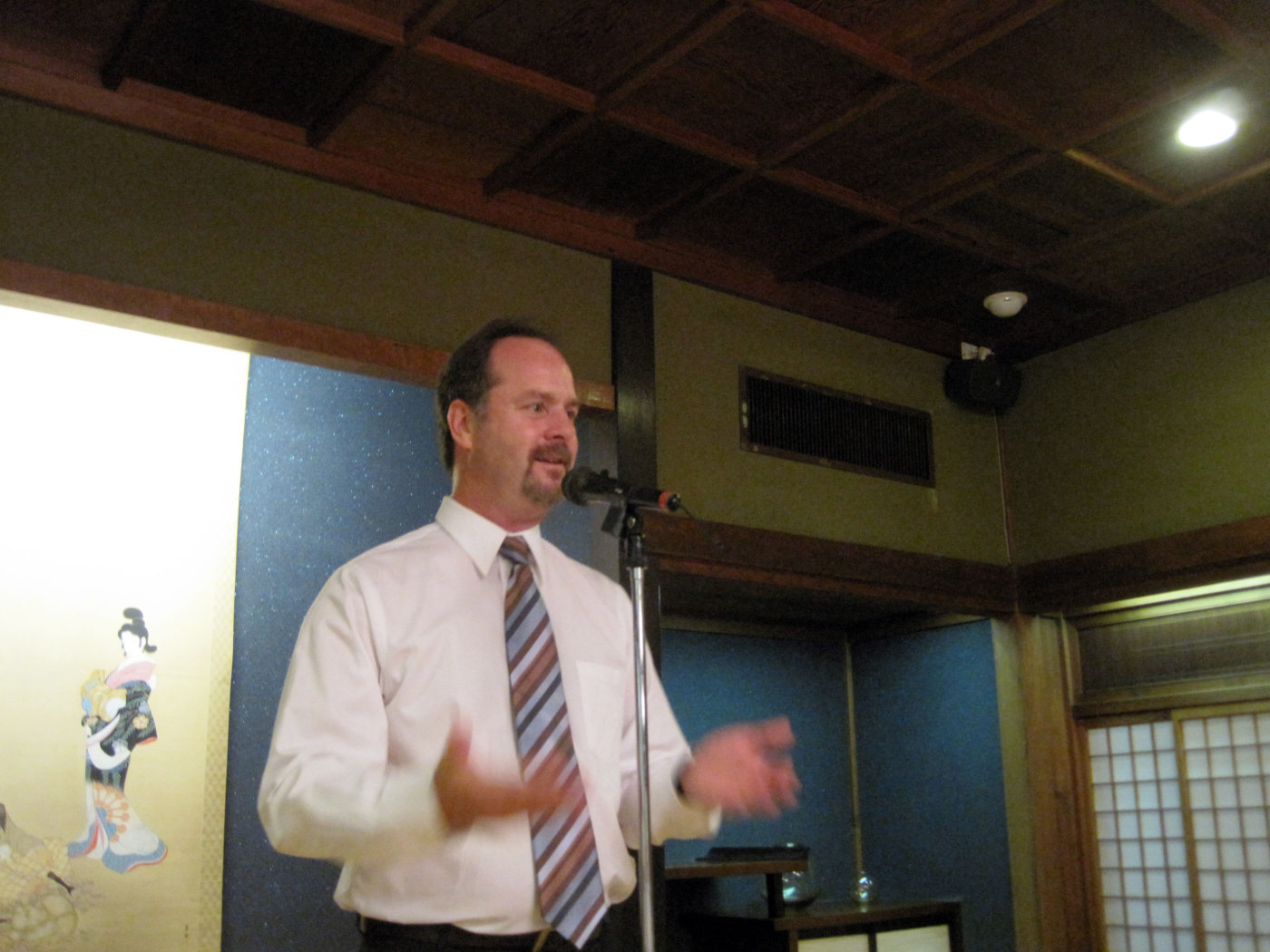 | さぁ,これで全スケジュールが終了です。次々期会長の東海大坂部先生が挨拶ができなかったので,ここで! そして,閉会の挨拶は次期会長の柳沢先生でした。 |