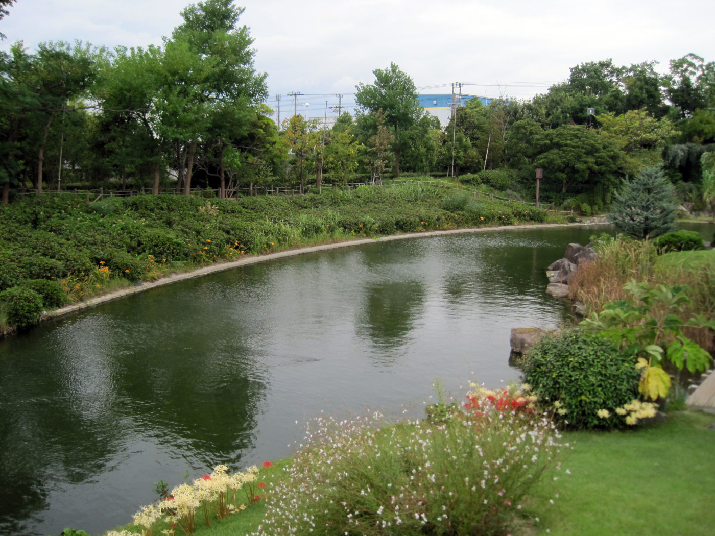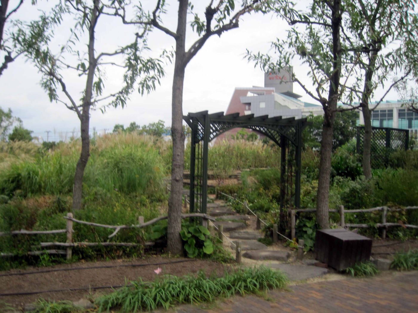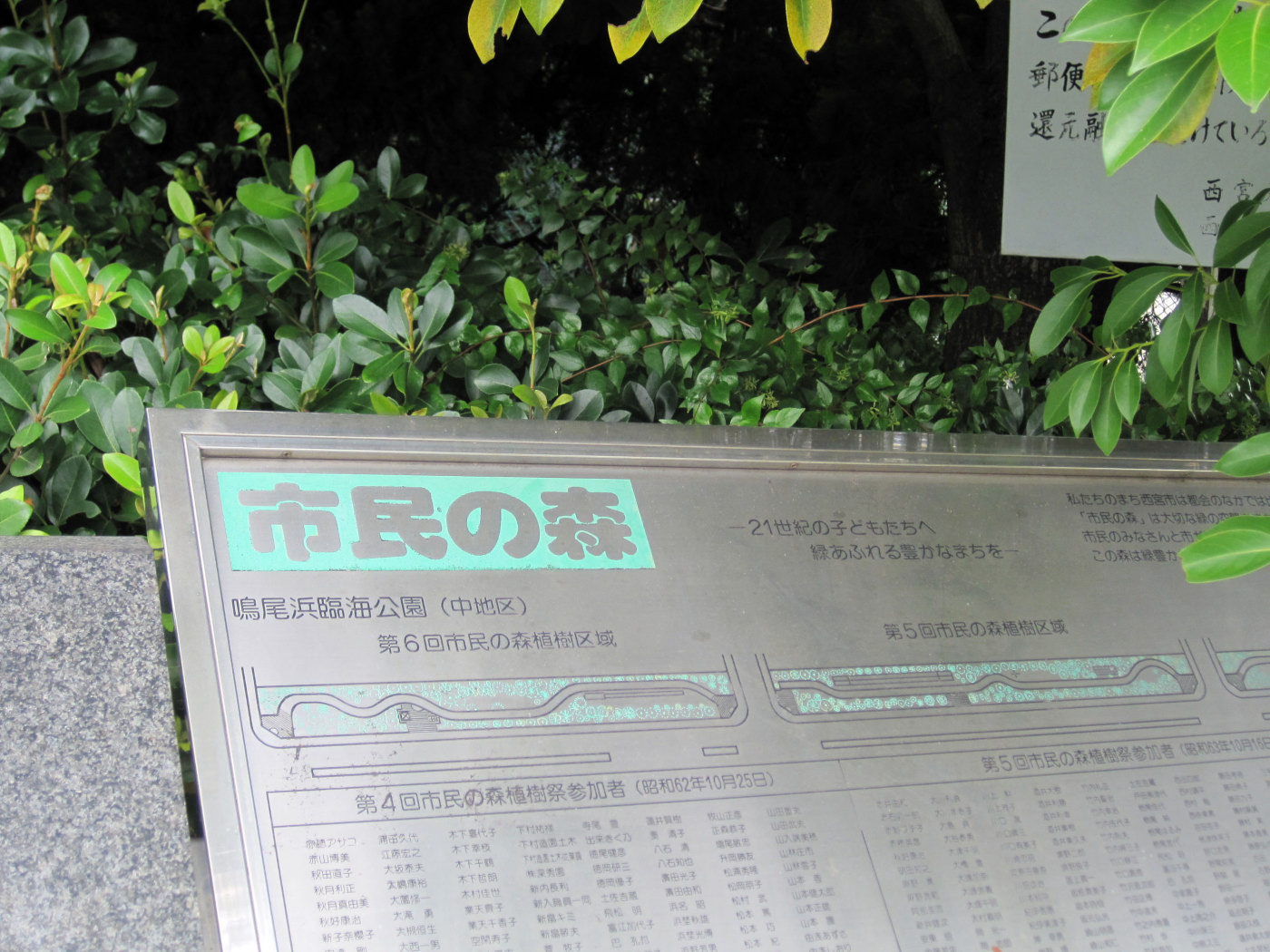 【鳴尾浜臨海公園は、西宮市の南東端に位置し、市街地に隣接する北地区6.5ha、最南端に位置する南地区6.0ha、及びこの両地区を結ぶ延長約700mの緑道の中地区1.4haから構成されています。北地区は「ふるさとの森づくり」事業を活用した「市民の森」、高校球児達による「白球の森」、テニスコートや野球場、芝生広場。また、中地区はトリムコースやジョギングコースなど、市民の方々が気軽に利用できる憩いの場として人気を集めています。『公園コンセプト』健康:市民の健康増進拠点,文化・交流:市民の文化交流活動促進拠点,緑:緑のネットワーク拠点,水:親水性レクリエーション拠点】とのことです。
