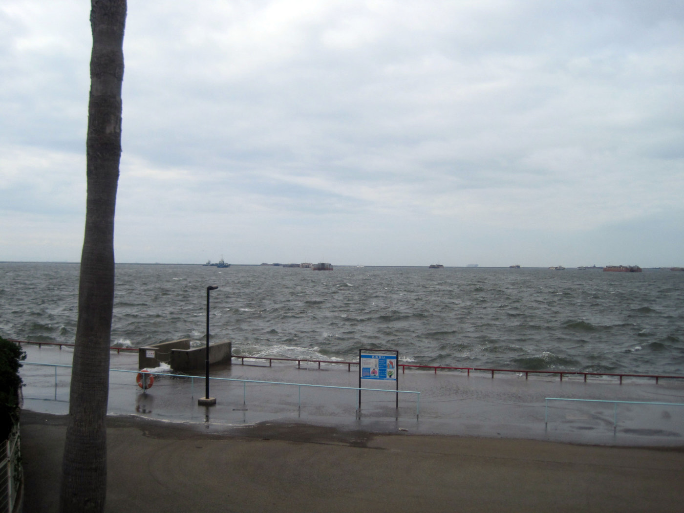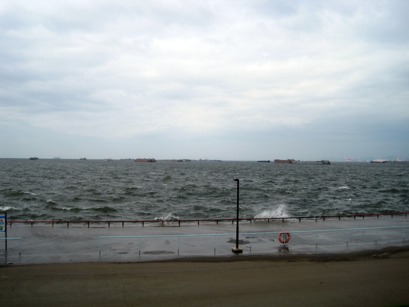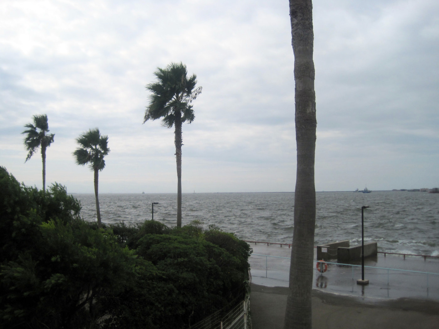 波も波濤が,高まっていますし,遊歩道のあたりに打ち付けています。