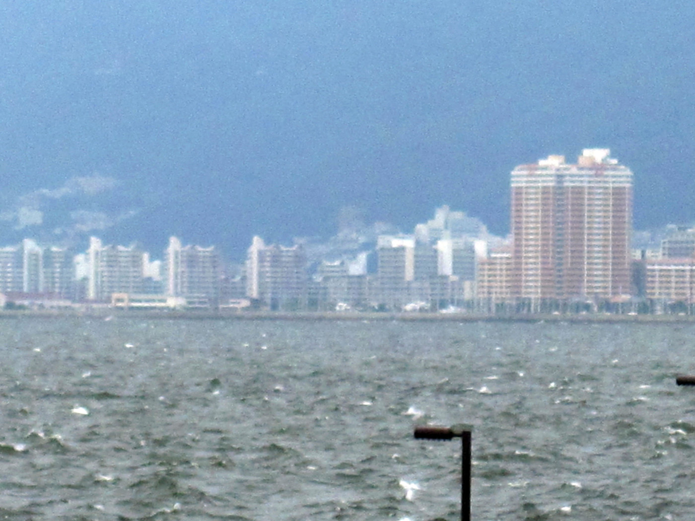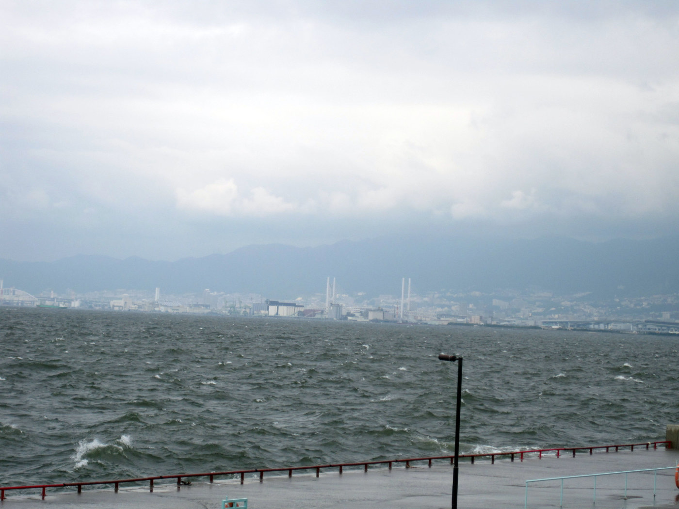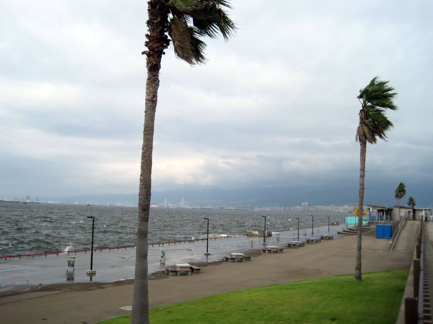 波も波濤が,高まっていますし,遊歩道のあたりに打ち付けています。