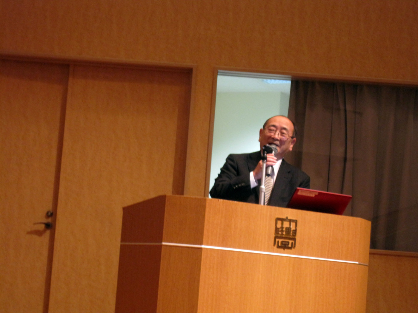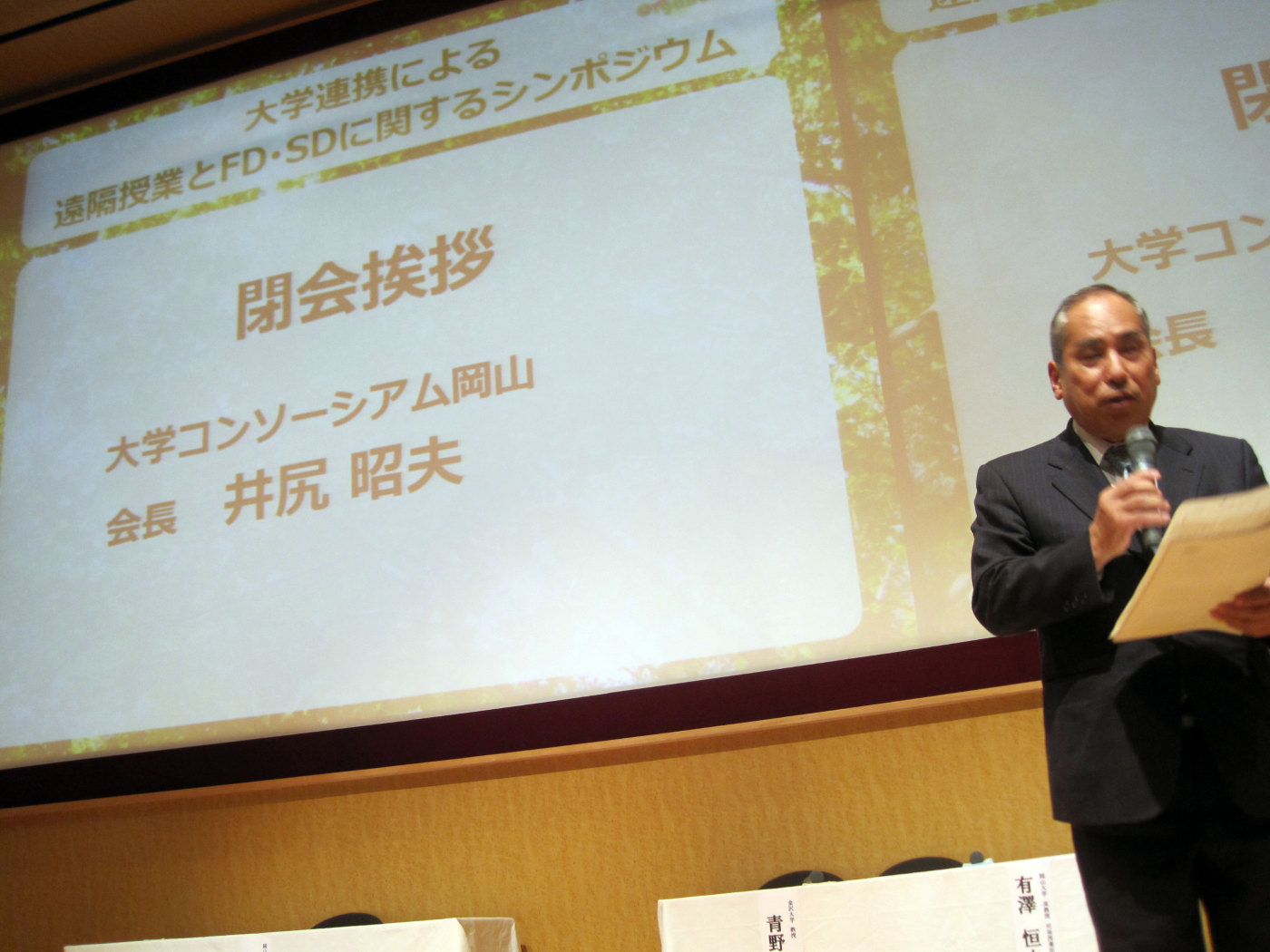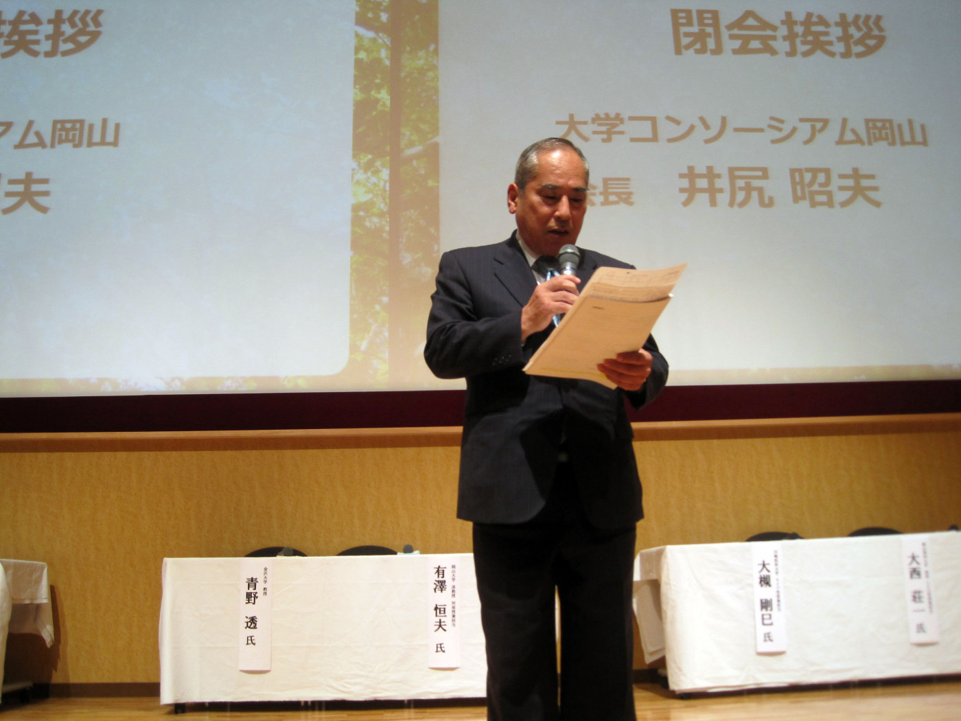 閉会のご挨拶は大学コンソーシアム岡山,現在の担当校代表(会長)井尻岡山商科大学長です。