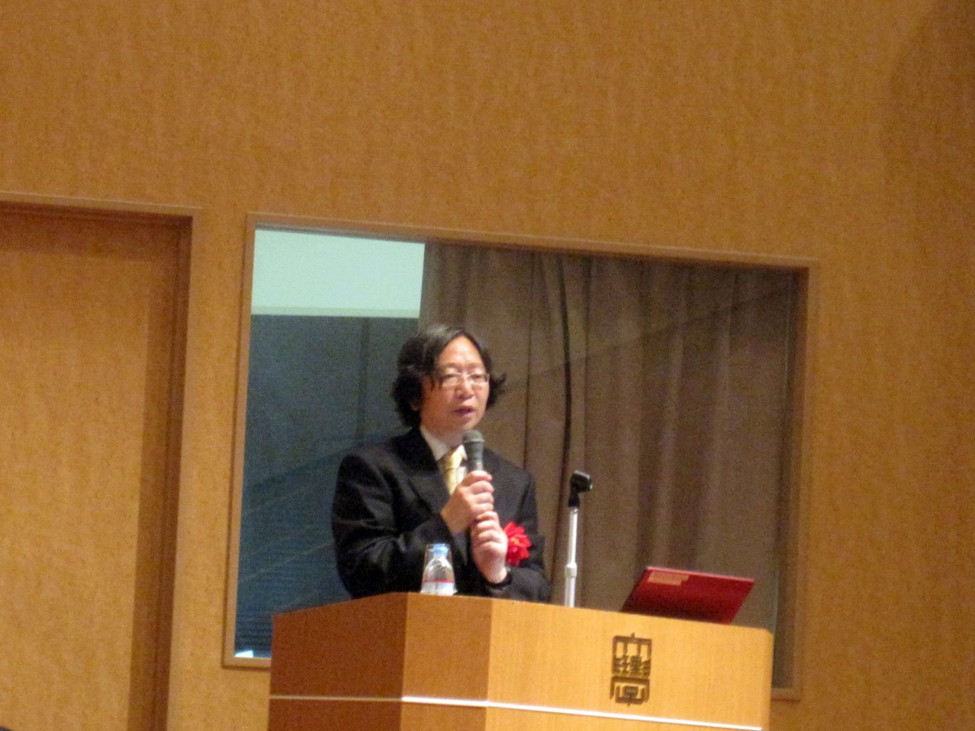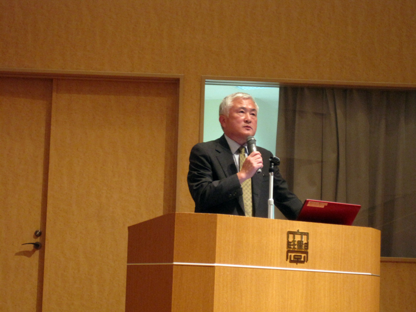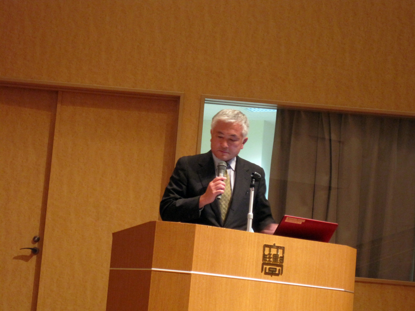 閉会のご挨拶は大学コンソーシアム岡山,現在の担当校代表(会長)井尻岡山商科大学長です。