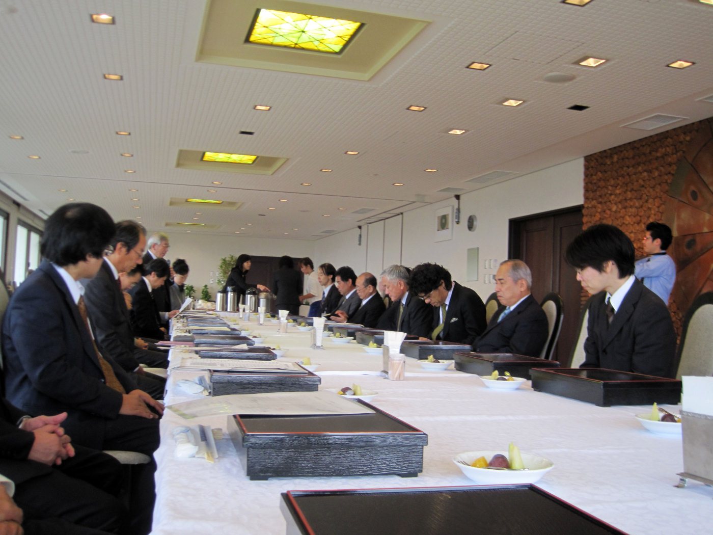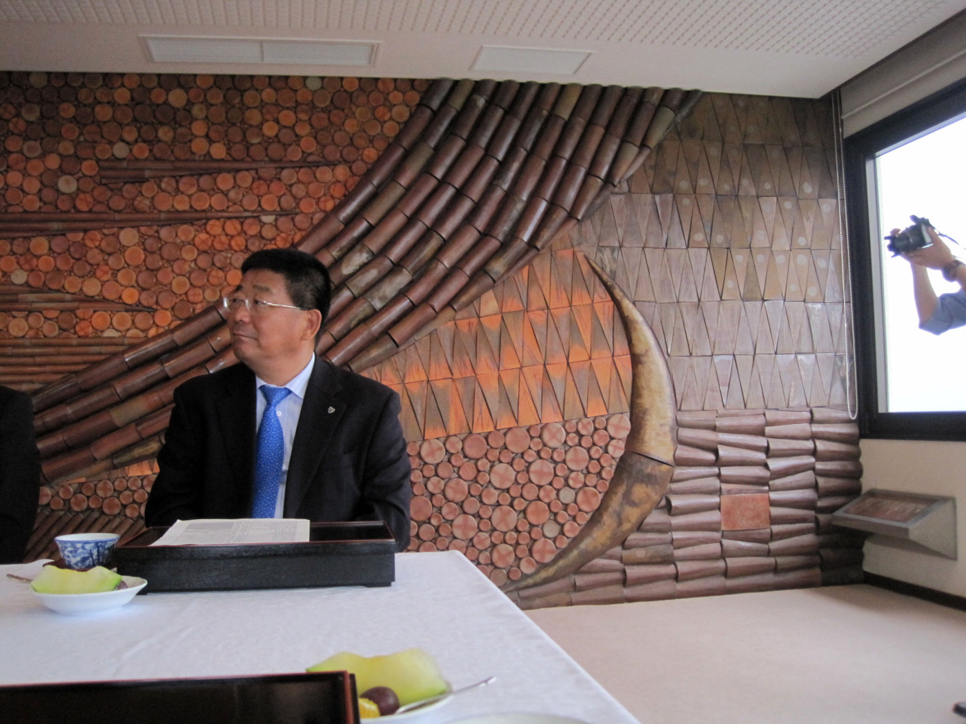理大の11号館の8Fラウンジでしたが,小高い丘の上の学舎の一番高いところ! かつ,備前焼の大きなレリーフもありました。