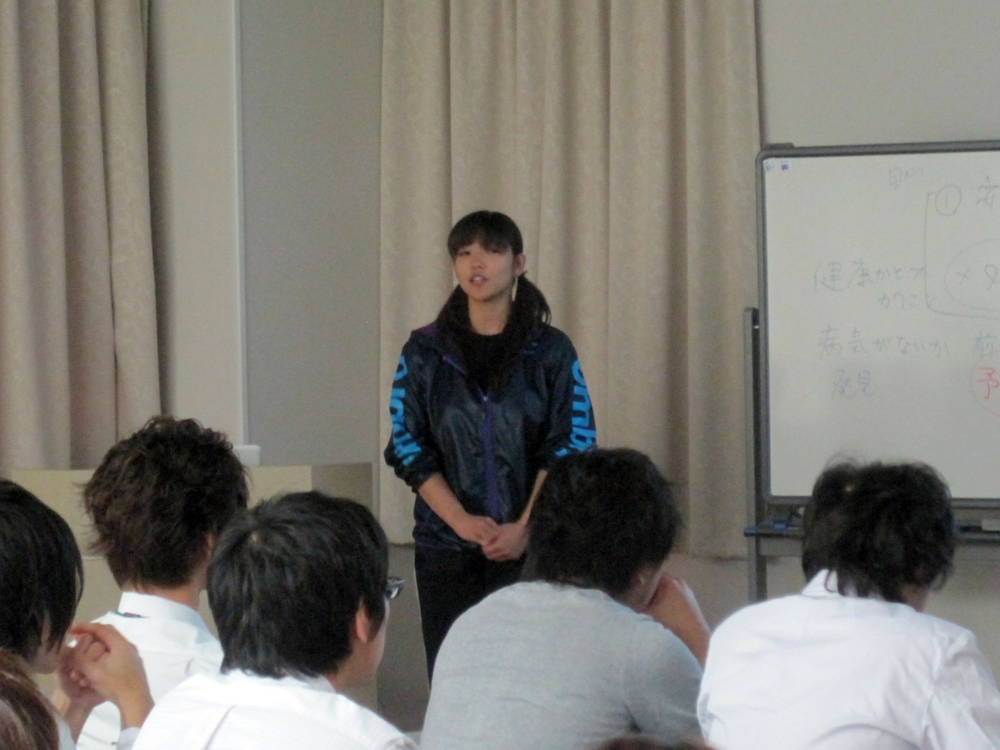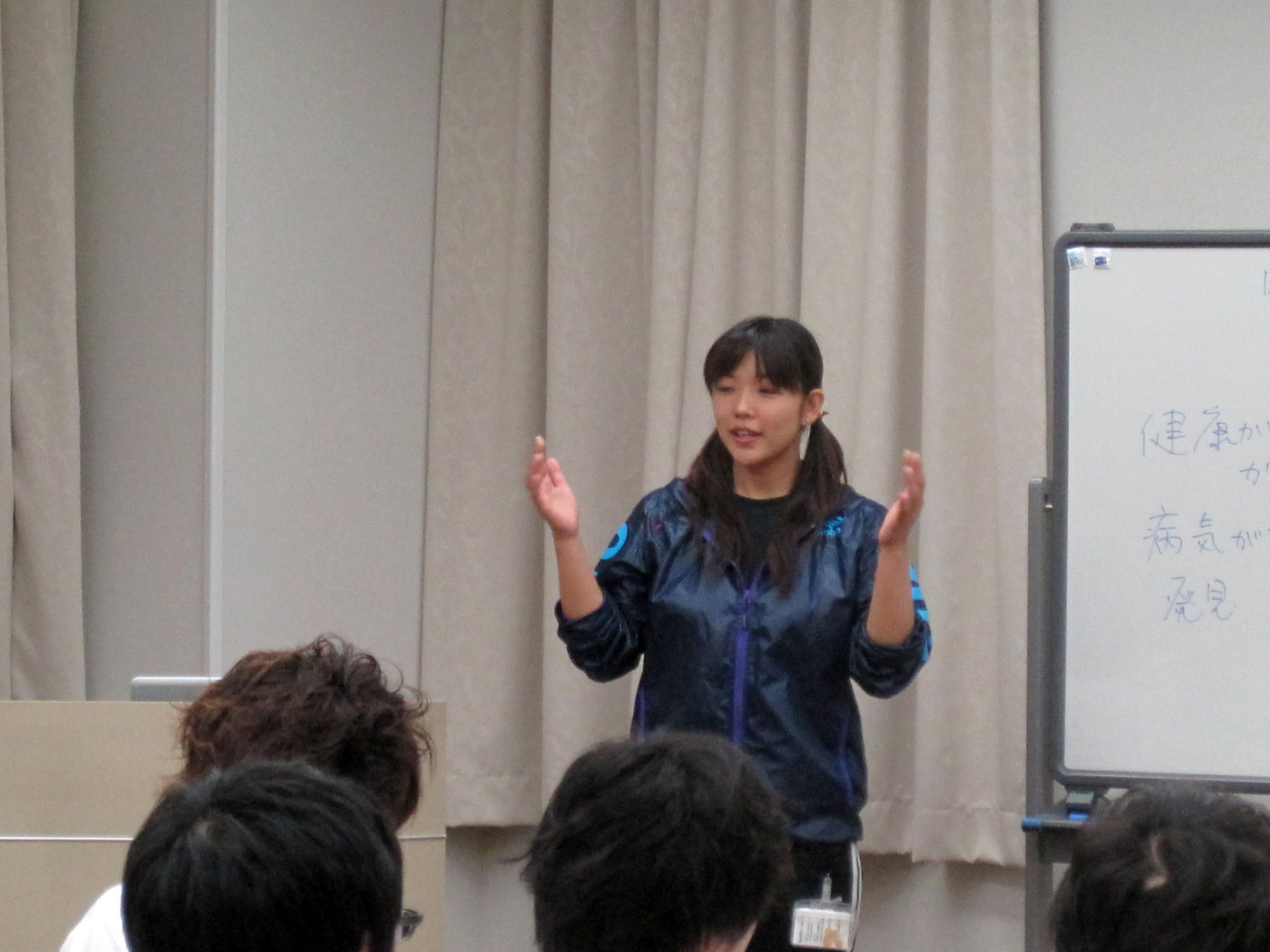保健師の遠藤さんには,職場のメンタルヘルスについて,非常にわかり易くお話をしていただきました。若い学生さんたちには,メンタルヘルスがピンと来たかな??