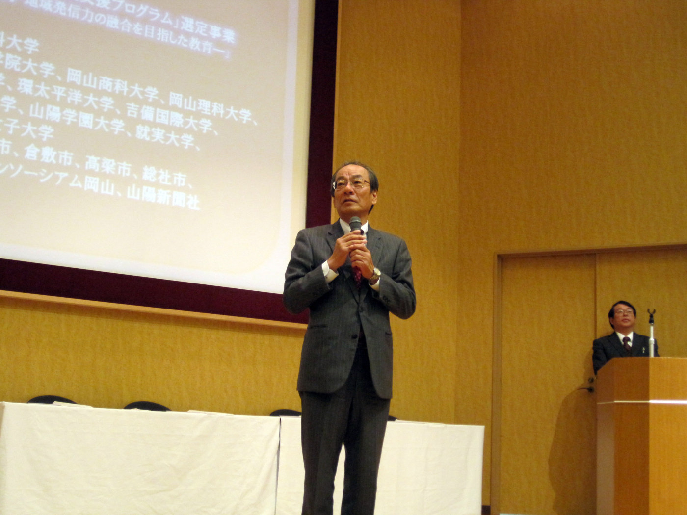 開会のご挨拶は,岡山理科大学 波多学長先生,閉会は現在の大学コンソーシアム岡山の代表校・岡山商科大学の井尻学長先生でした。