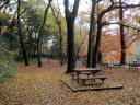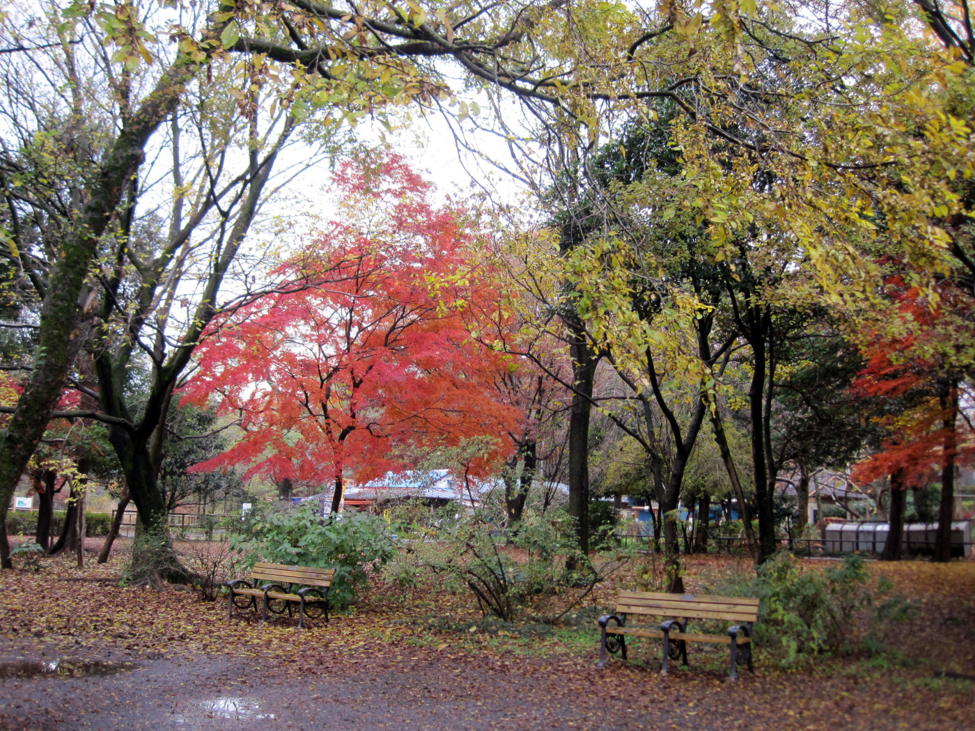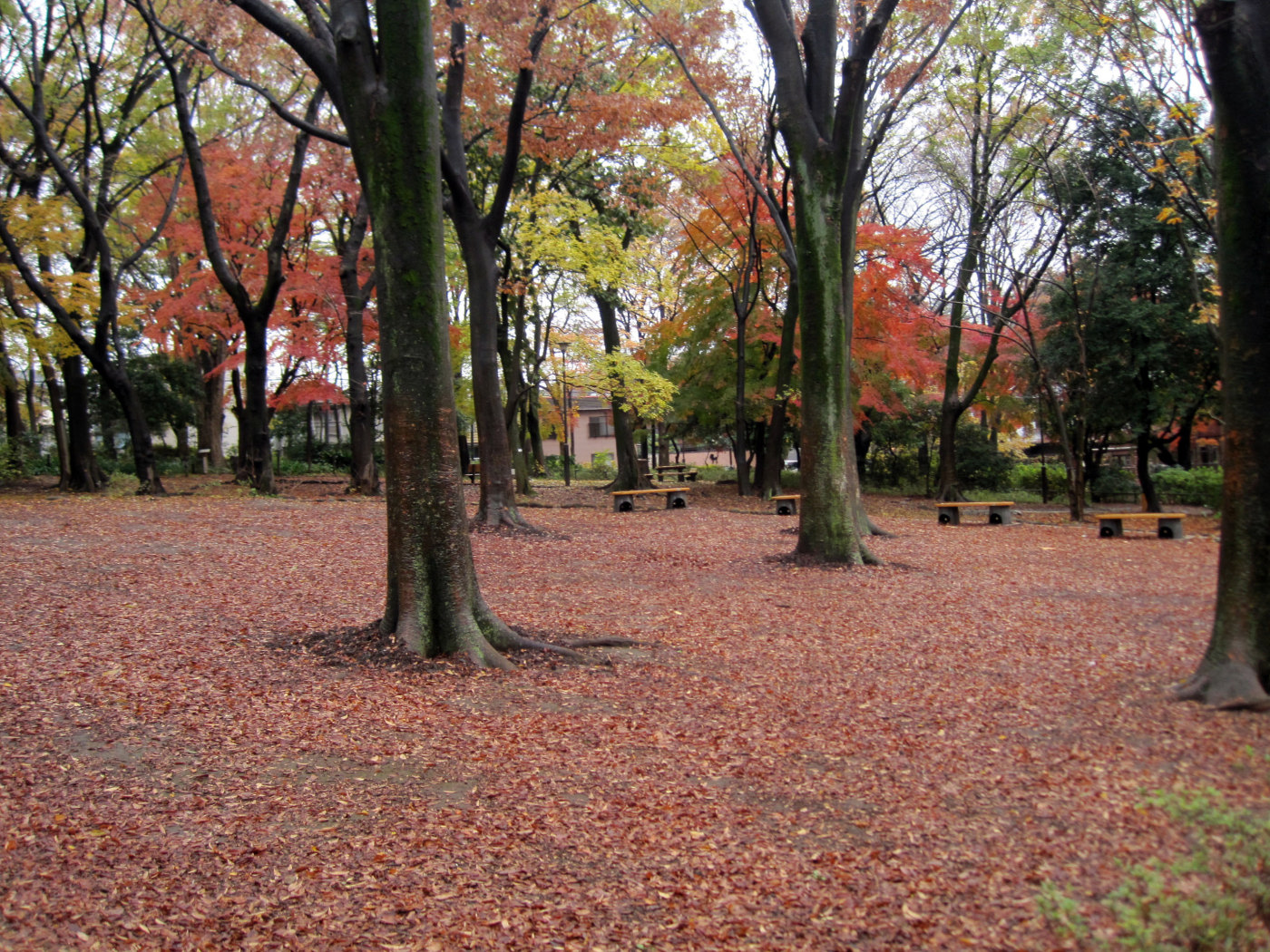 落葉が敷き詰められた誰もいないベンチと公園ってのも,寂寥です。