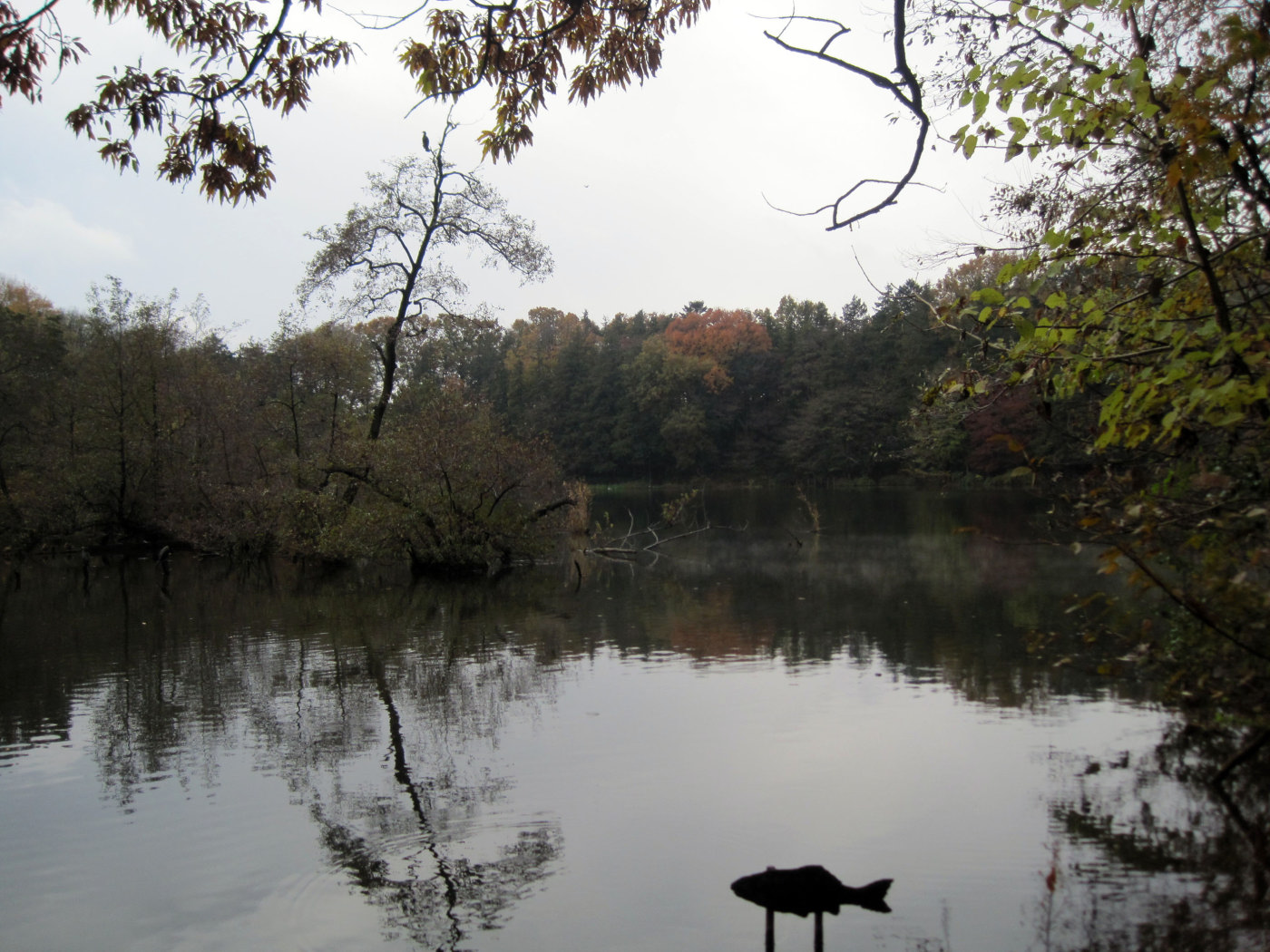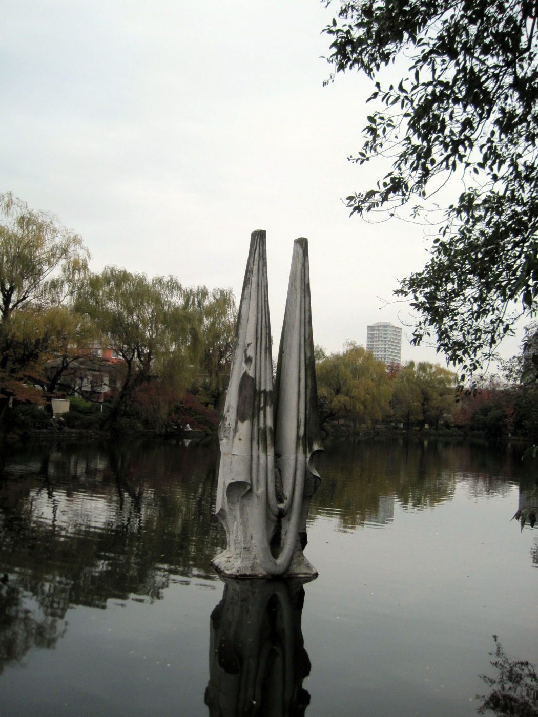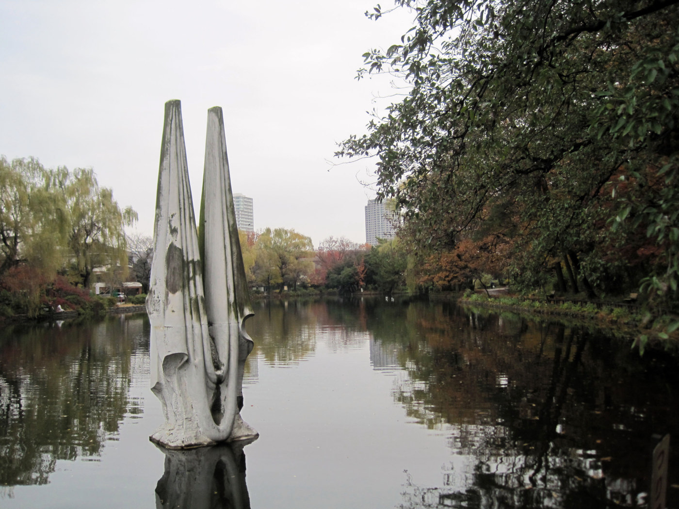 【石神井池(ボート池)は三宝寺池一帯が風致地区に指定された際、三宝寺池とともに武蔵野の景観を保護する目的で人工的に作られたものである。もともと三宝寺池から周辺の田んぼに水を引いていた水路であったが、それを人工的にせき止めて池とした。1933年に作られた。南側は木立が多く、傾斜地となっているが、北側は開放的な遊歩道となっている。すぐ脇に道路もある。池の中には三澤憲司作のモニュメントがある。】です。