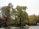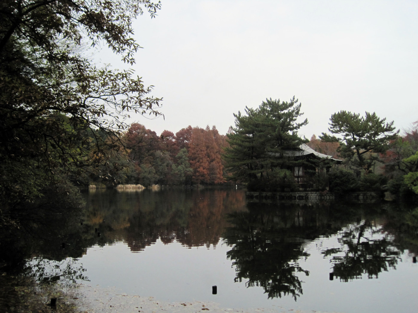 三宝寺池ですね,向こうに厳島神社が見えます。