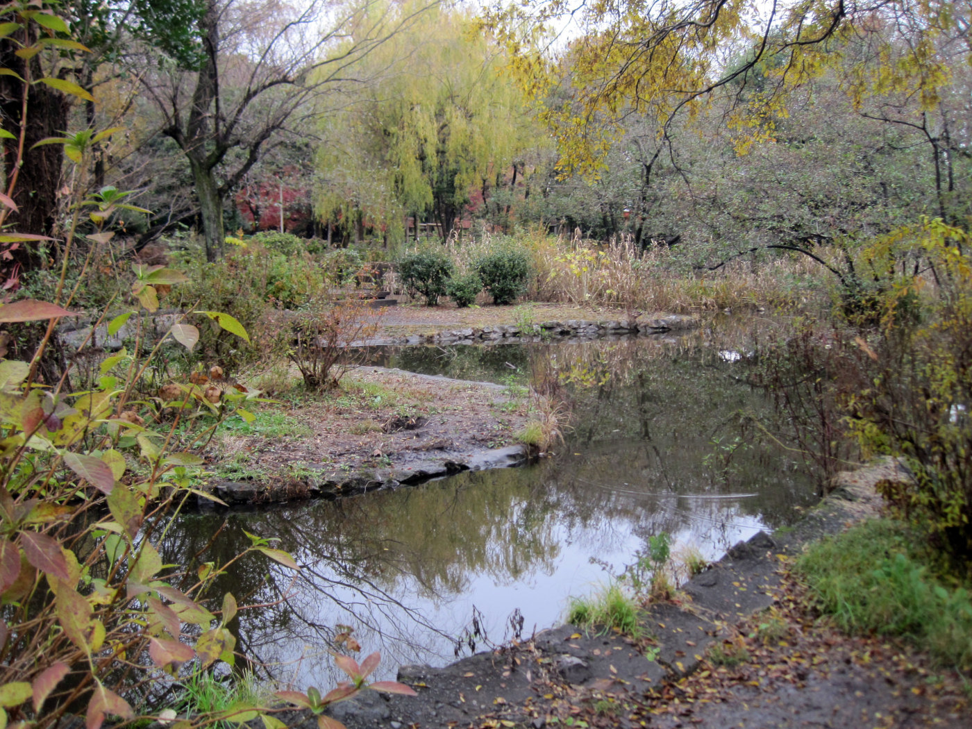 【武蔵野三大湧水地のひとつ。江戸時代には、いかなる日照りにも涸れないといわれ、昭和30年代頃までは、真冬でも池面が凍らない「不凍池」として知られていました。しかし、かつての豊富な湧水も、周辺の市街化など環境の変化により、現在では見ることはできません。このため、井戸から地下水を汲みあげ、池を満たしています。】だそうです。