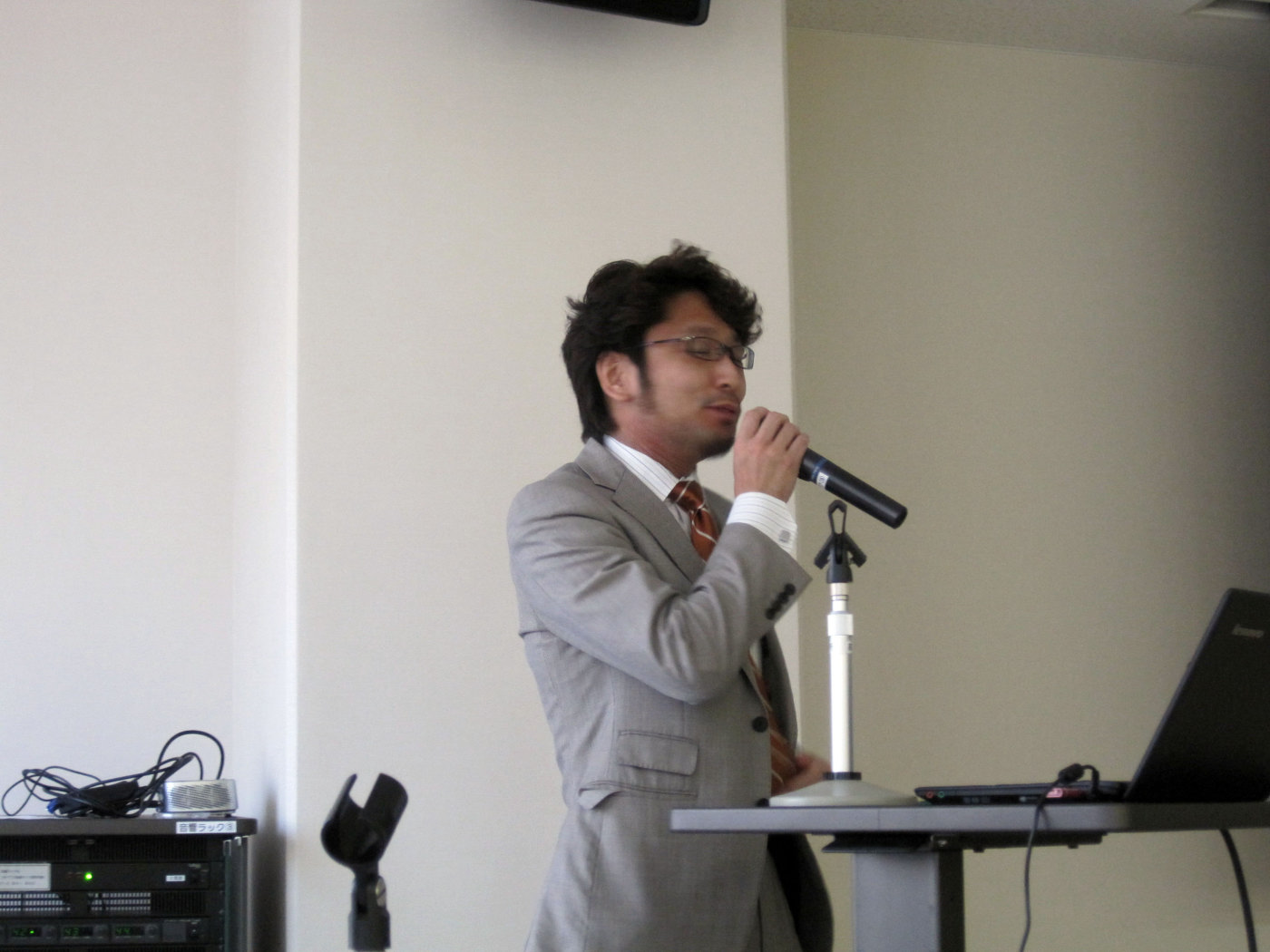 | 会長講演の時の菅沼教授です。・・・まだまだお若いのに,副学長(研究担当)です(座長は,山口大の原田教授でした)。 |
