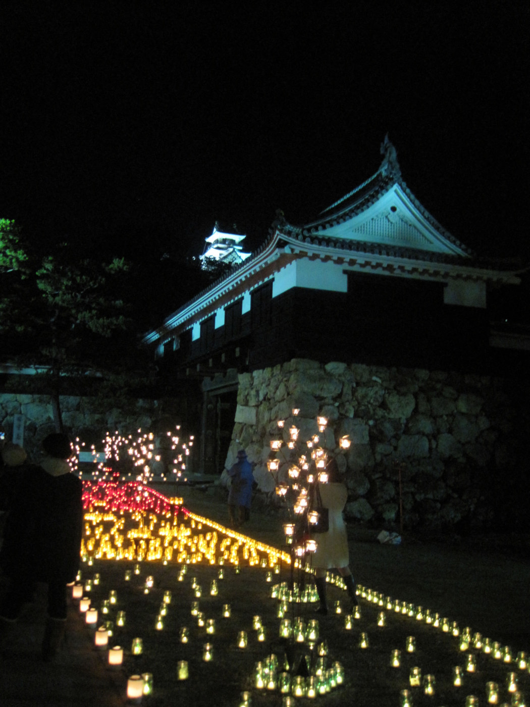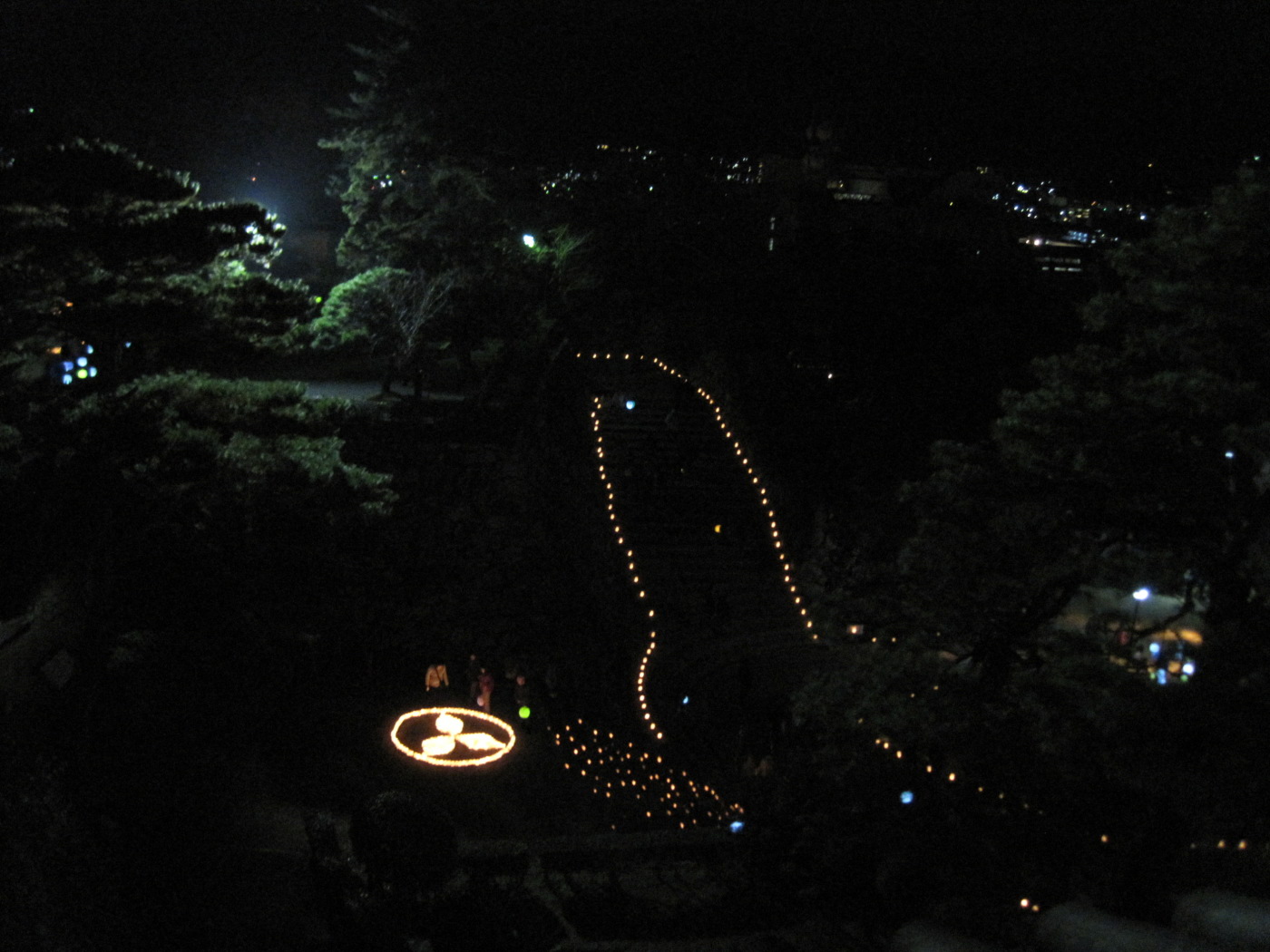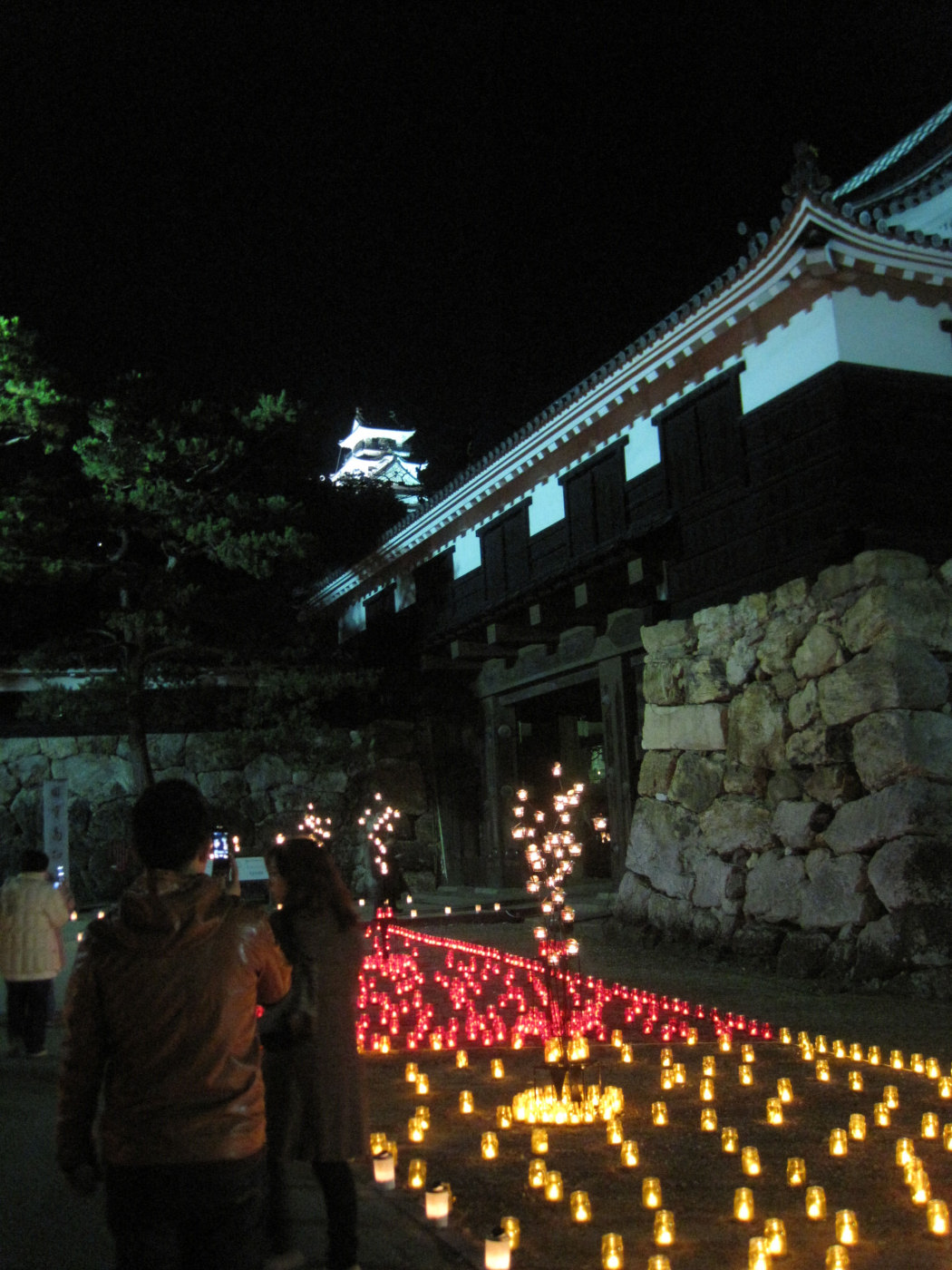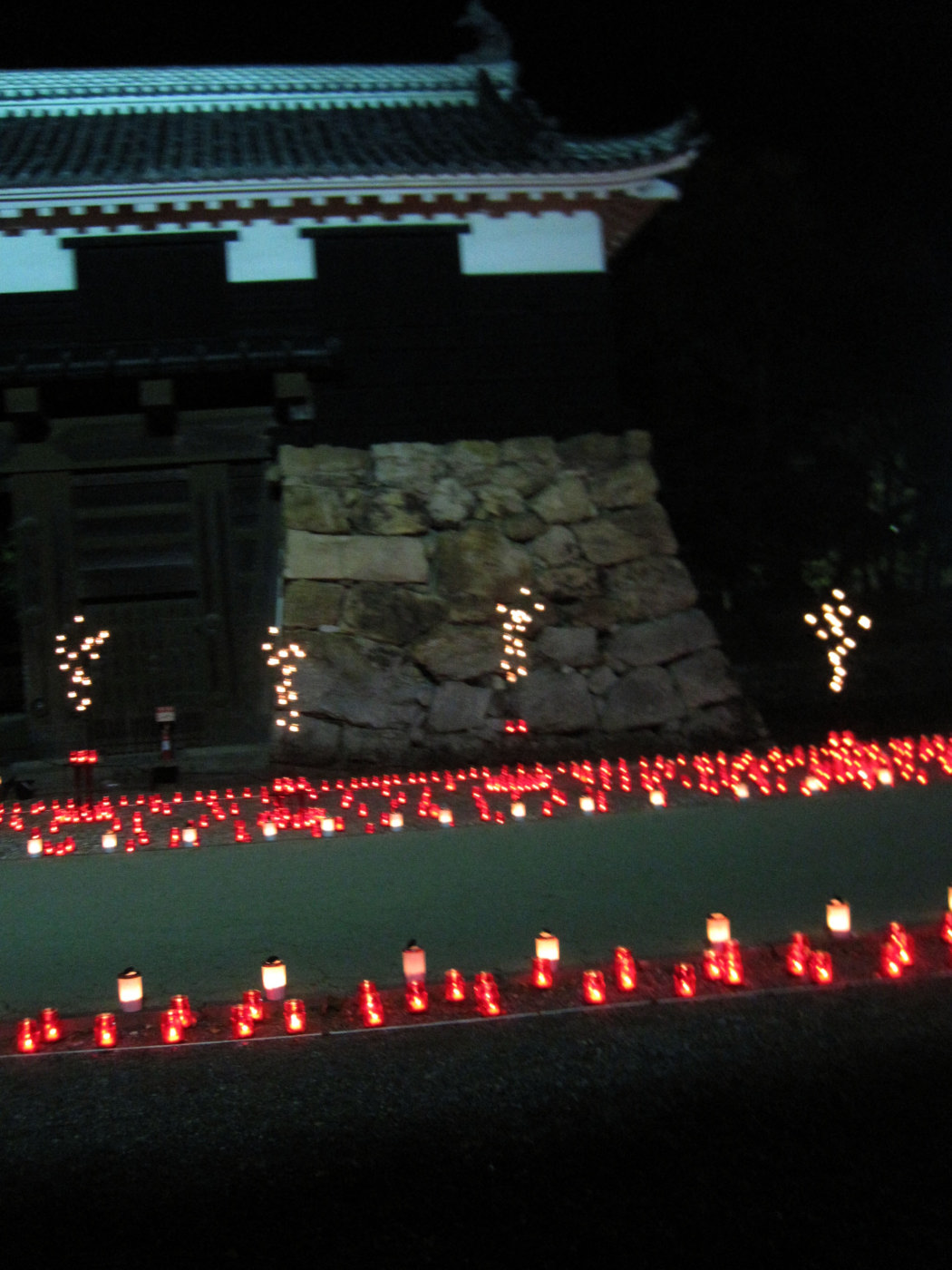 キャンドルです・・・すべて,そして天守閣もライトアップされています。幻想的で,素晴らしい情景です(詳しくは動画で)。