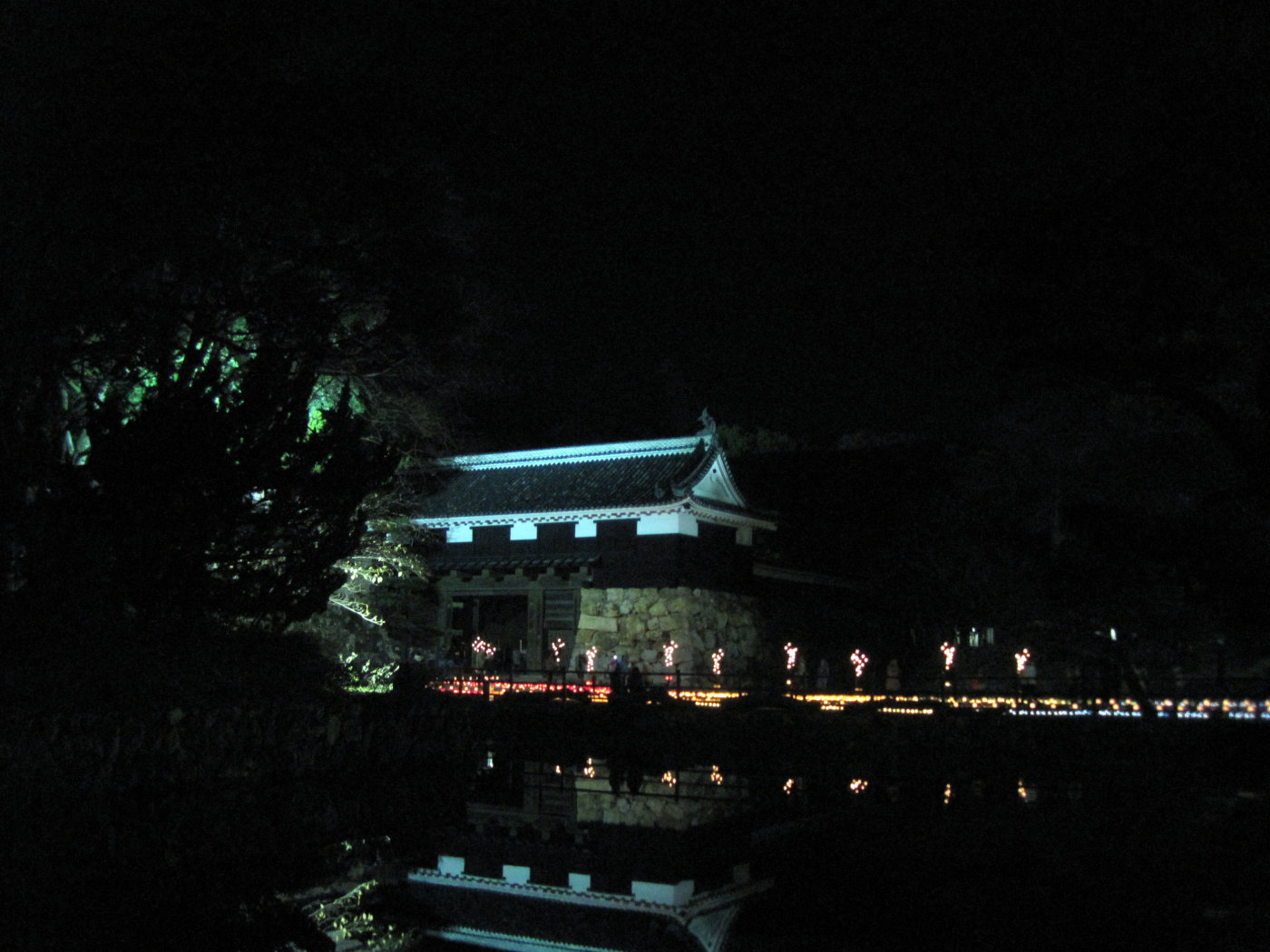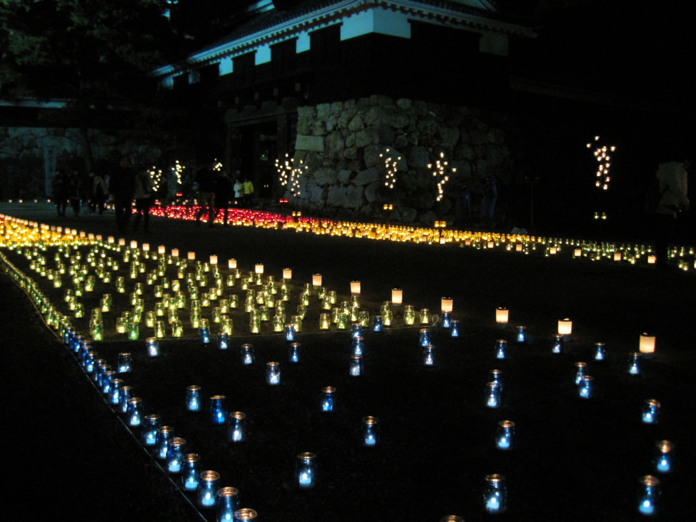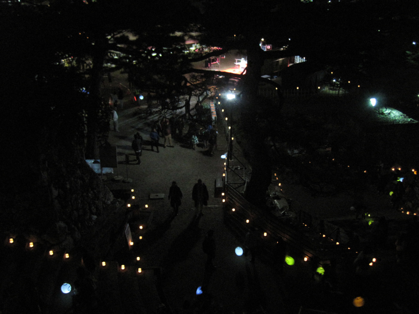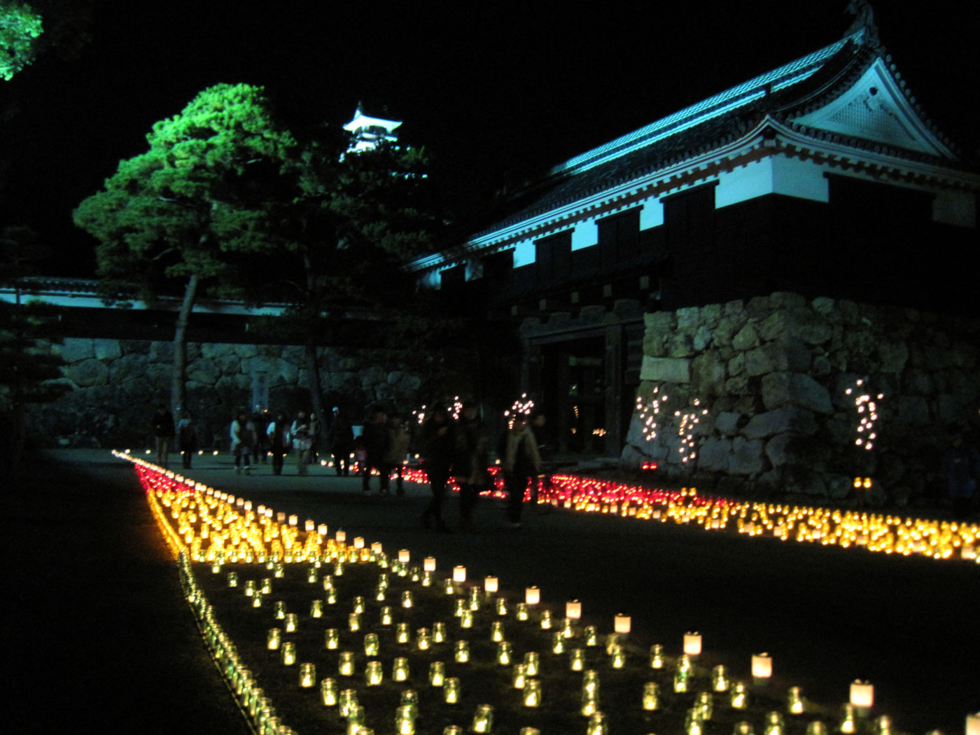 キャンドルです・・・すべて,そして天守閣もライトアップされています。幻想的で,素晴らしい情景です(詳しくは動画で)。