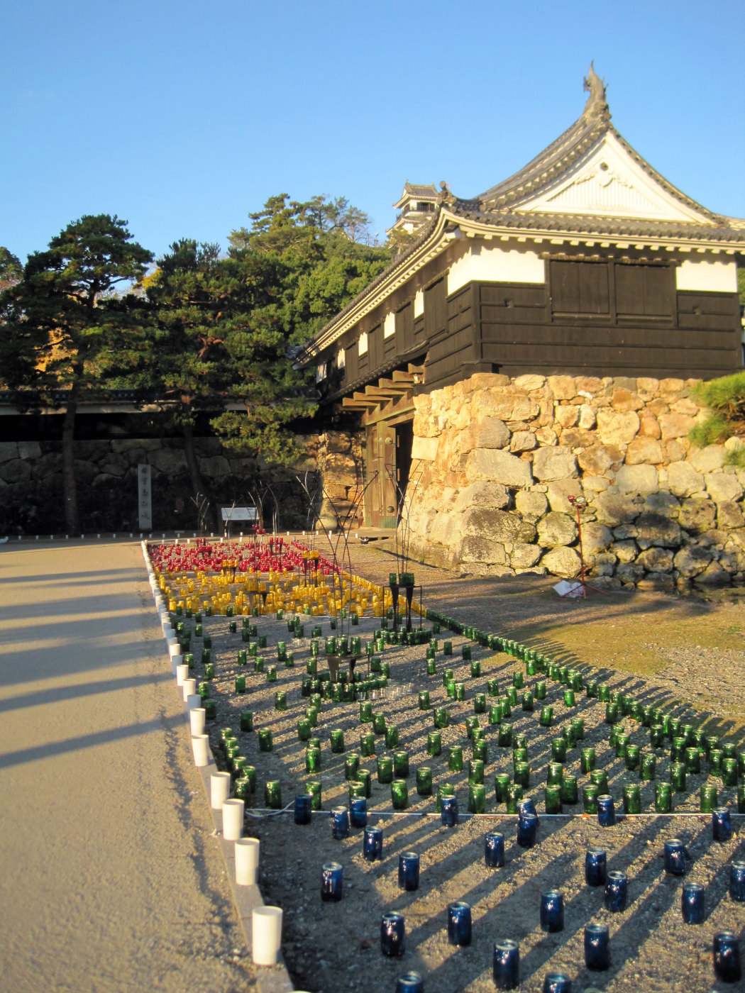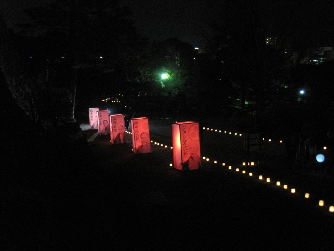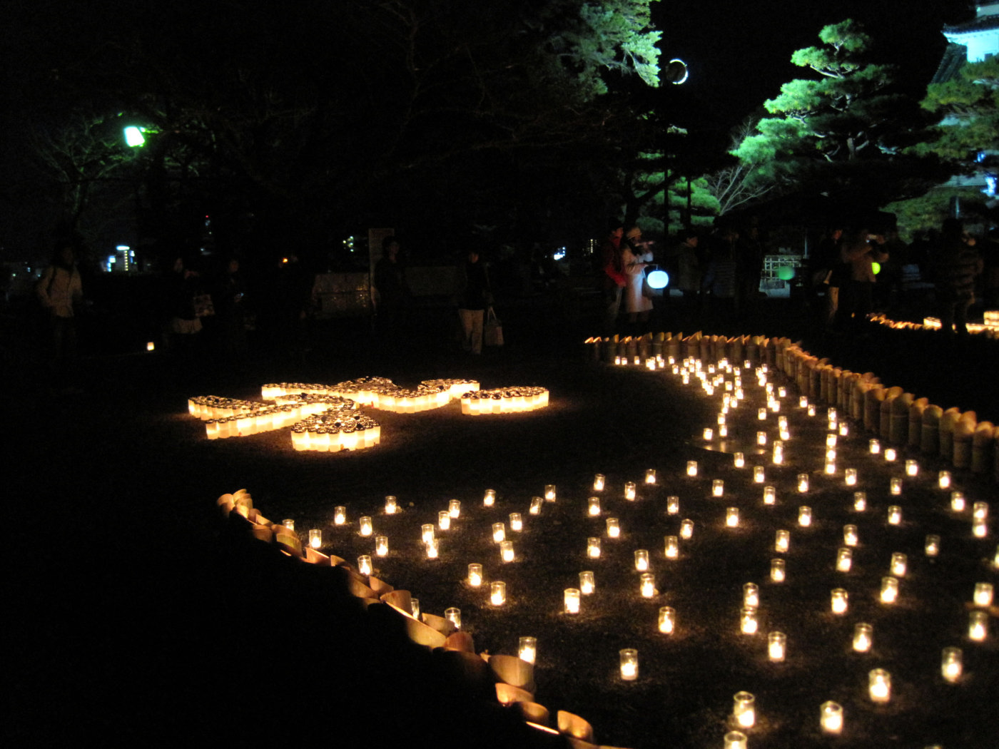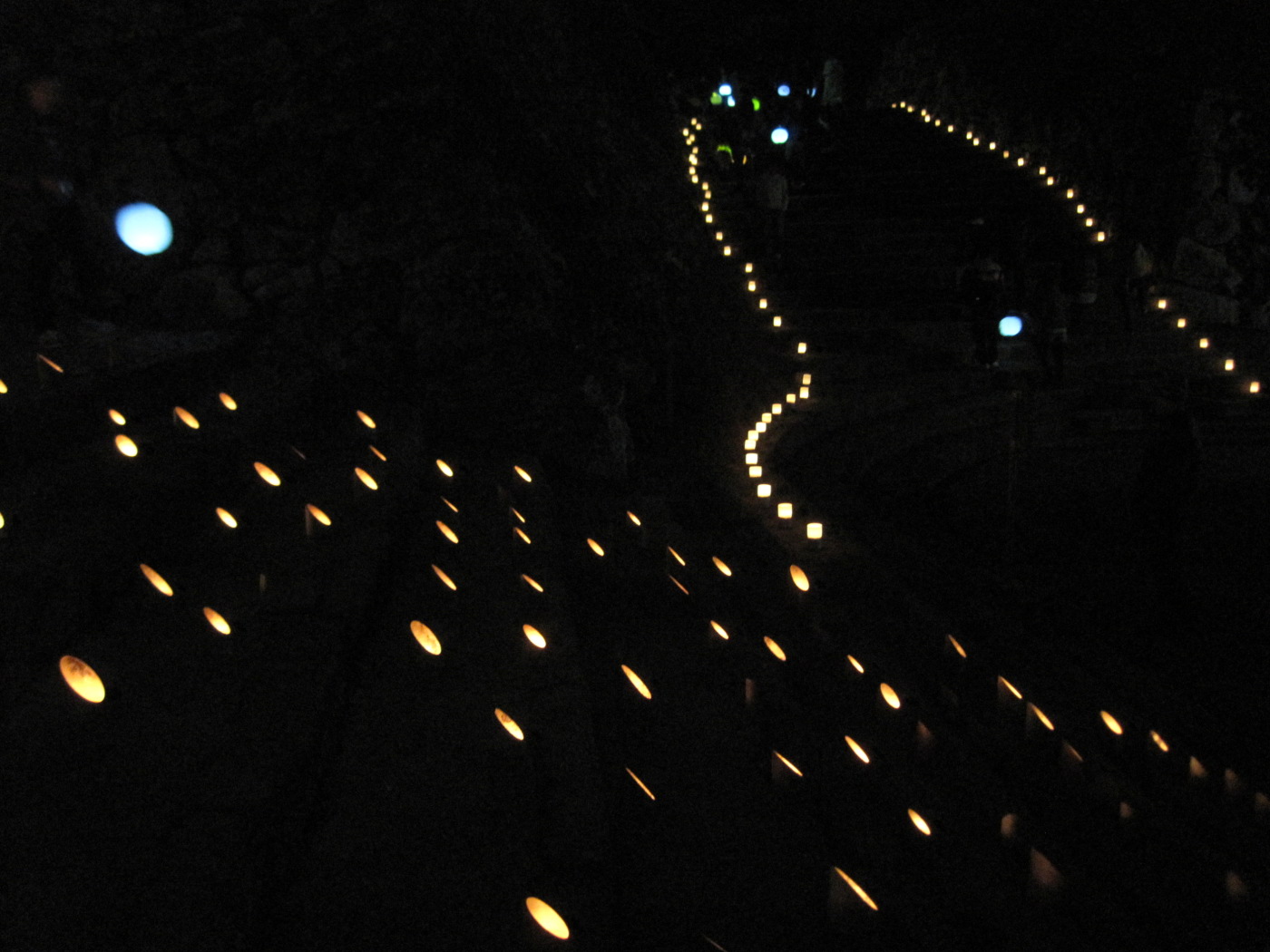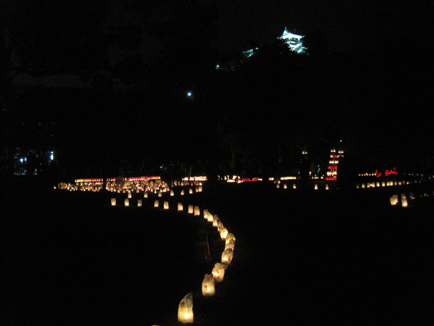 キャンドルです・・・すべて,そして天守閣もライトアップされています。幻想的で,素晴らしい情景です(詳しくは動画で)。