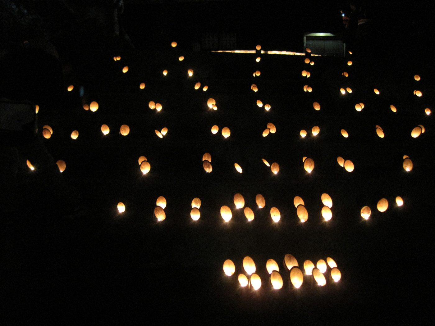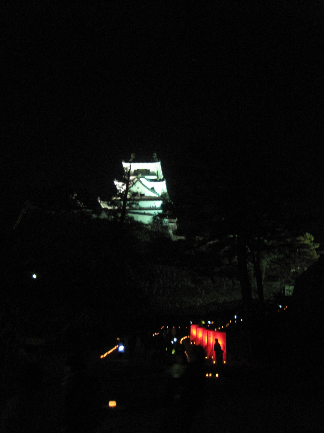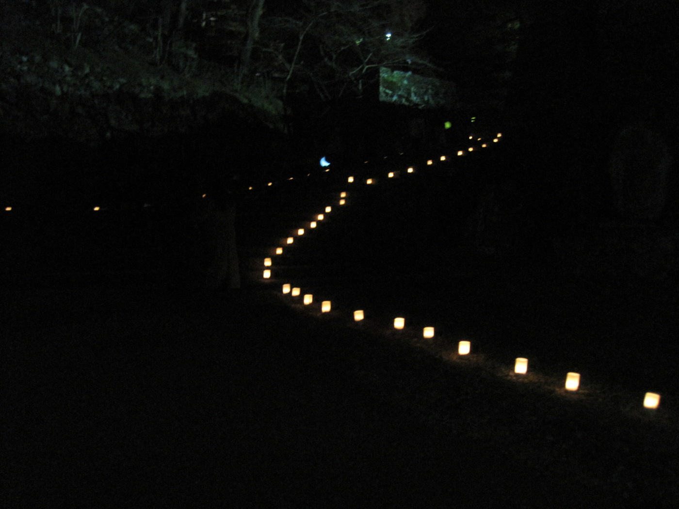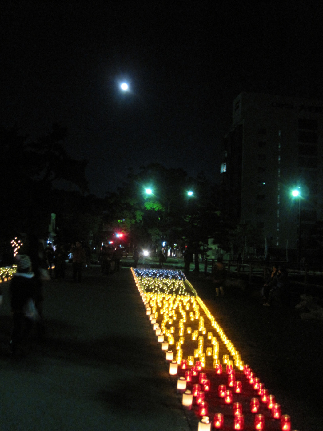 キャンドルです・・・すべて,そして天守閣もライトアップされています。幻想的で,素晴らしい情景です(詳しくは動画で)。