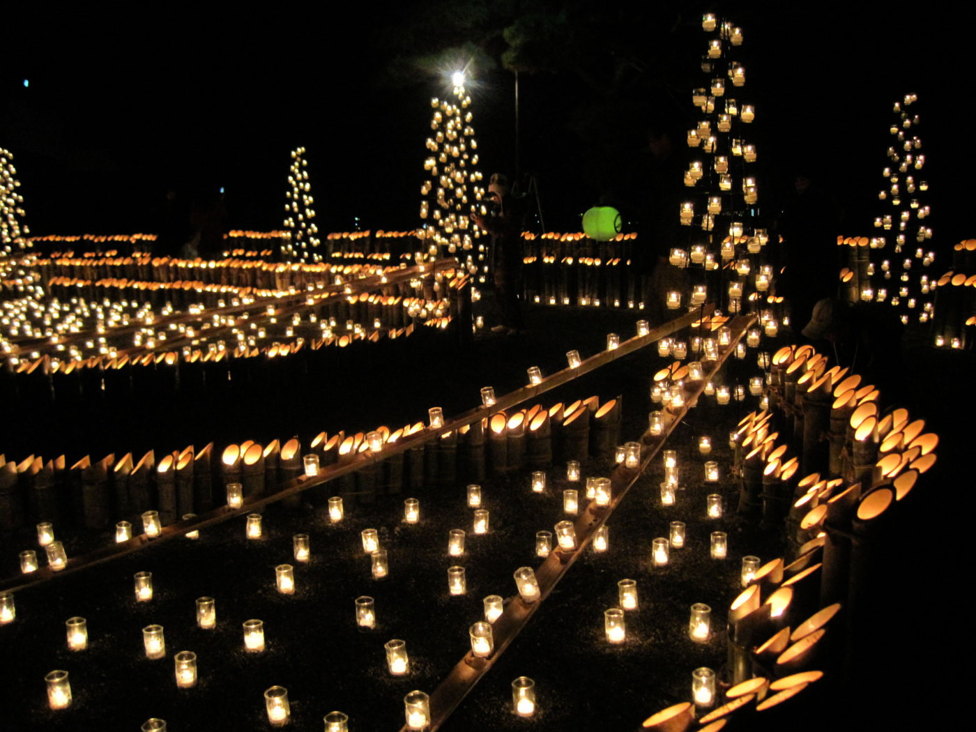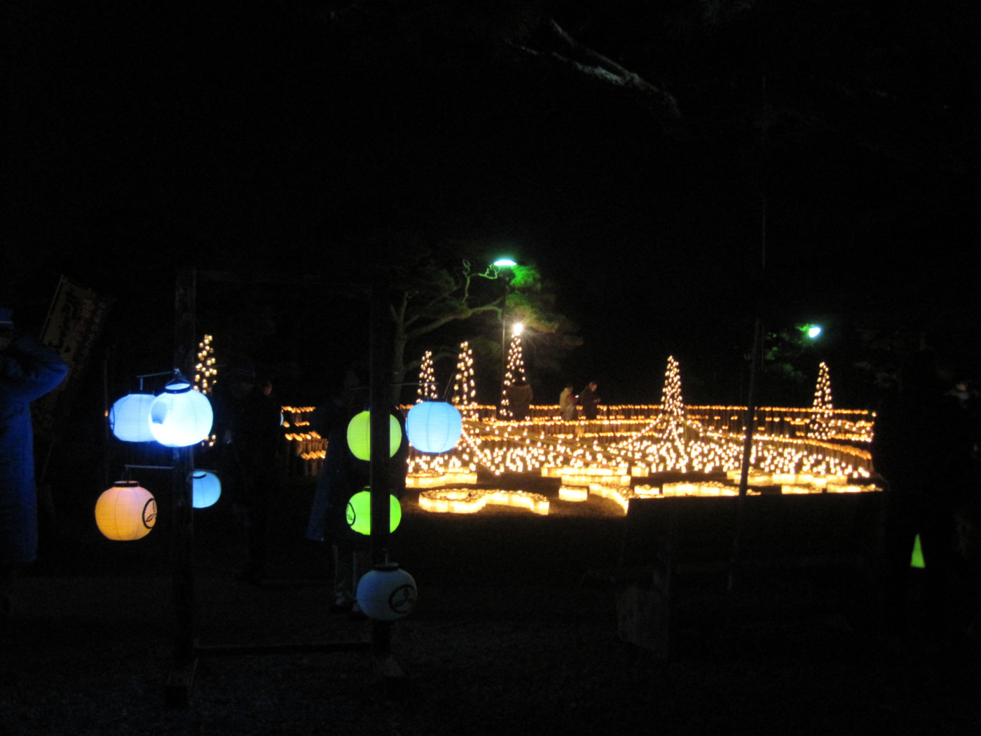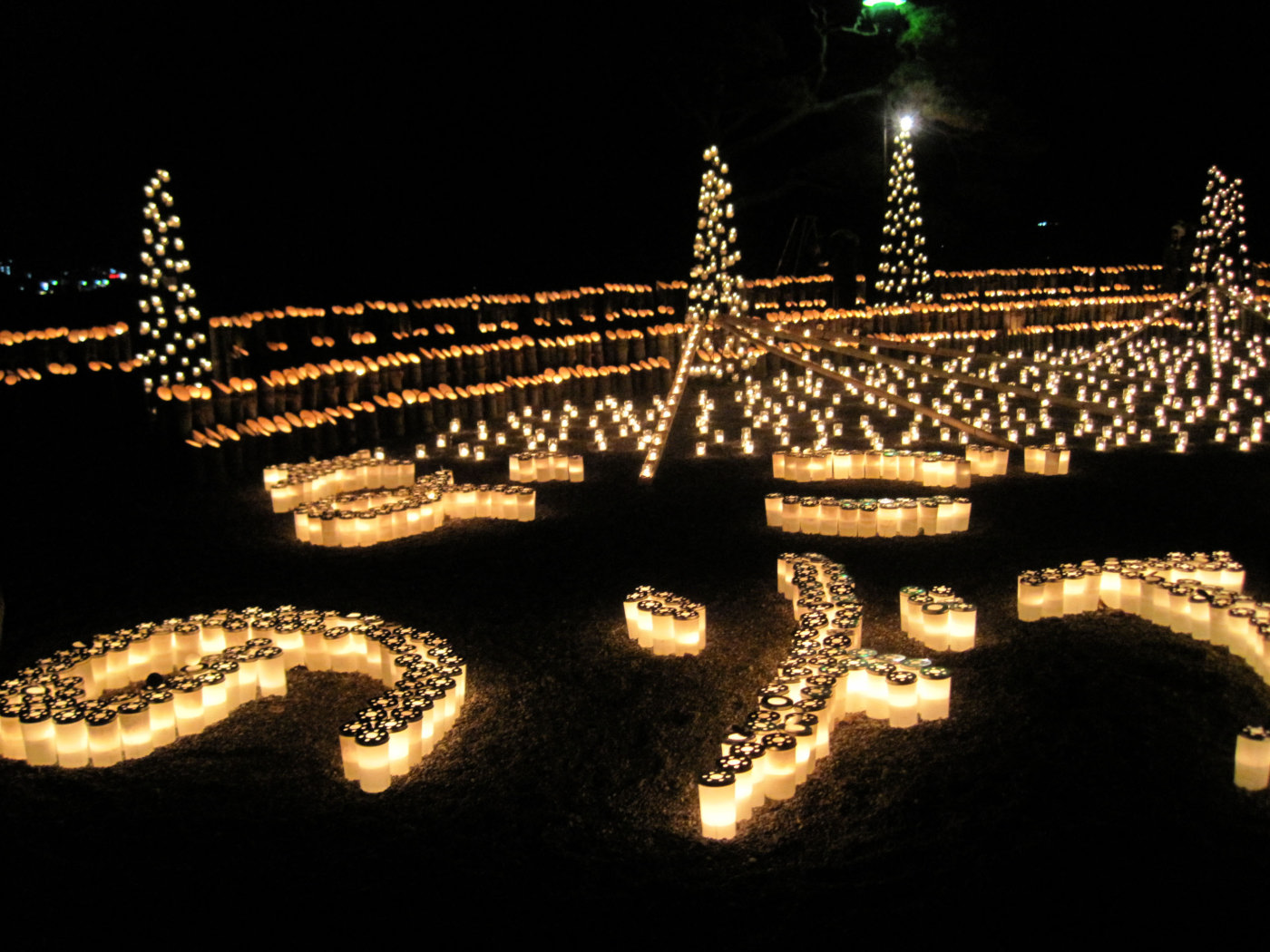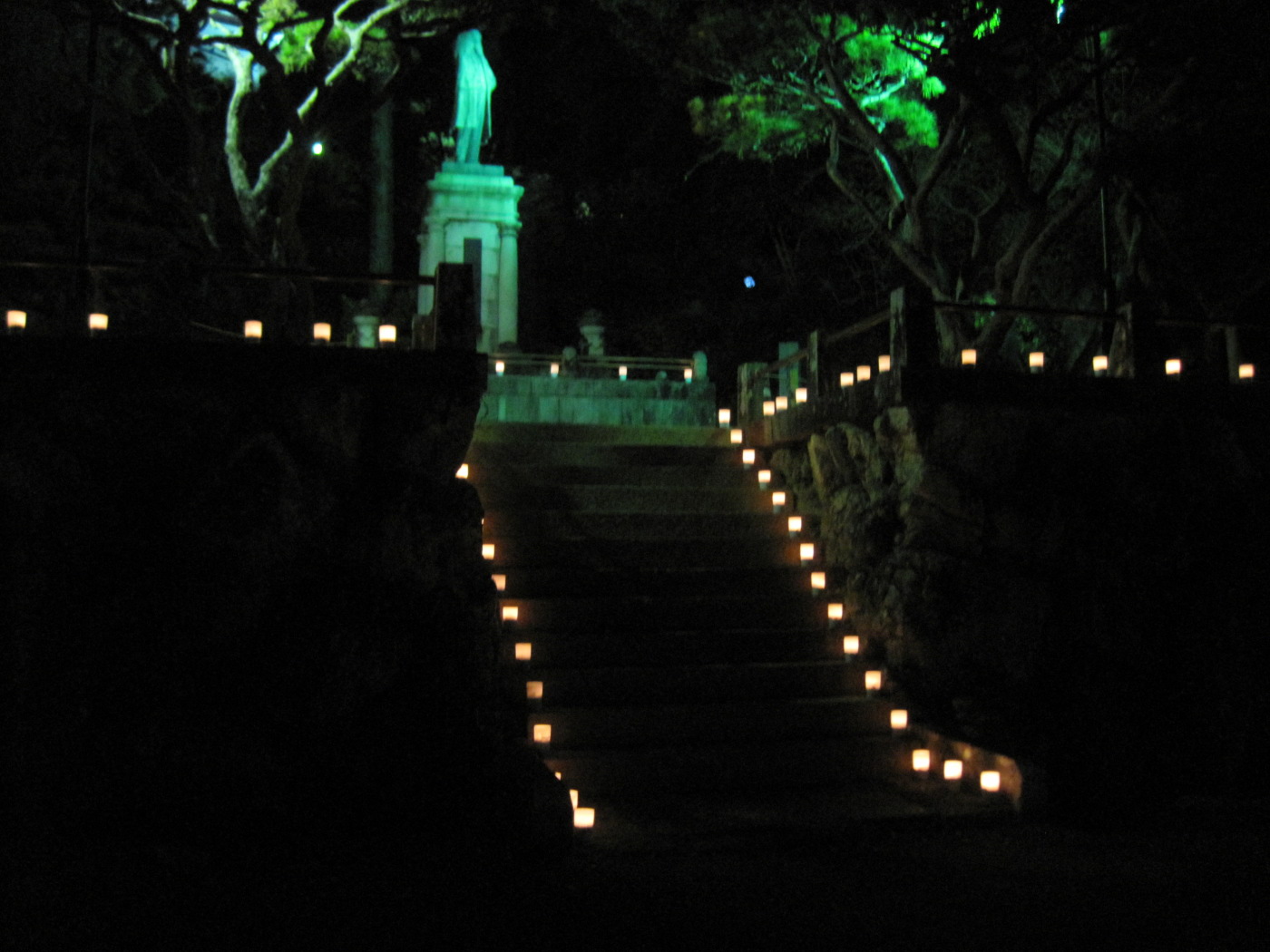 キャンドルです・・・すべて,そして天守閣もライトアップされています。幻想的で,素晴らしい情景です(詳しくは動画で)。