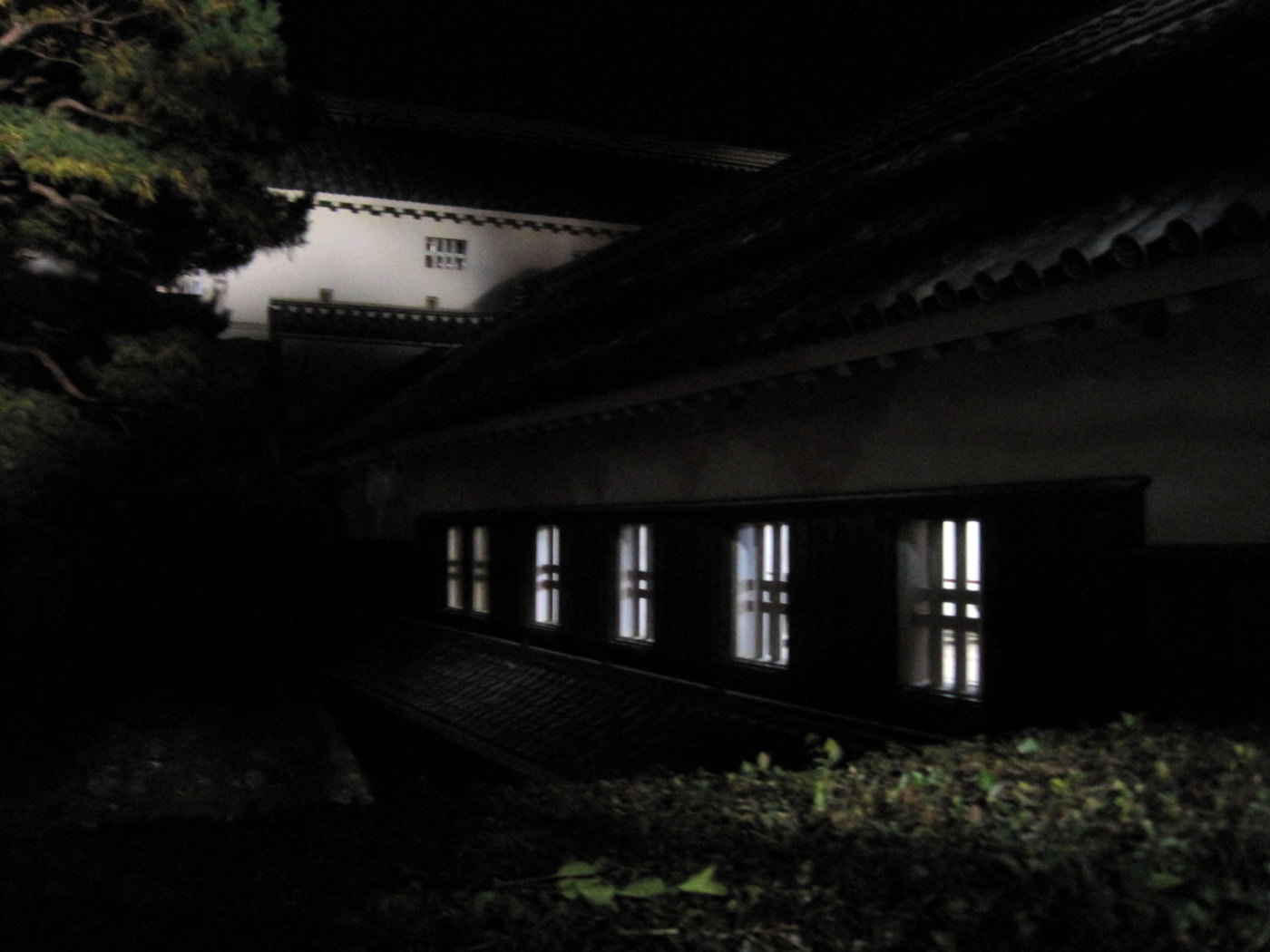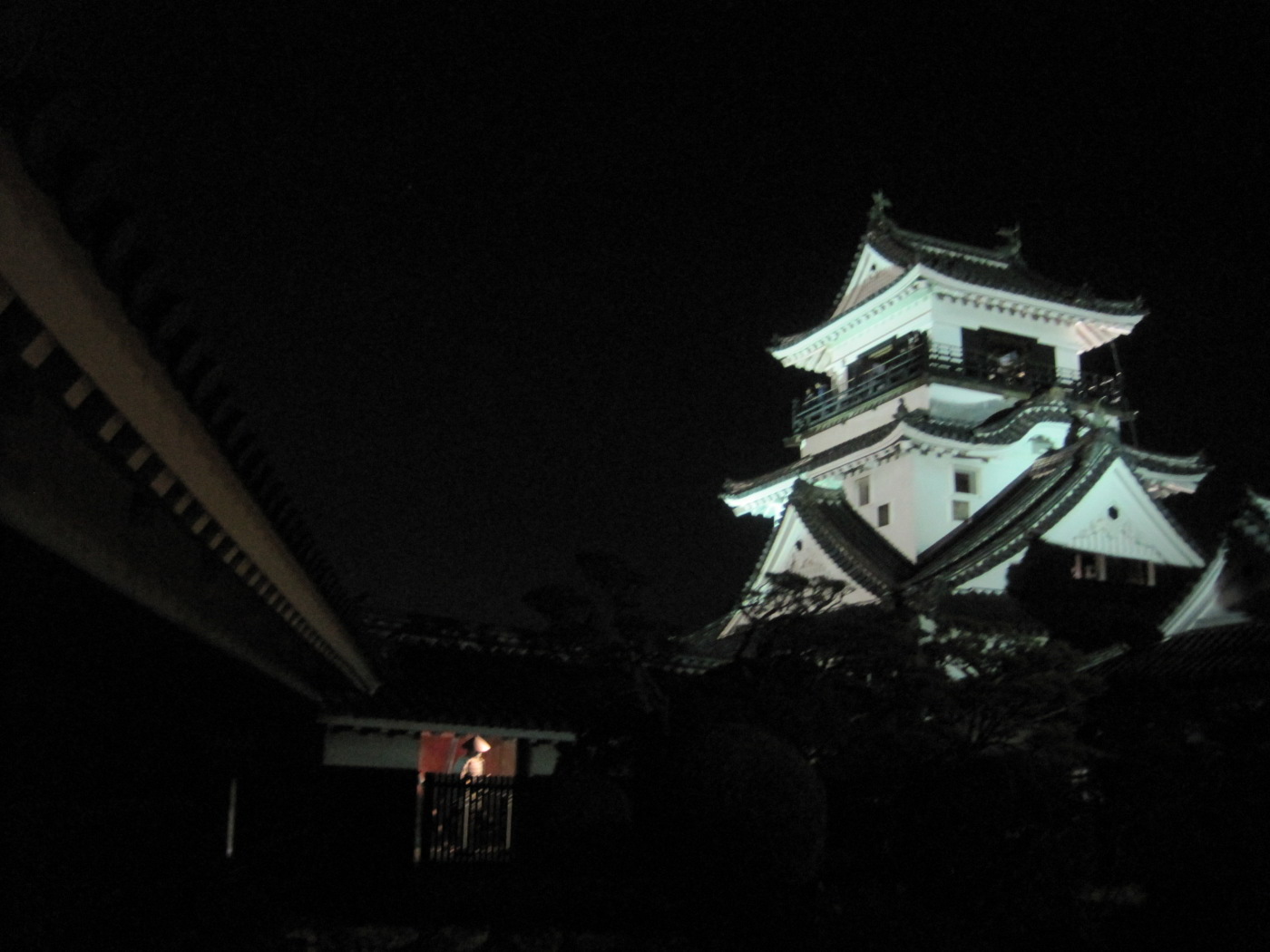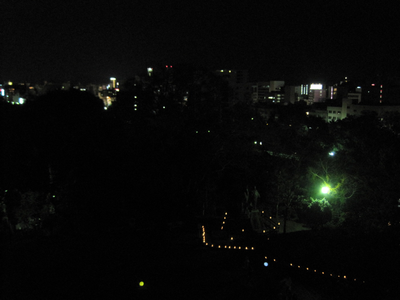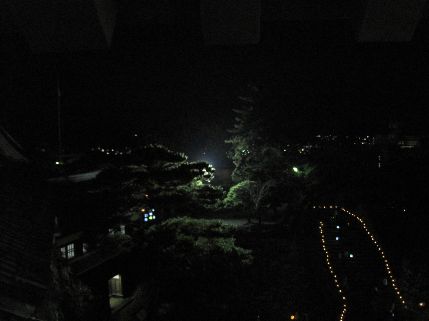 天守閣も闇に,そして,キャンドルライトの遙か彼方に浮かび上がります。 |