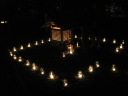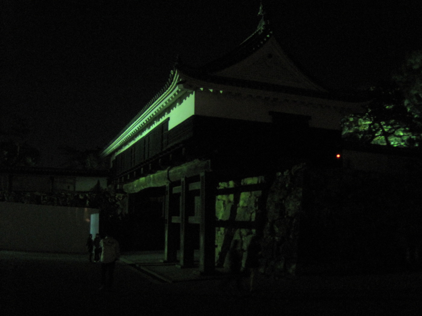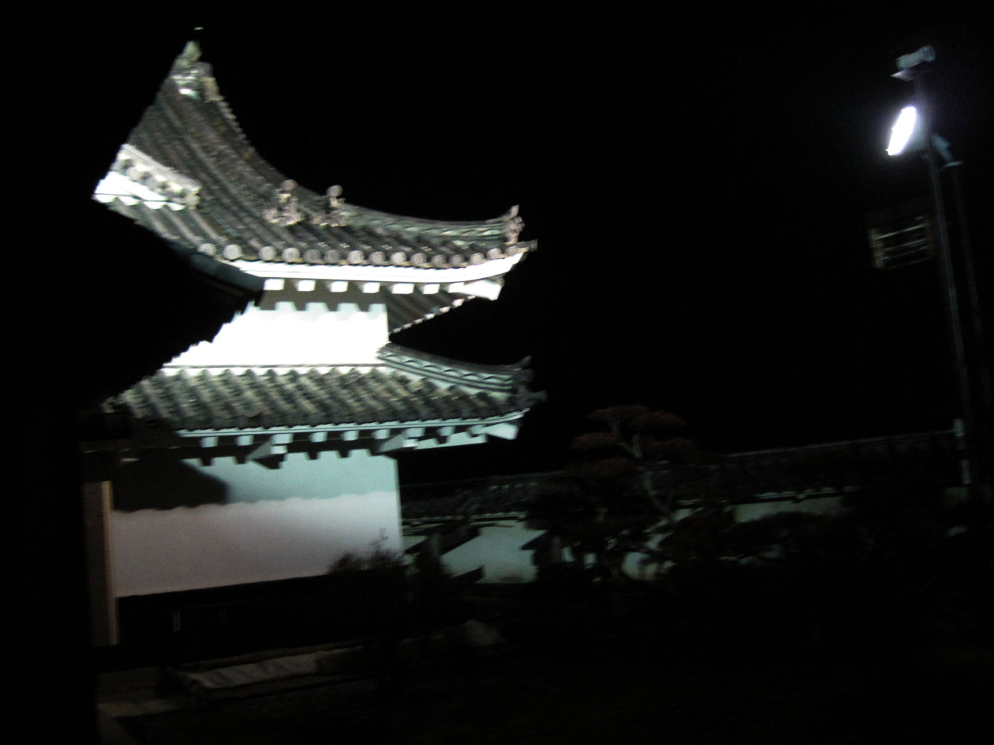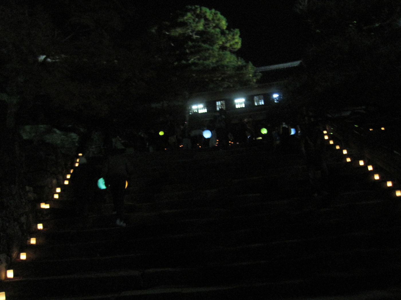 天守閣も闇に,そして,キャンドルライトの遙か彼方に浮かび上がります。 |