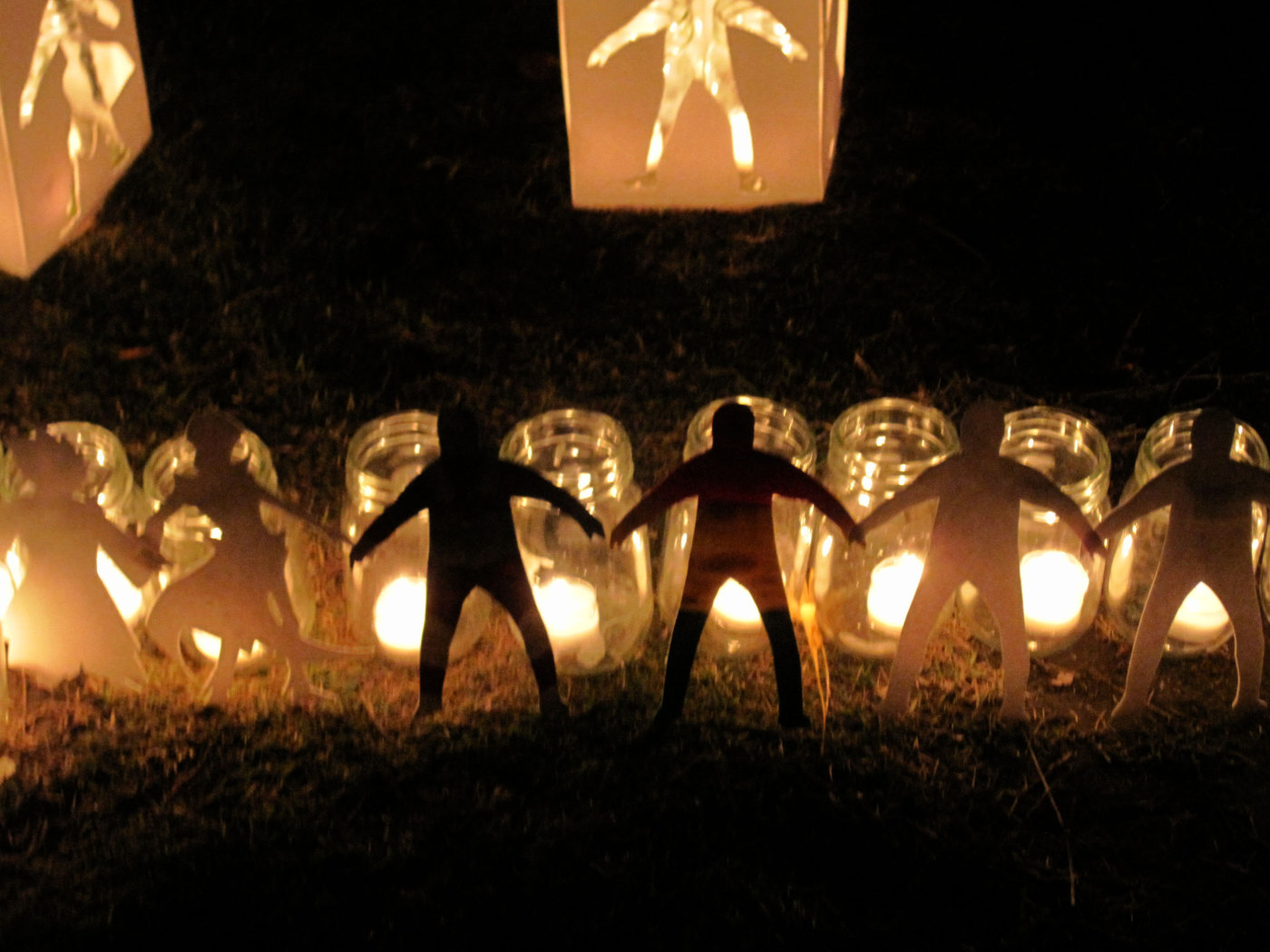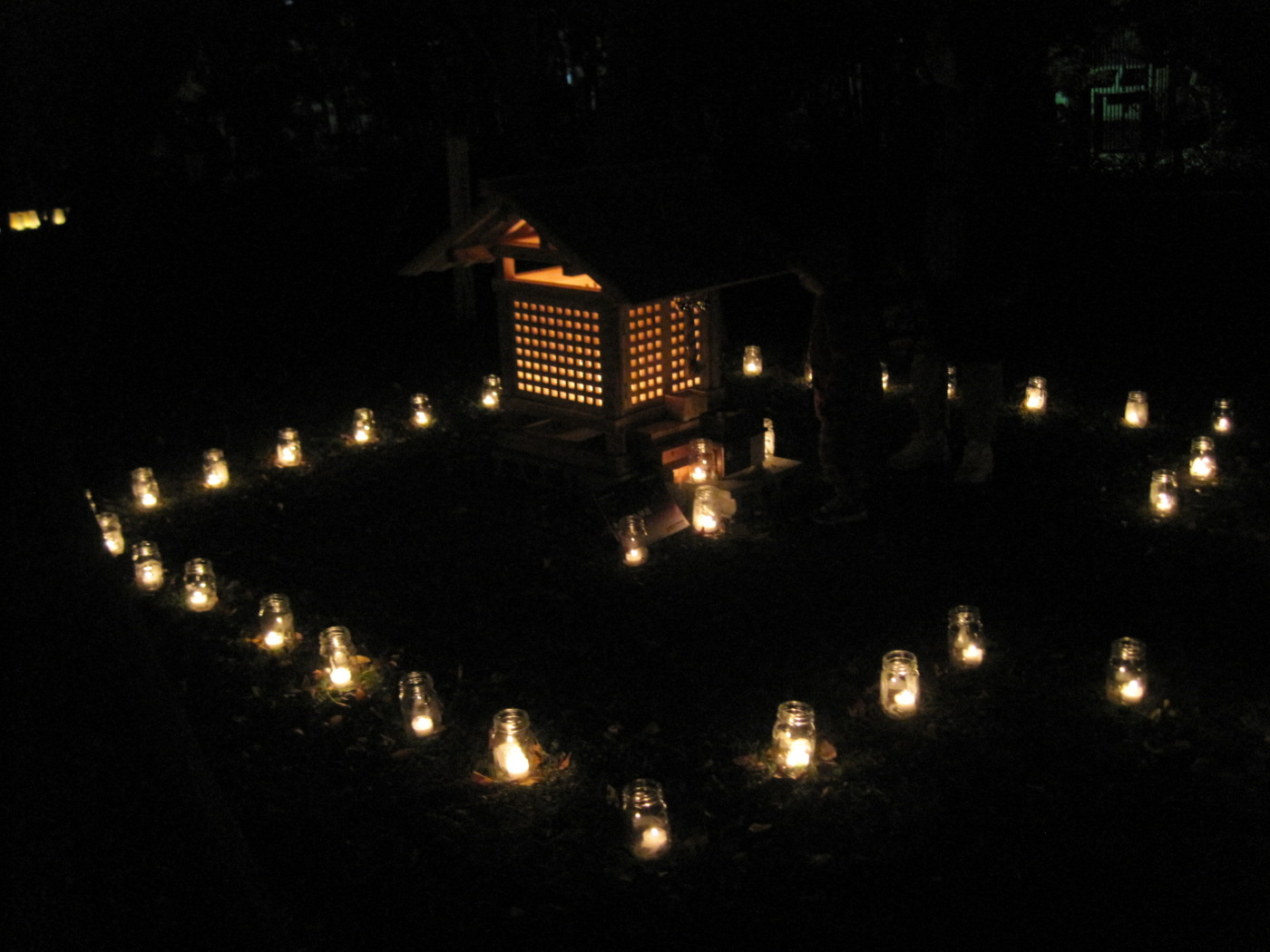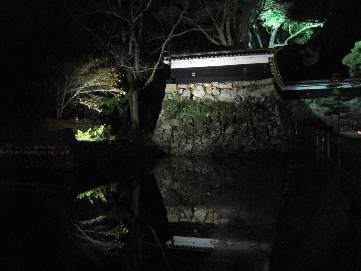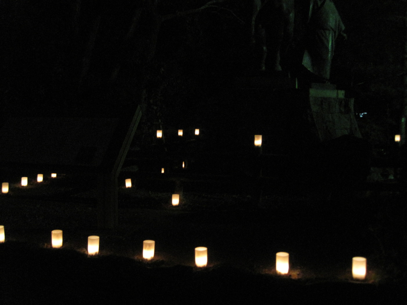 天守閣も闇に,そして,キャンドルライトの遙か彼方に浮かび上がります。 |