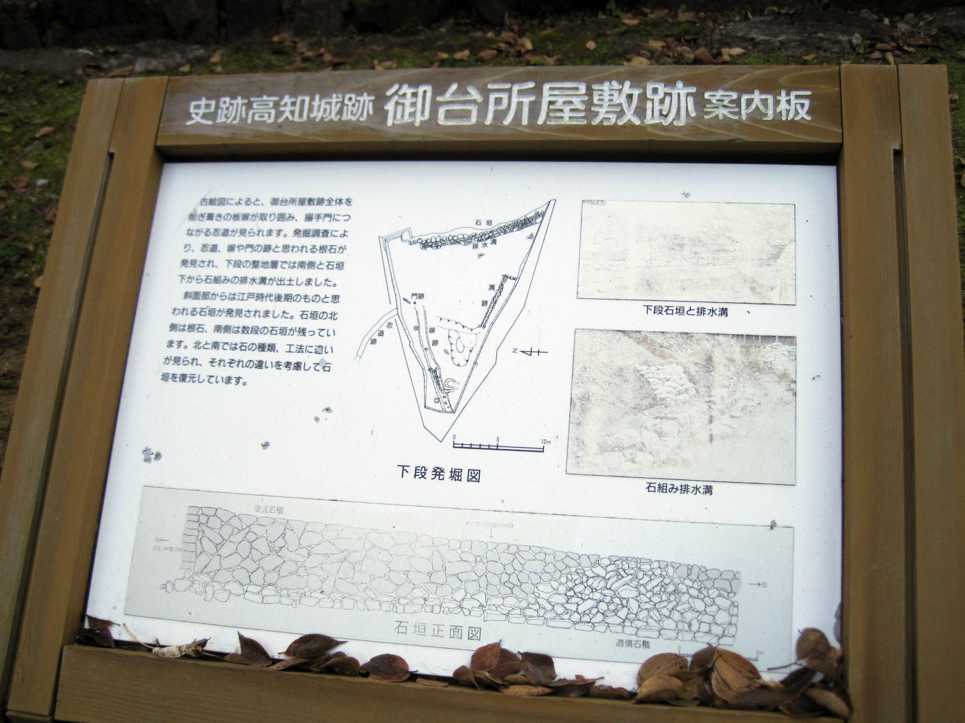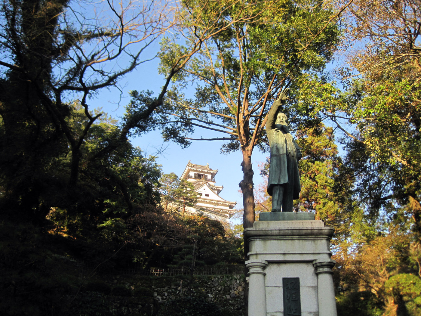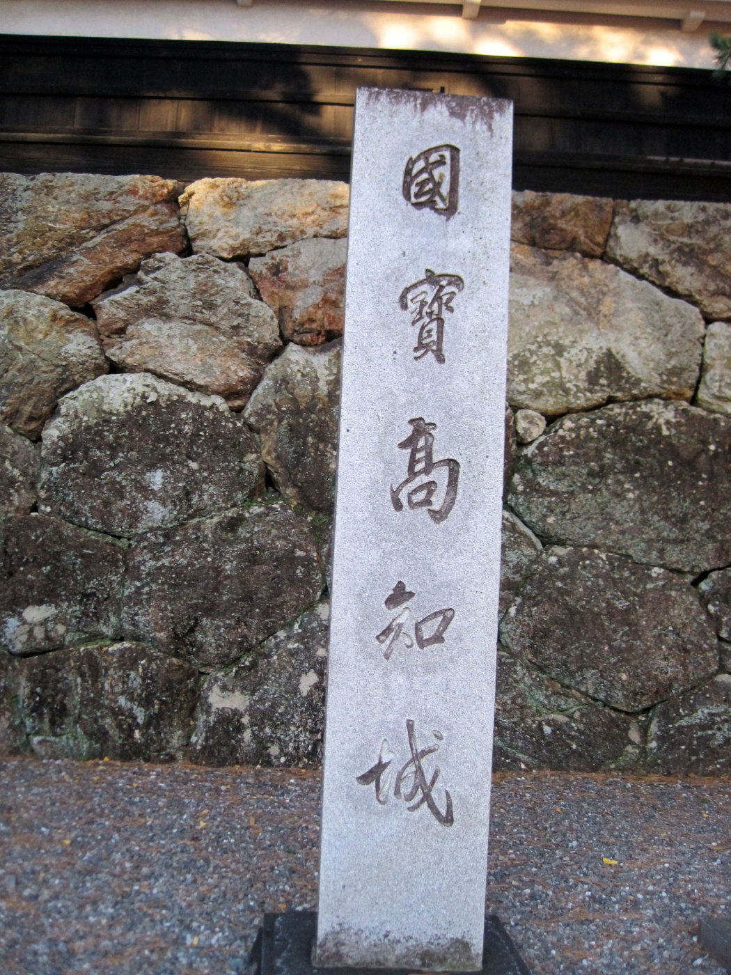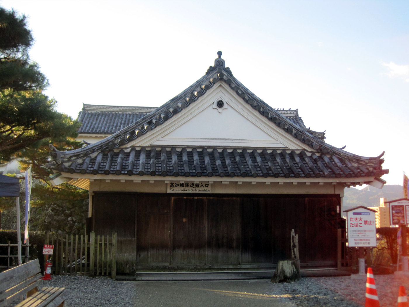 【高知城は、高知県高知市(土佐国土佐郡高知)にあった城。別名、鷹城(たかじょう)。江戸時代、土佐藩の藩庁がおかれた。江戸時代に建造された天守や追手門等が現存し、城跡は国の史跡に指定されている。日本100名城に選定されている。】です。