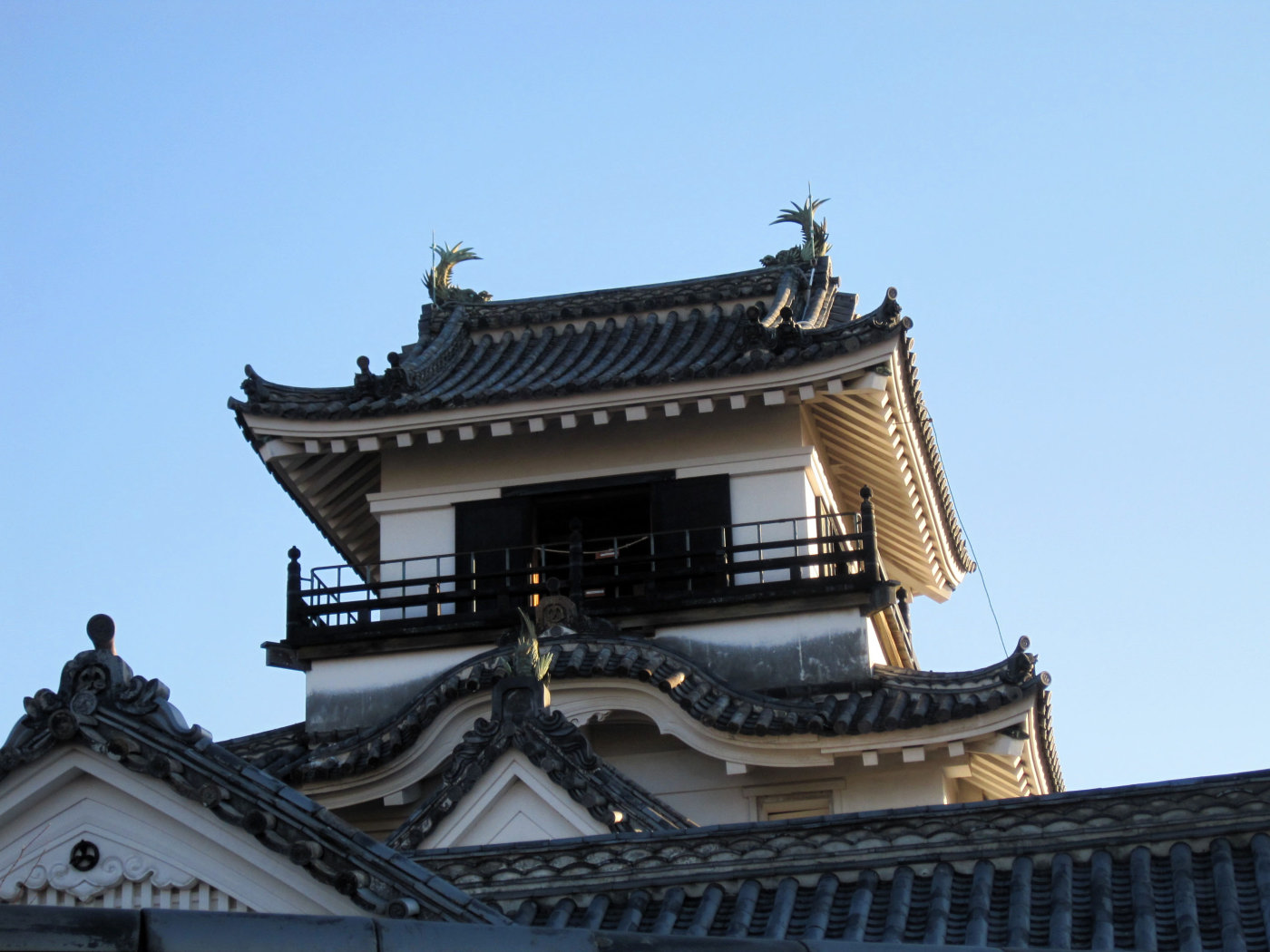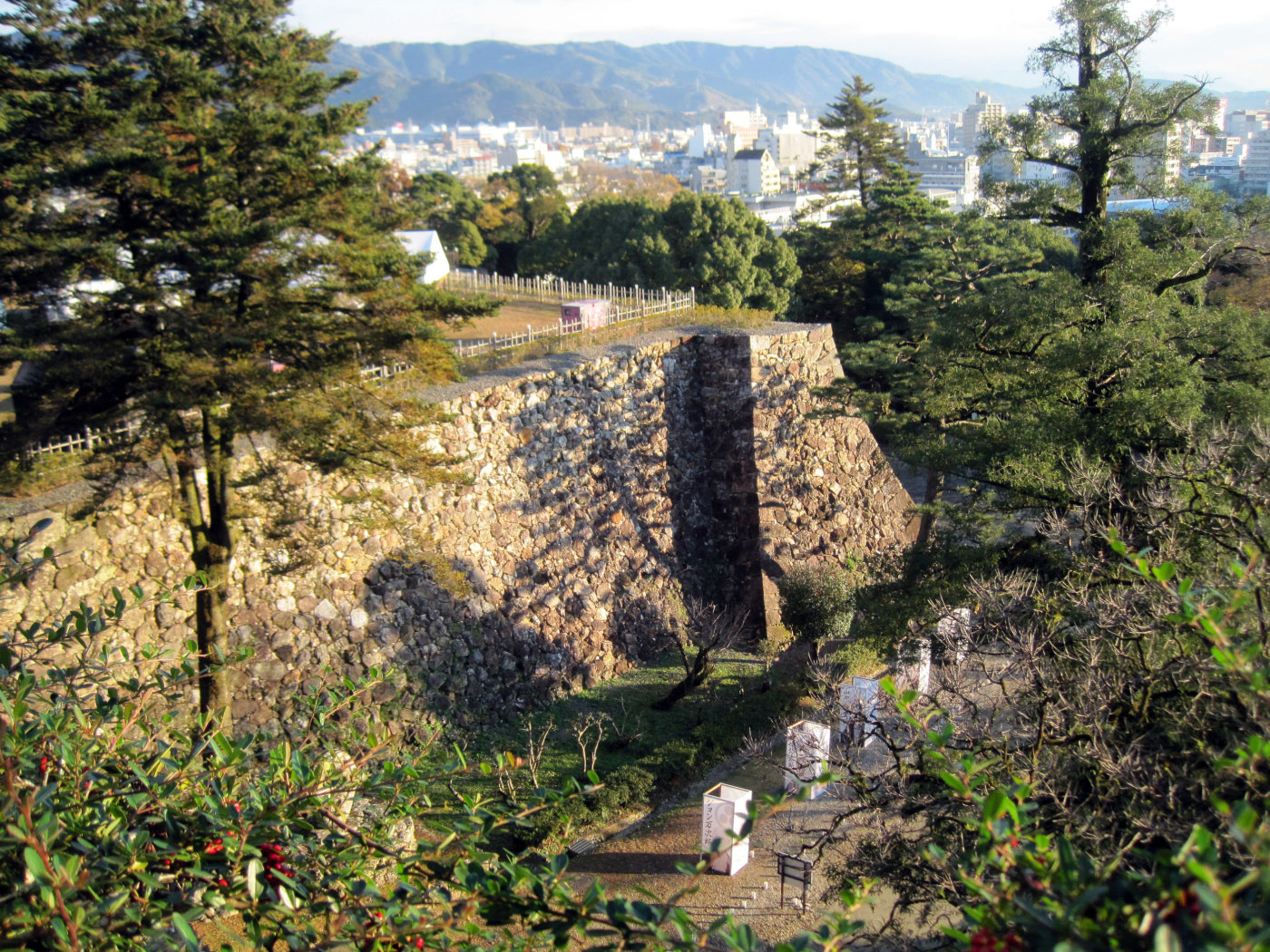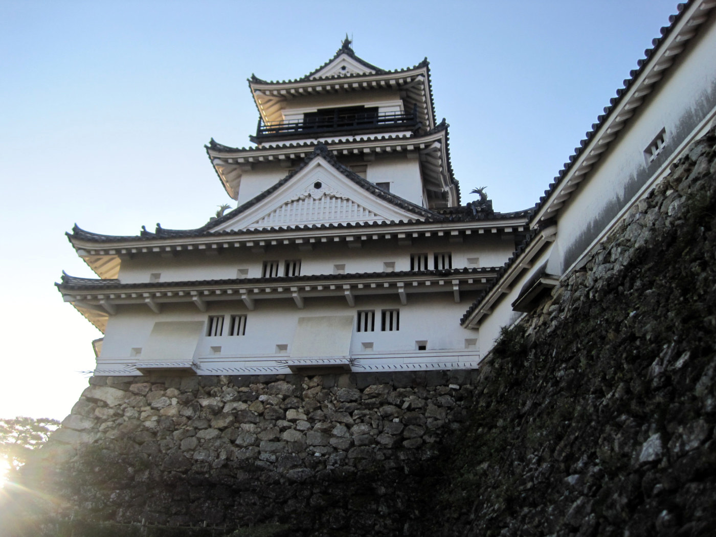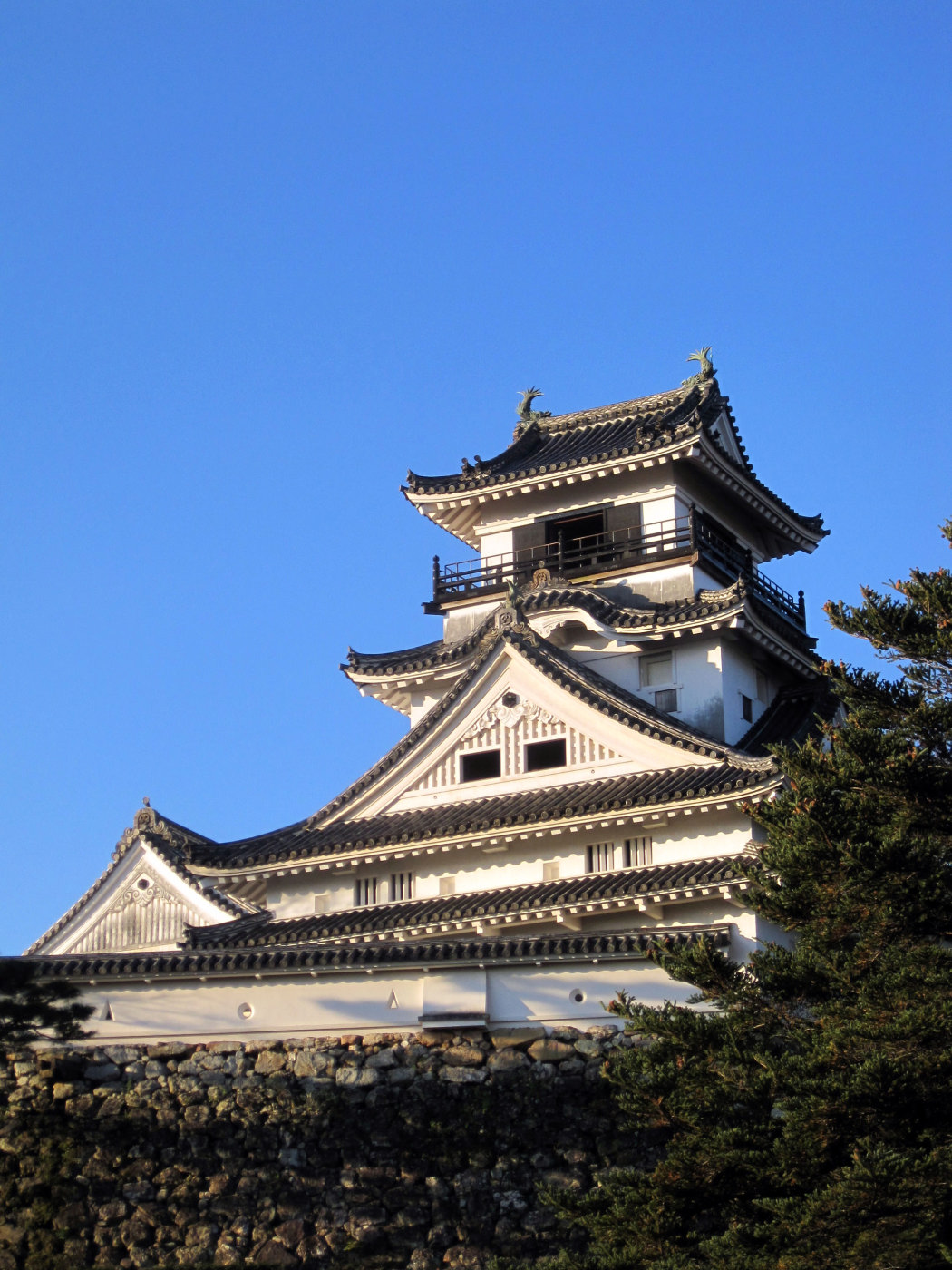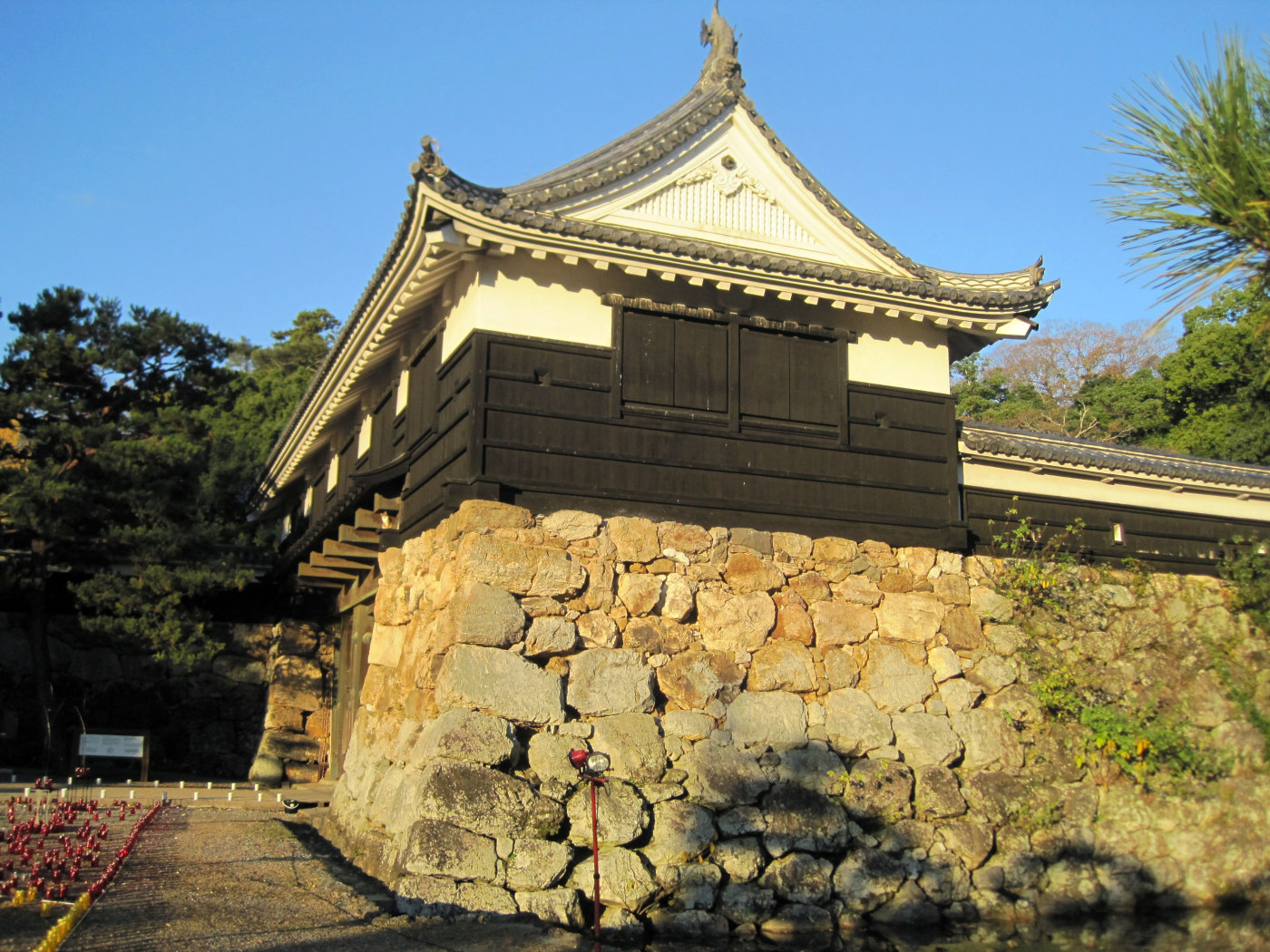 【高知城は、高知県高知市(土佐国土佐郡高知)にあった城。別名、鷹城(たかじょう)。江戸時代、土佐藩の藩庁がおかれた。江戸時代に建造された天守や追手門等が現存し、城跡は国の史跡に指定されている。日本100名城に選定されている。】です。