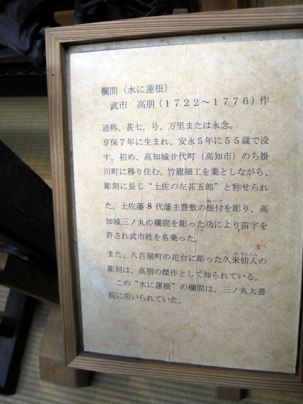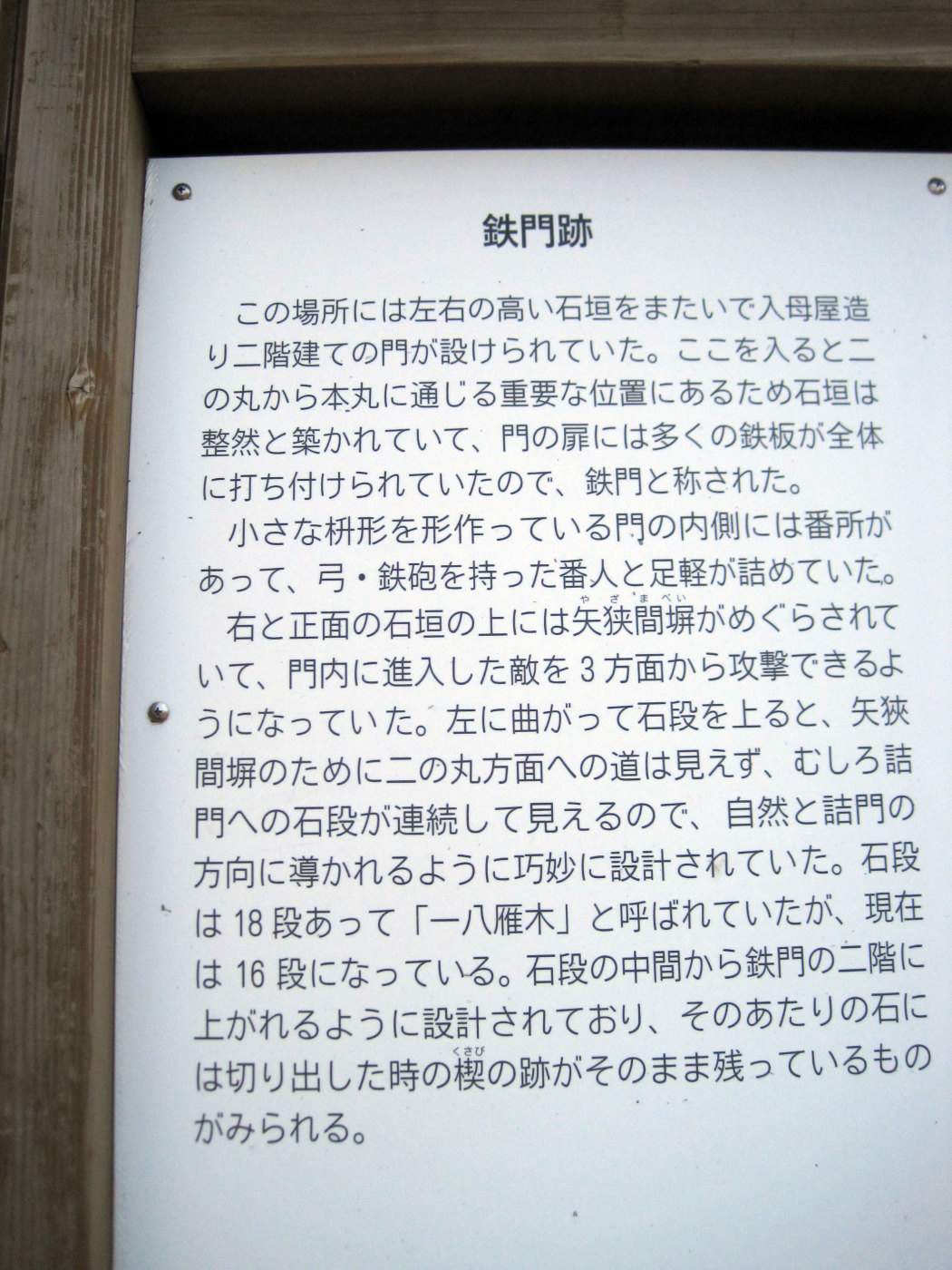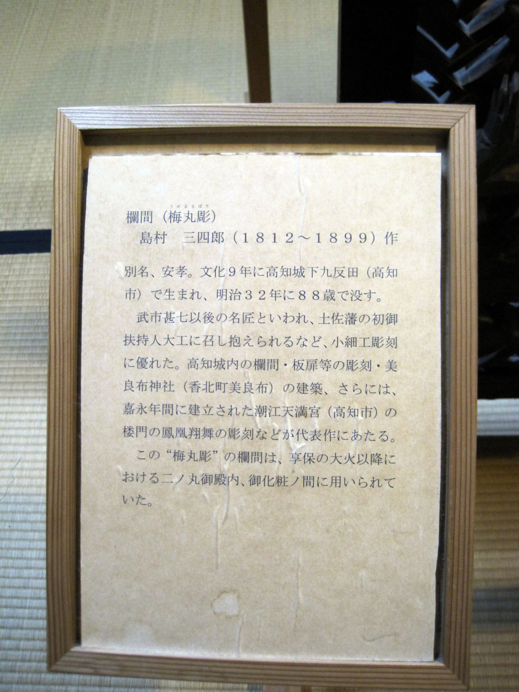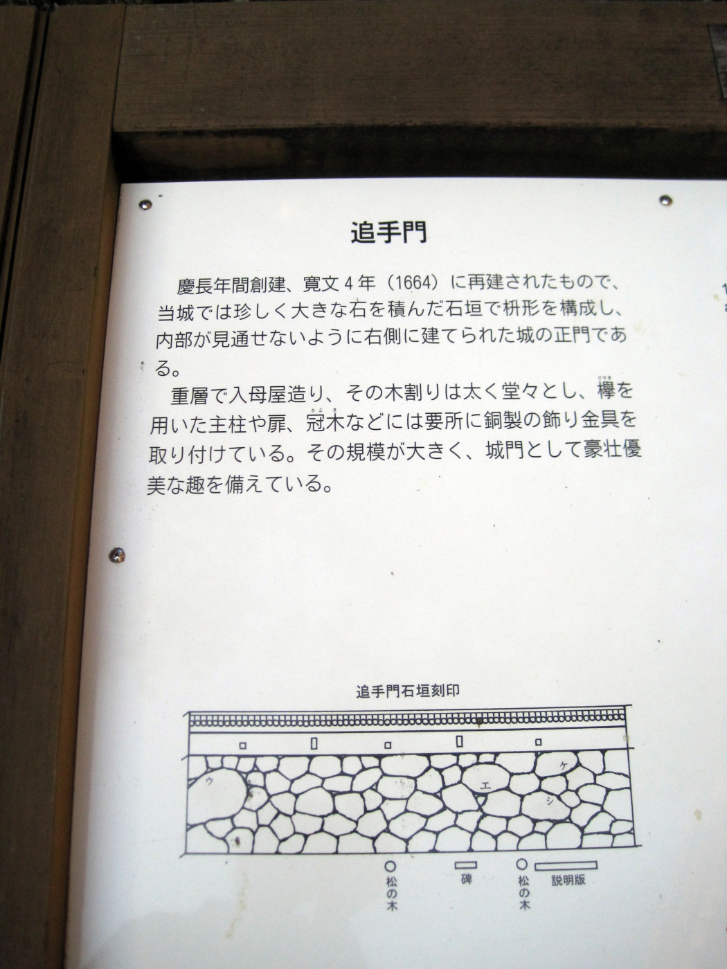 【高知城は、高知県高知市(土佐国土佐郡高知)にあった城。別名、鷹城(たかじょう)。江戸時代、土佐藩の藩庁がおかれた。江戸時代に建造された天守や追手門等が現存し、城跡は国の史跡に指定されている。日本100名城に選定されている。】です。