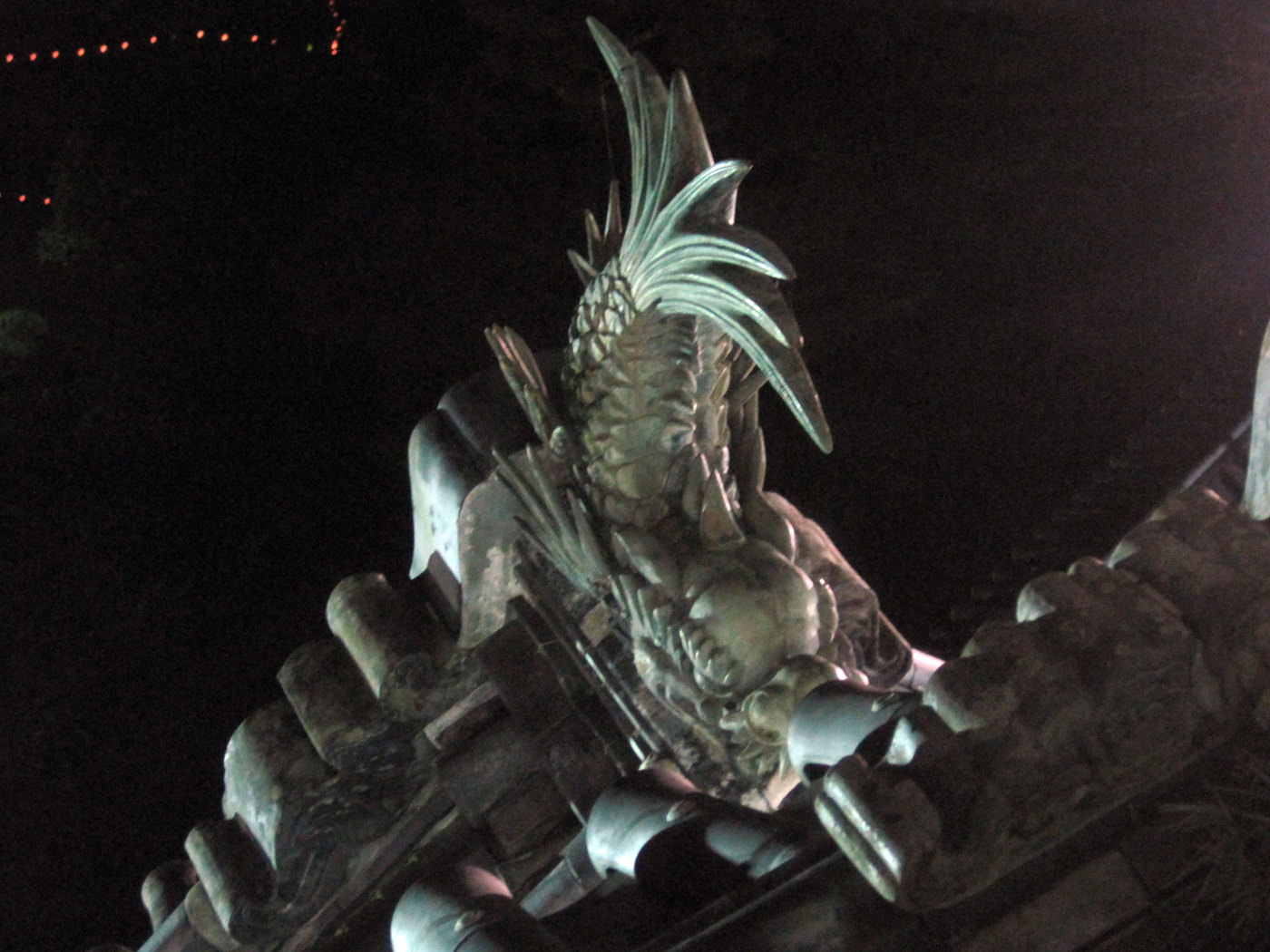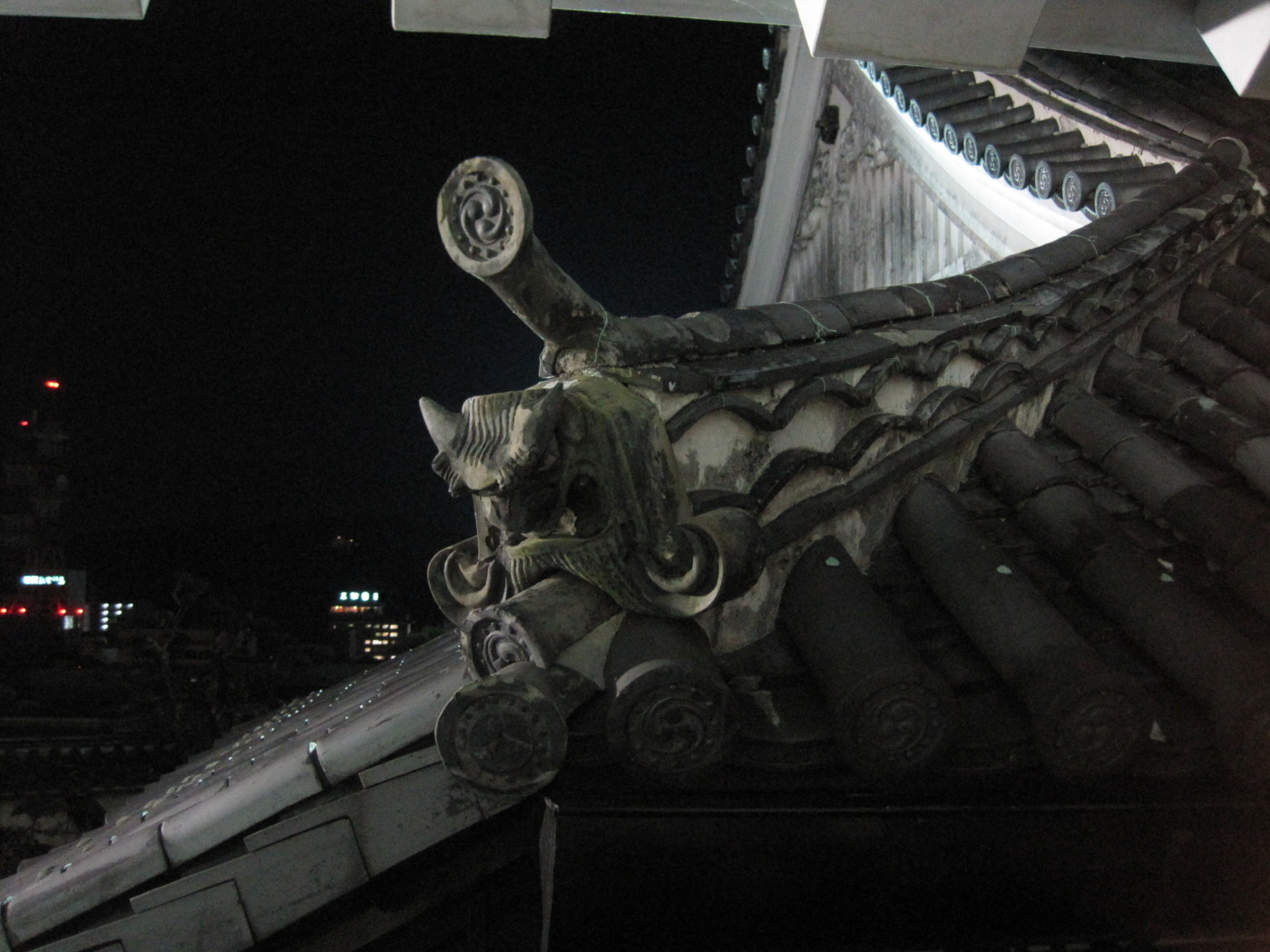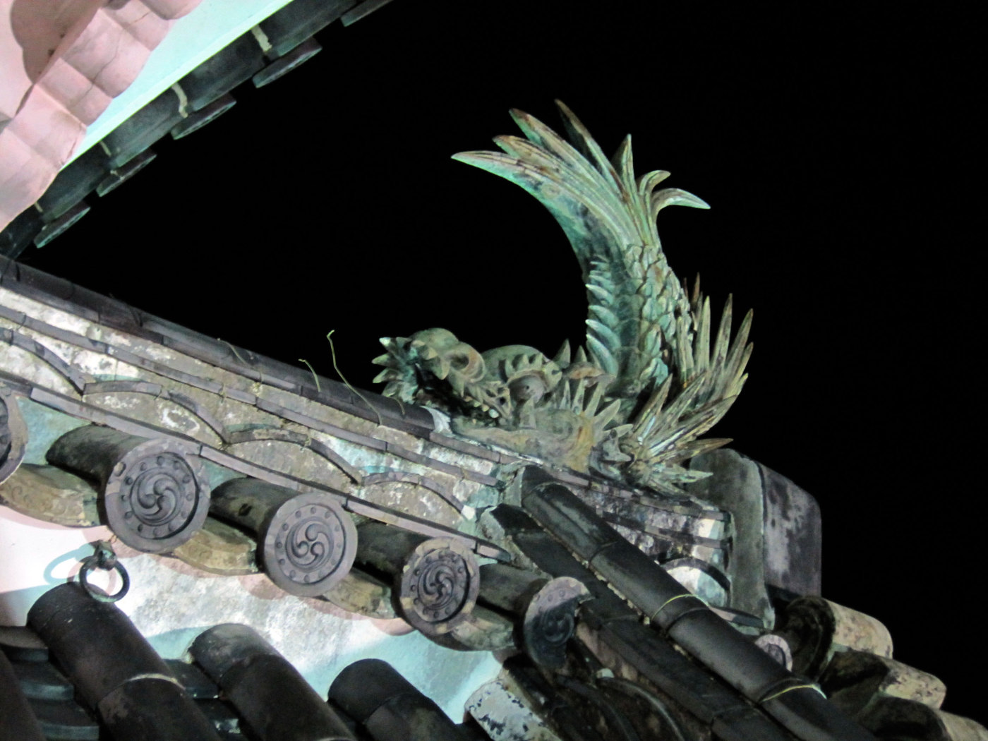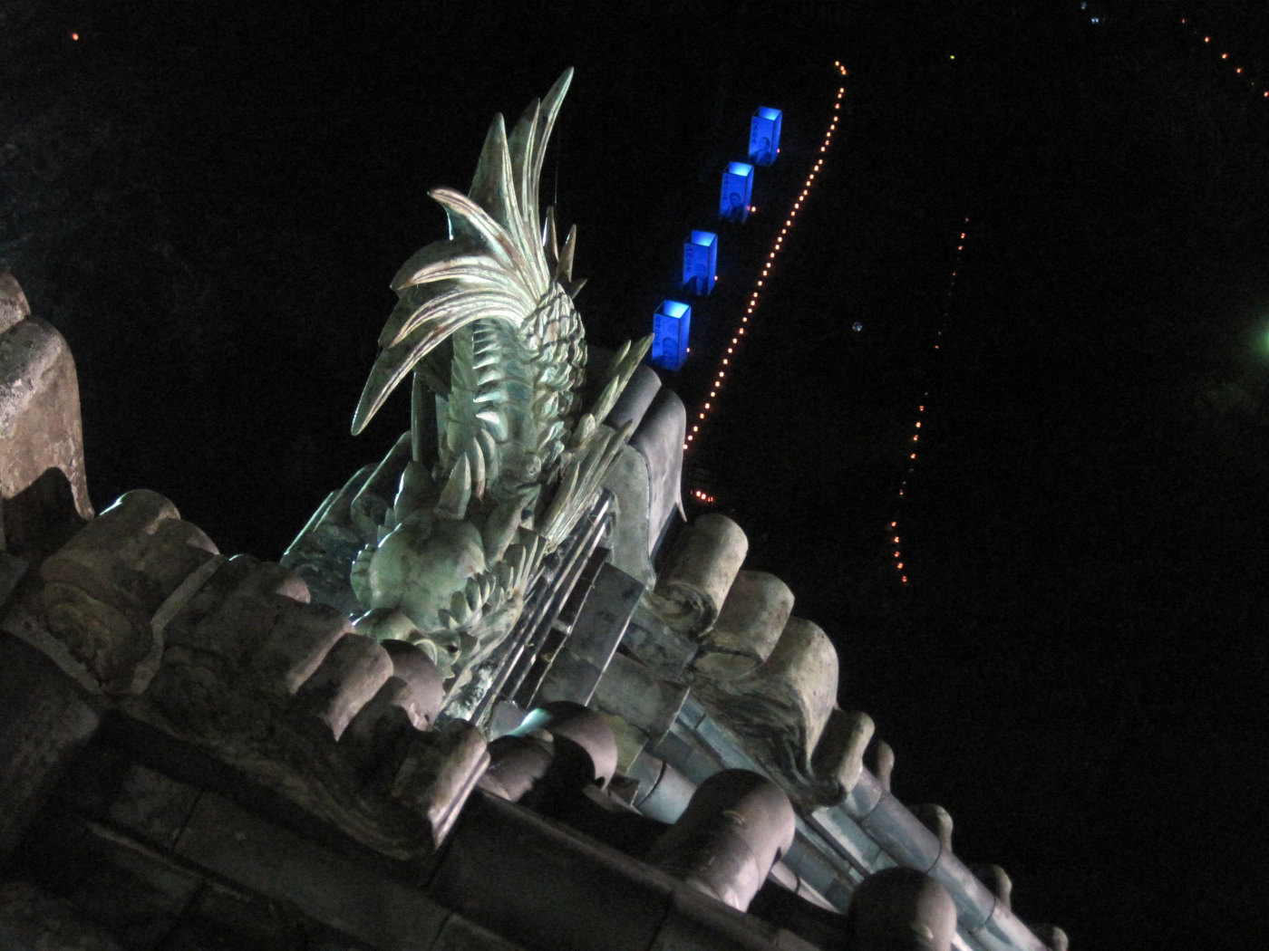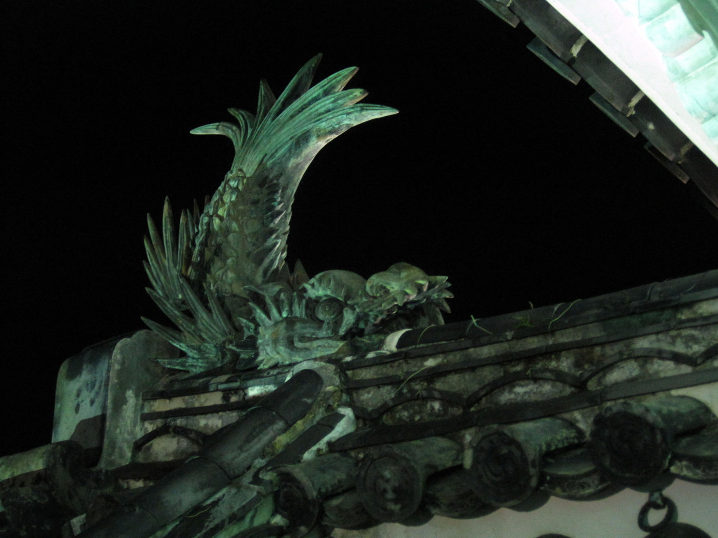 ライトアップで,鯱もなんだか勇壮さを増しています。