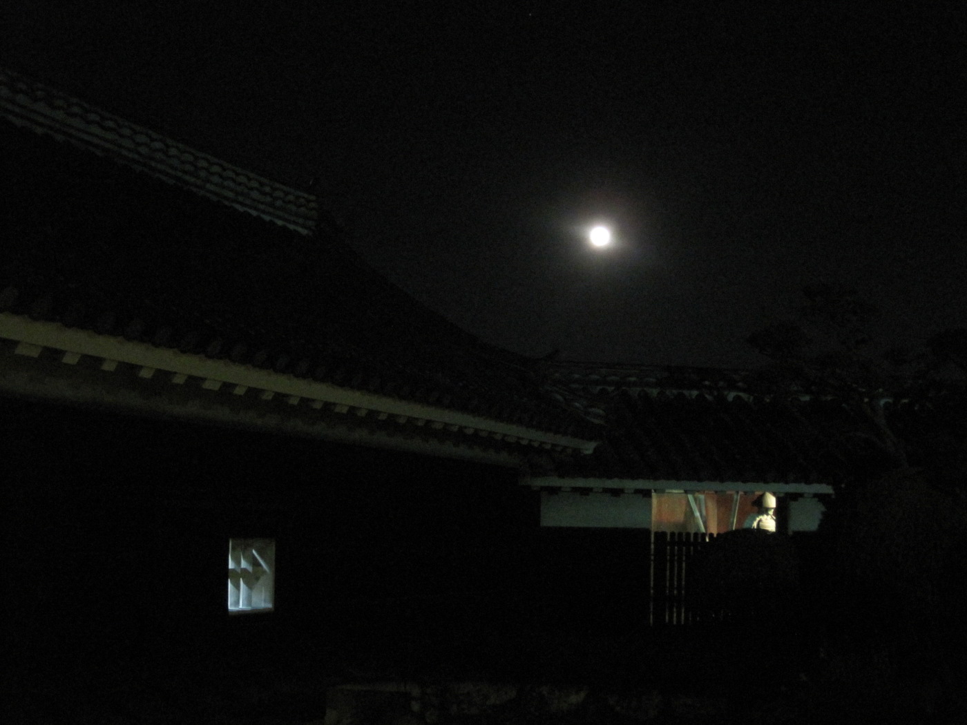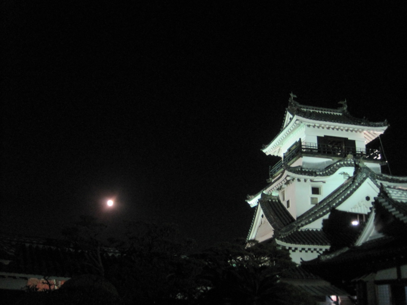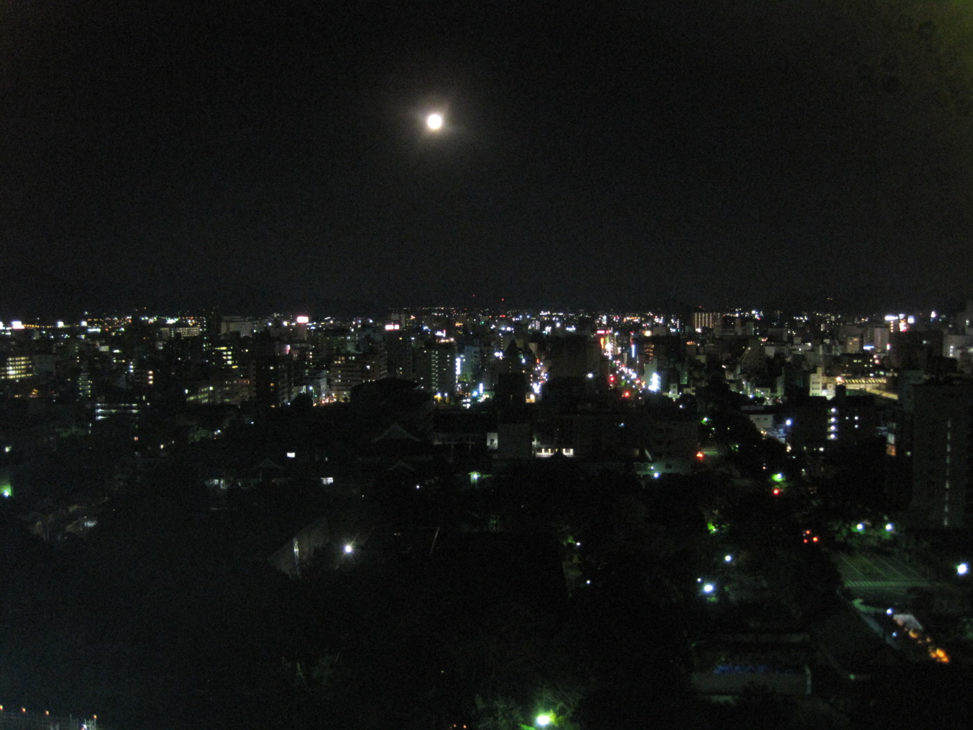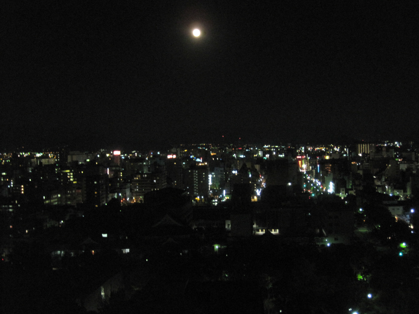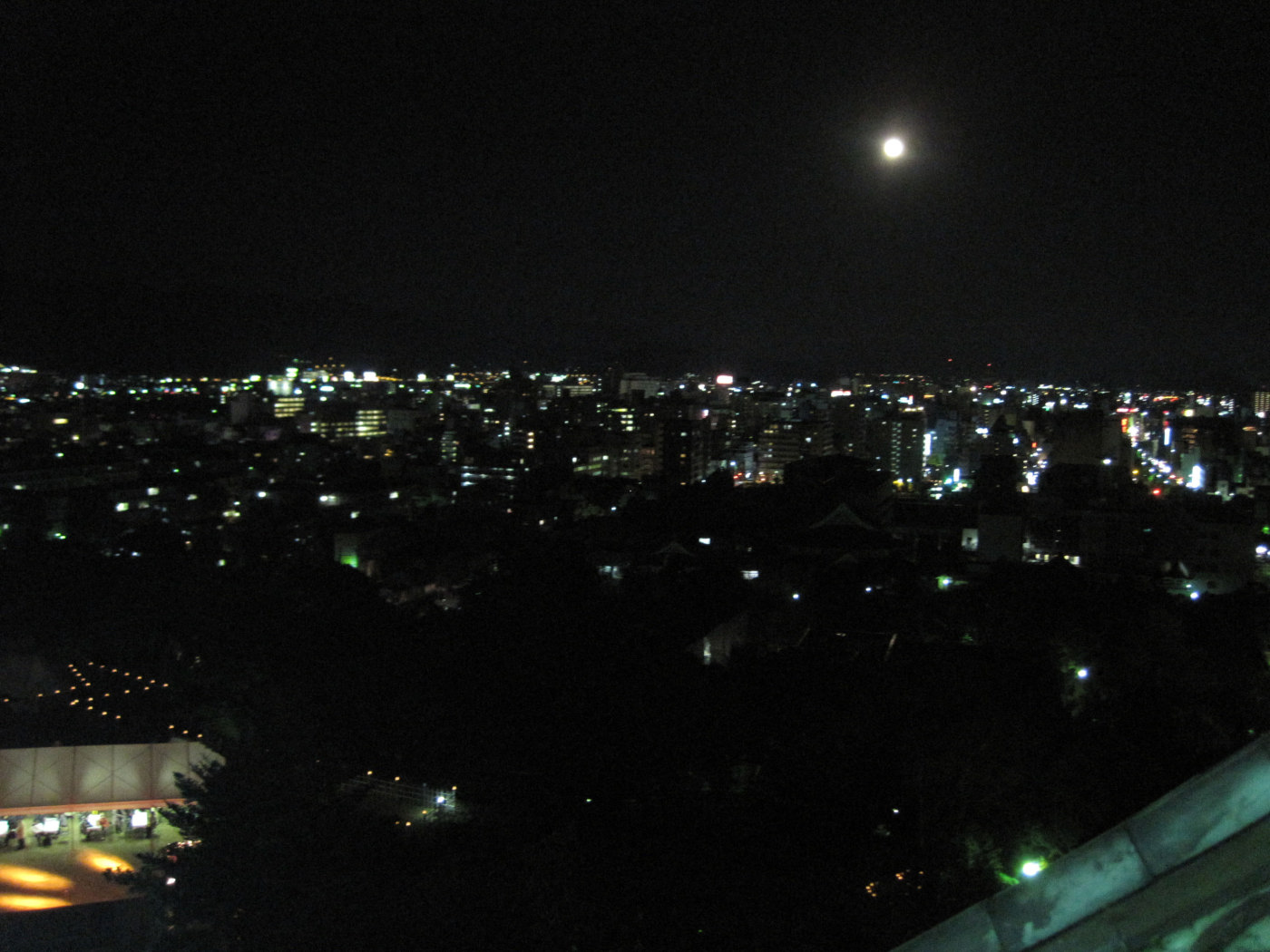 当時の城下を示すジオラマなどもあって・・・で,天守閣からは「なごみの灯り」イベントや高知市街の夜景・・そして,前日,皆既月食だった満月に近い月が!