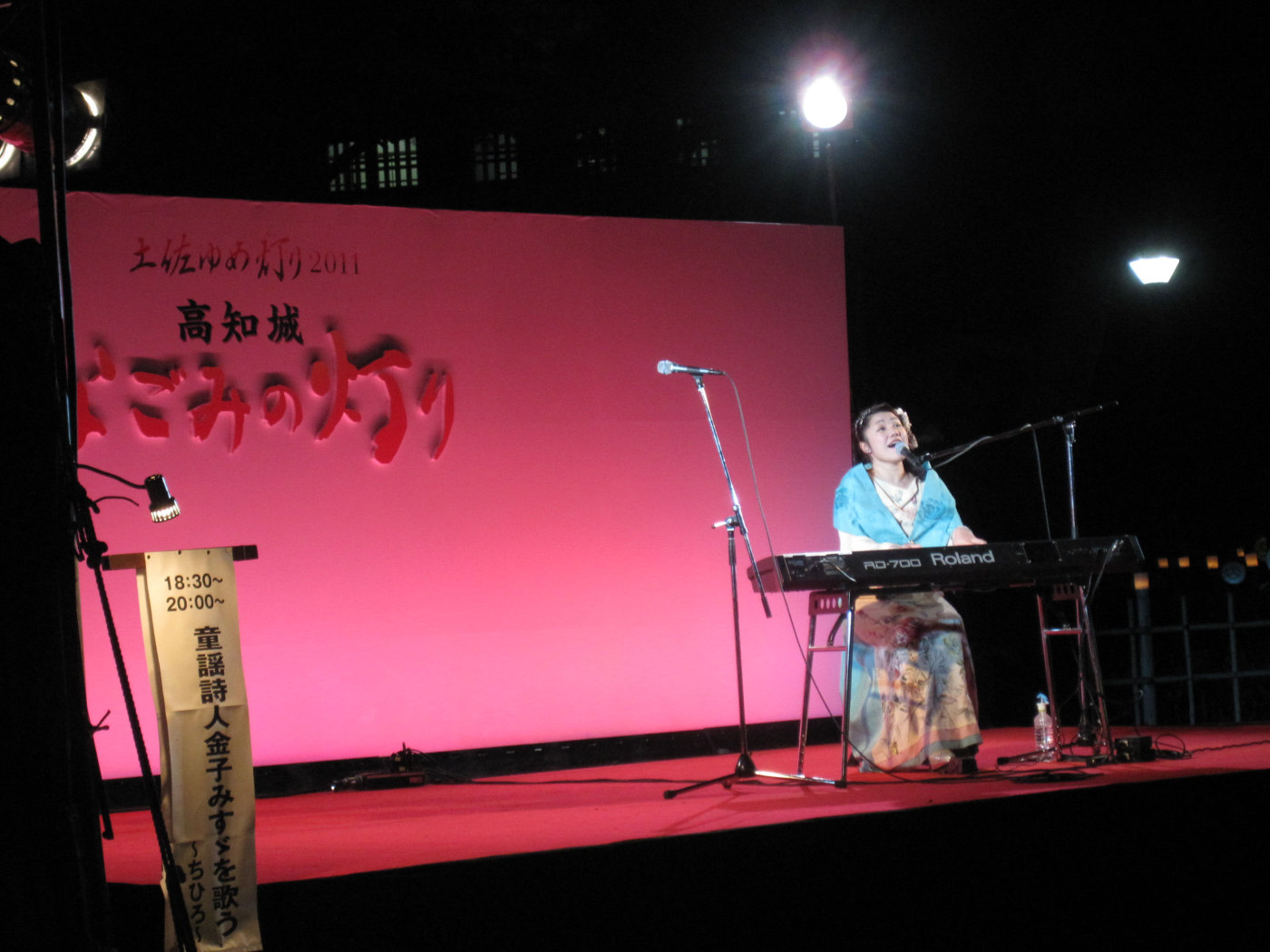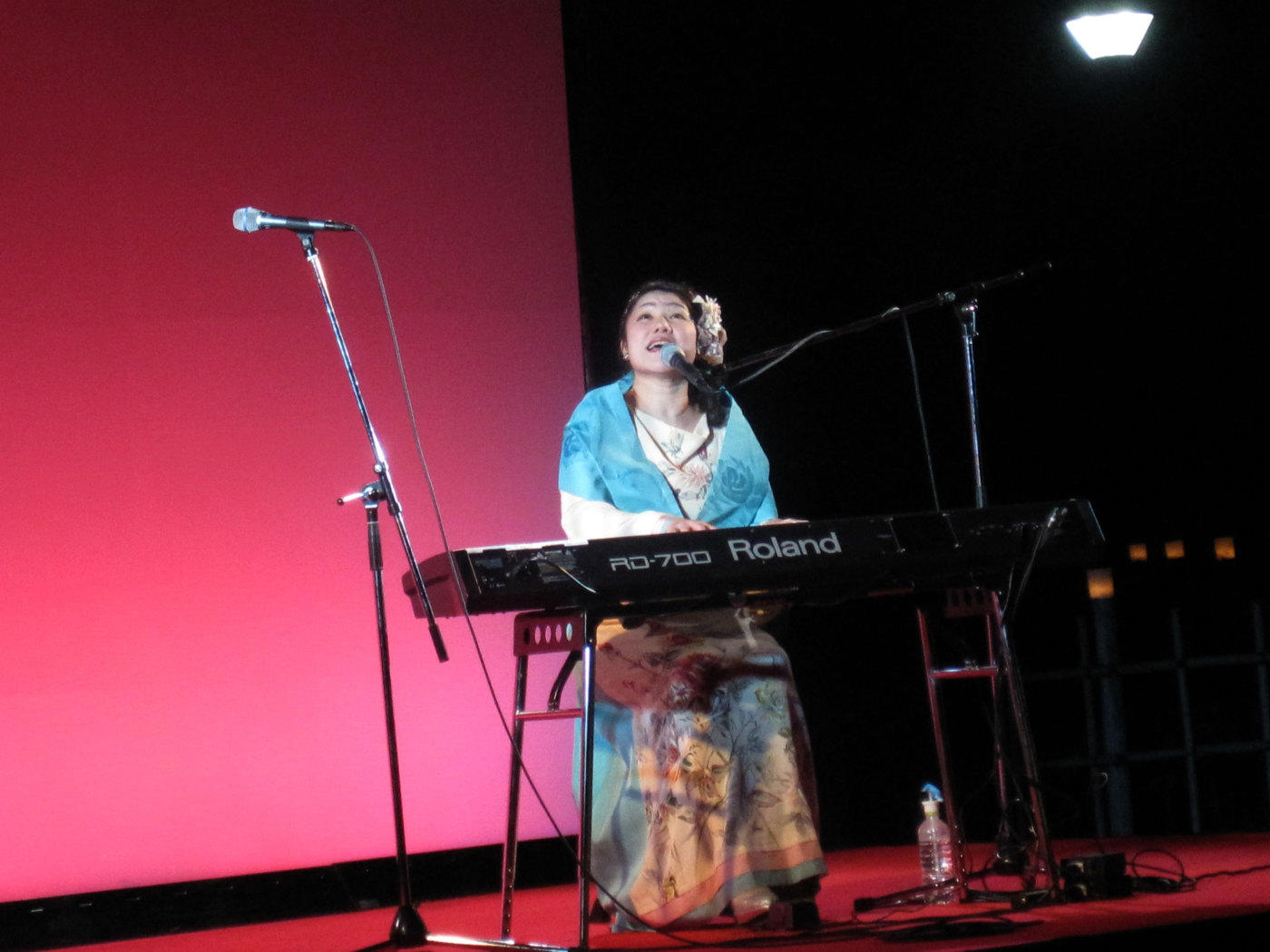 ちょうど,ステージでは,金子みすゞさんの詩に曲をつけて歌われている「ちひろ」さんのパーフォーマンスが始まりました(詳しくは動画で)。