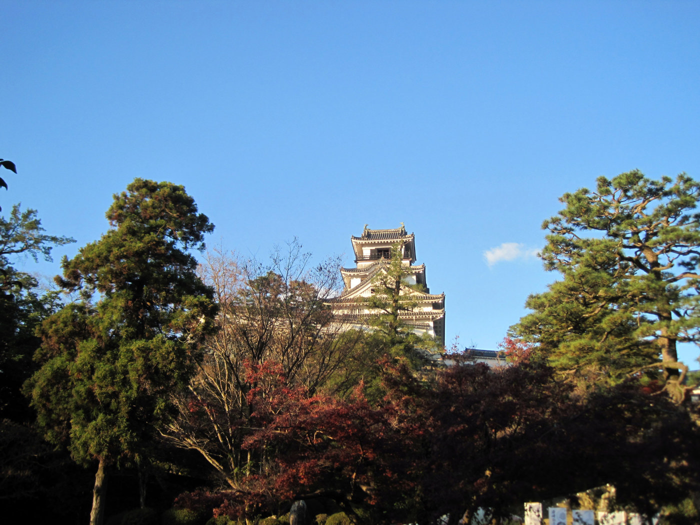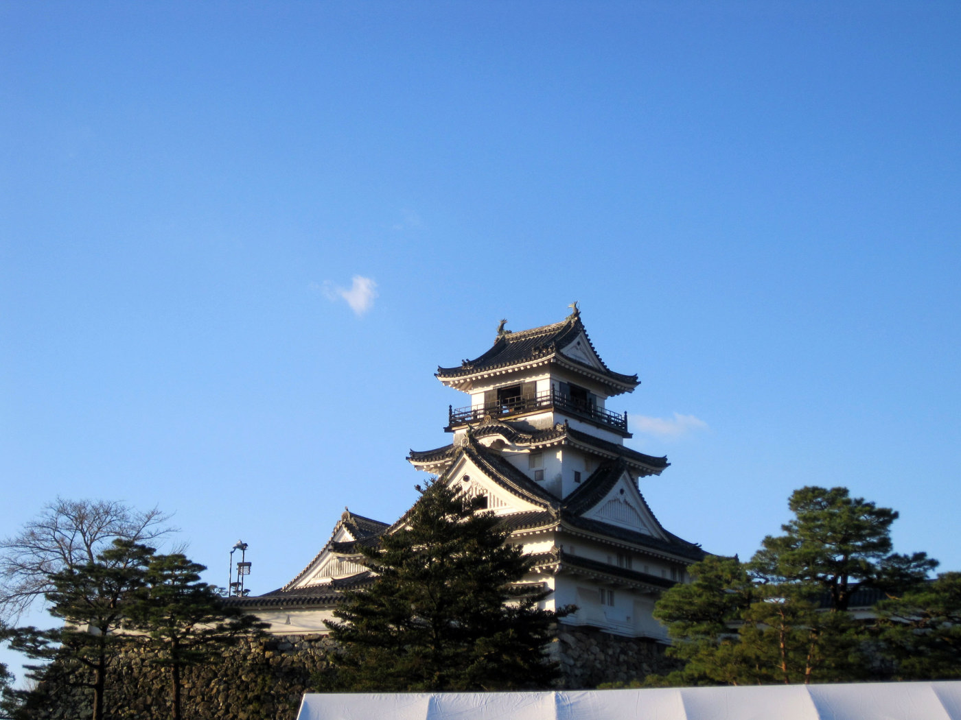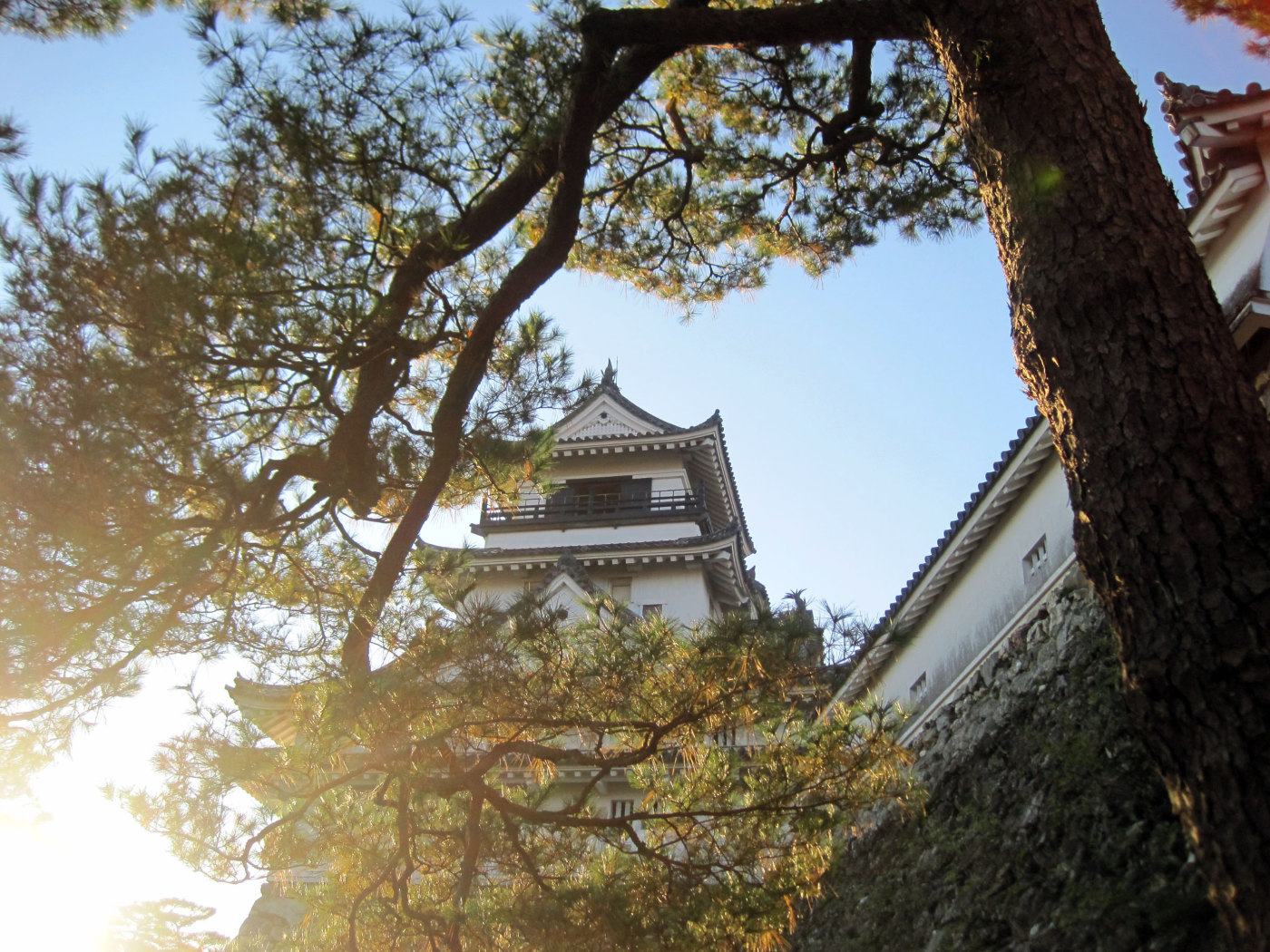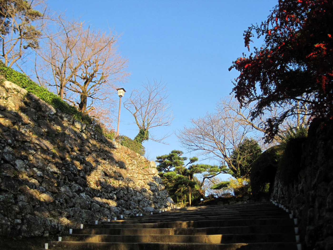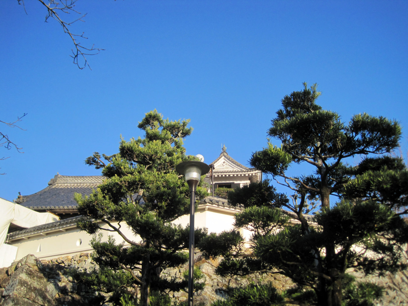 さぁさぁ・・・お城に向かいましょう! 冬の澄み切った青空に天守閣が映えています。