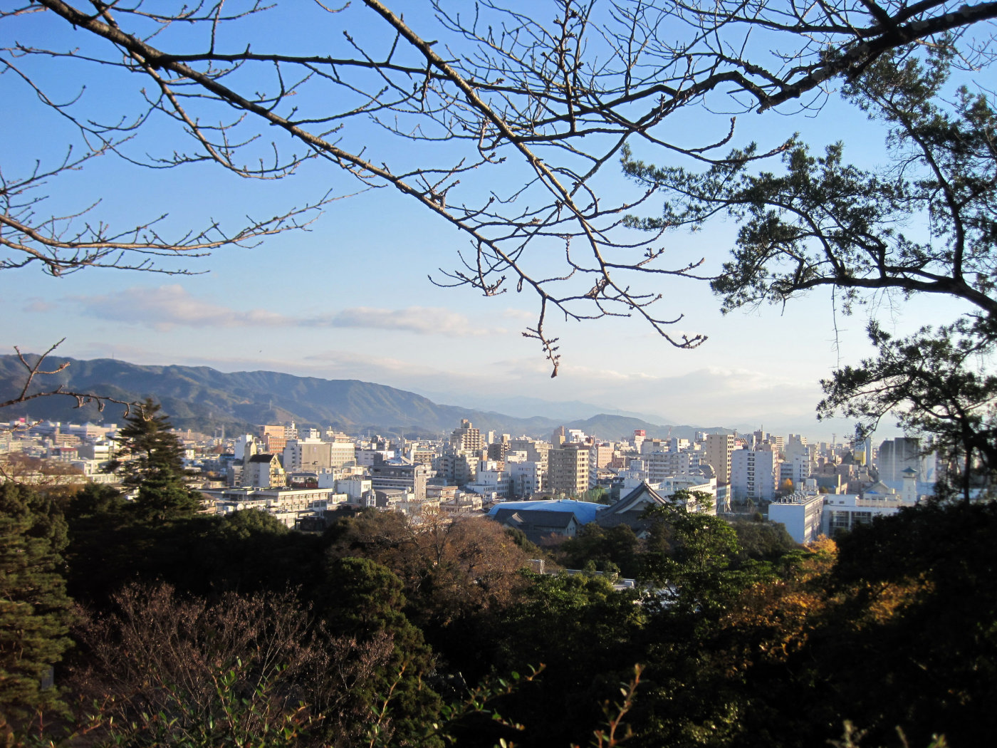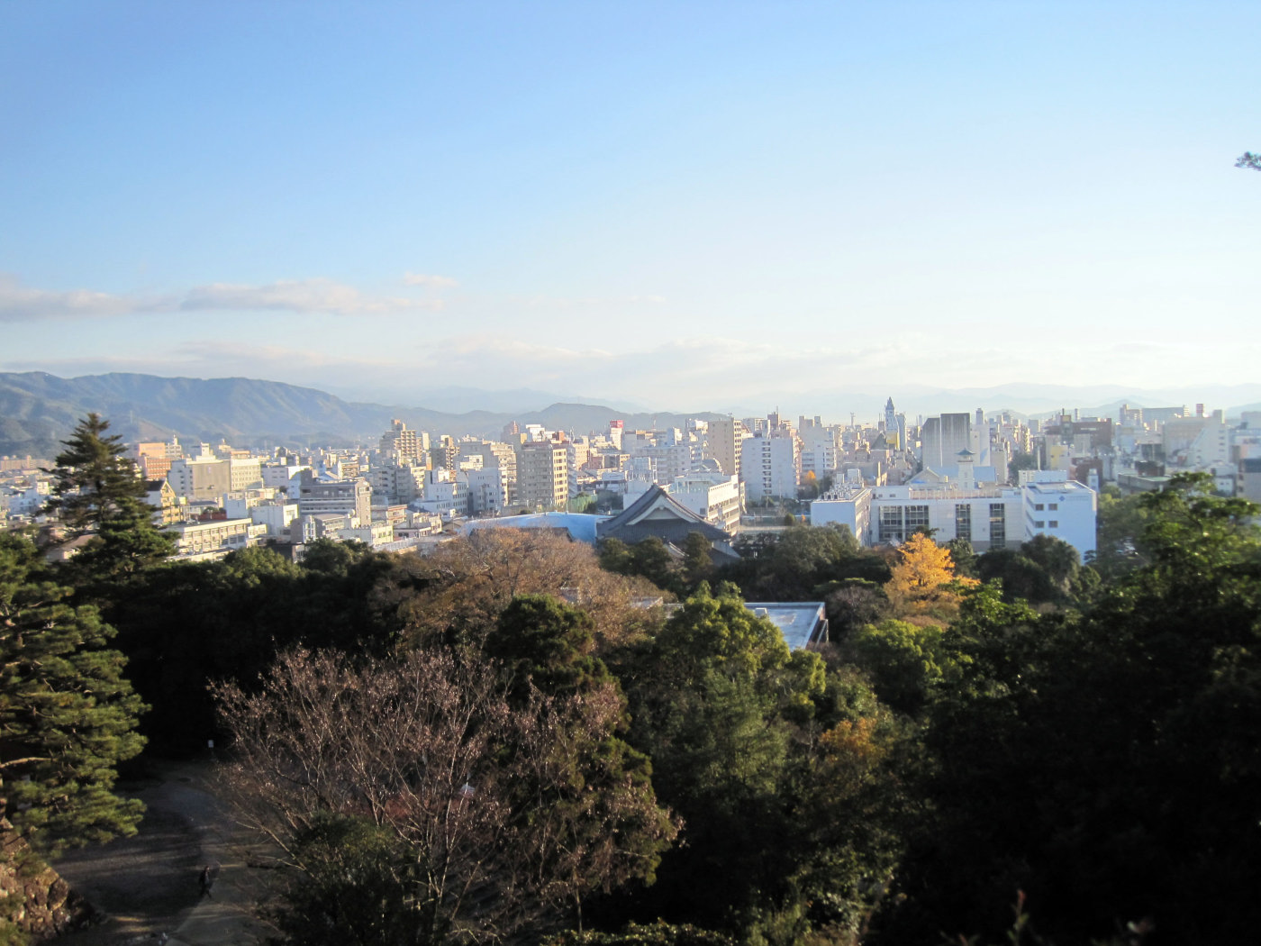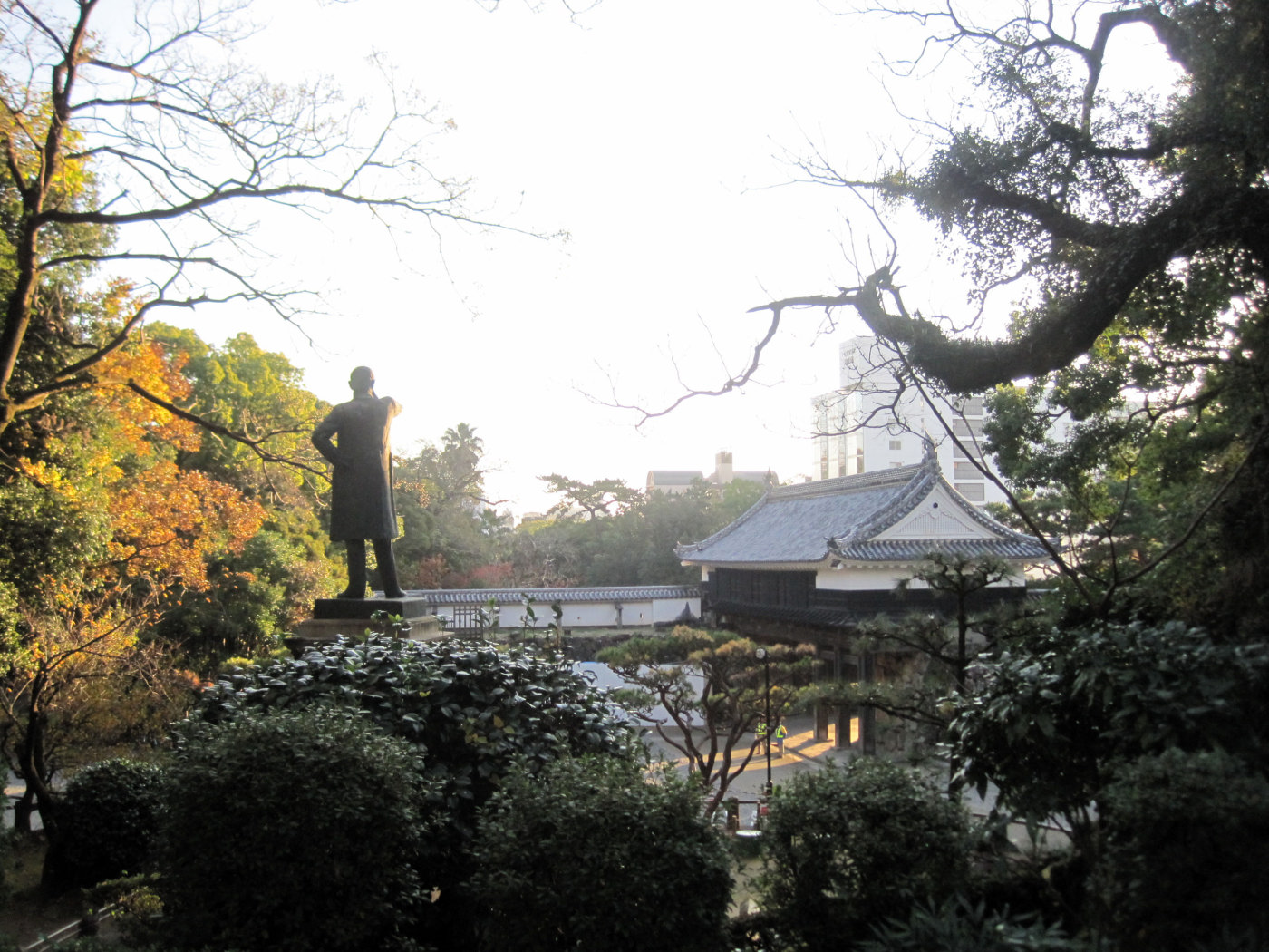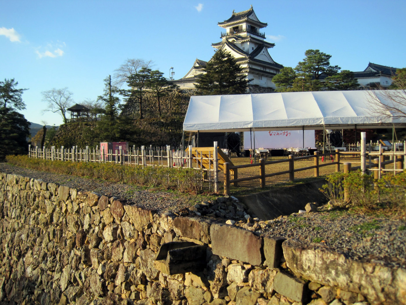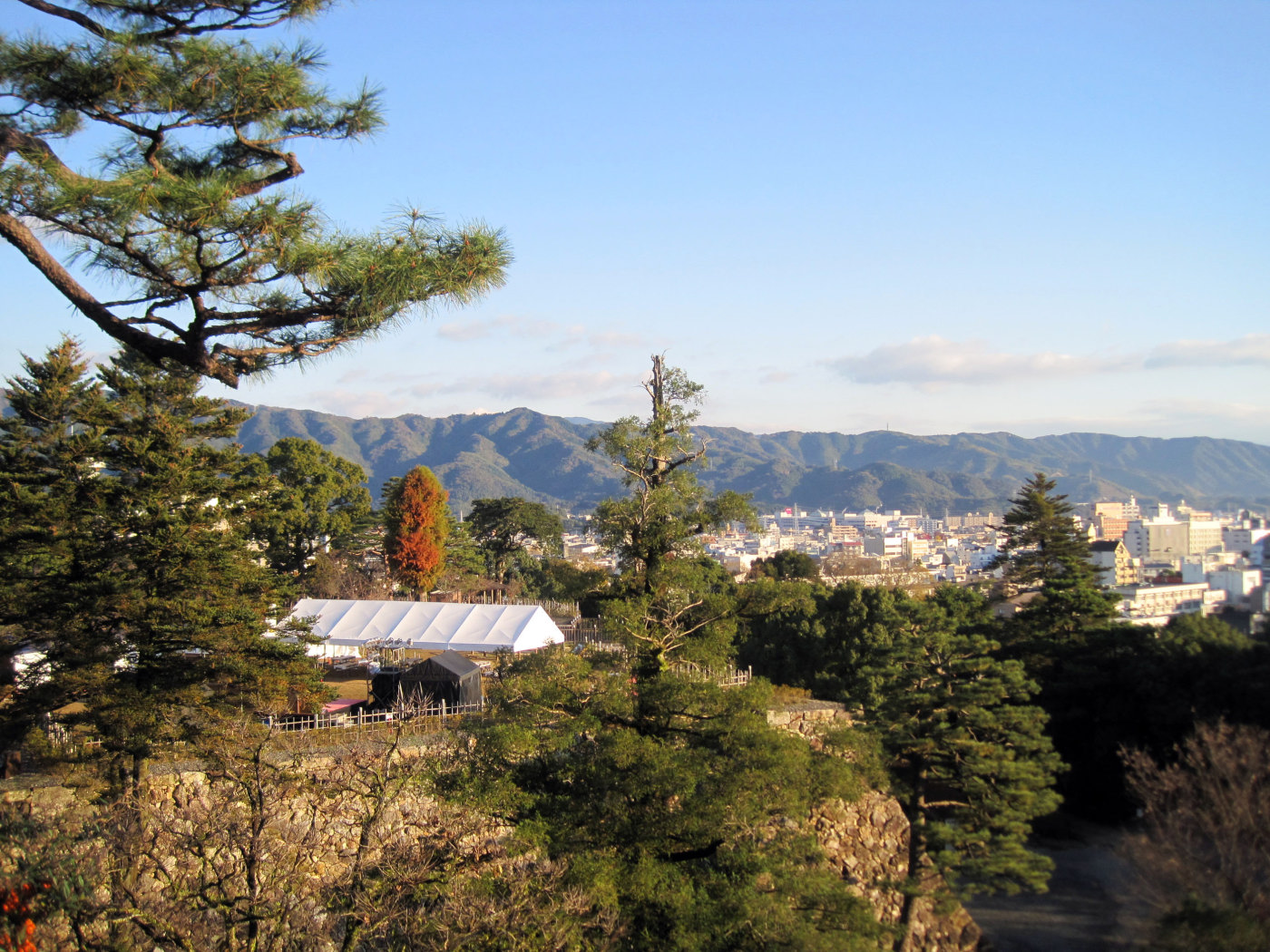 さぁさぁ・・・お城に向かいましょう! 冬の澄み切った青空に天守閣が映えています。