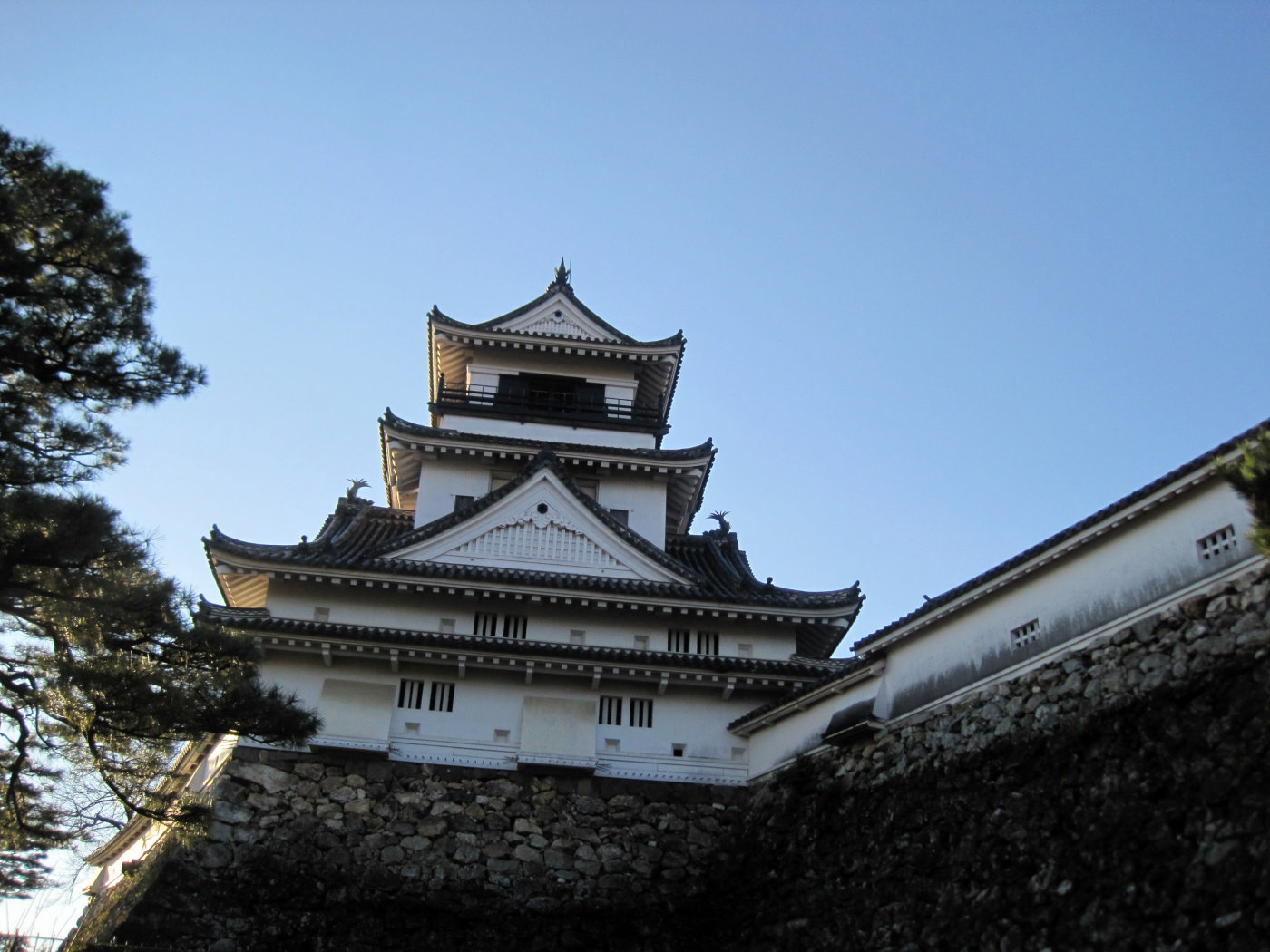 て着工され、2代忠義の時代に完成し、土佐藩庁が置かれた。4層6階の天守は、一豊の前任地であった掛川城の天守を模したといわれている。一豊により河中