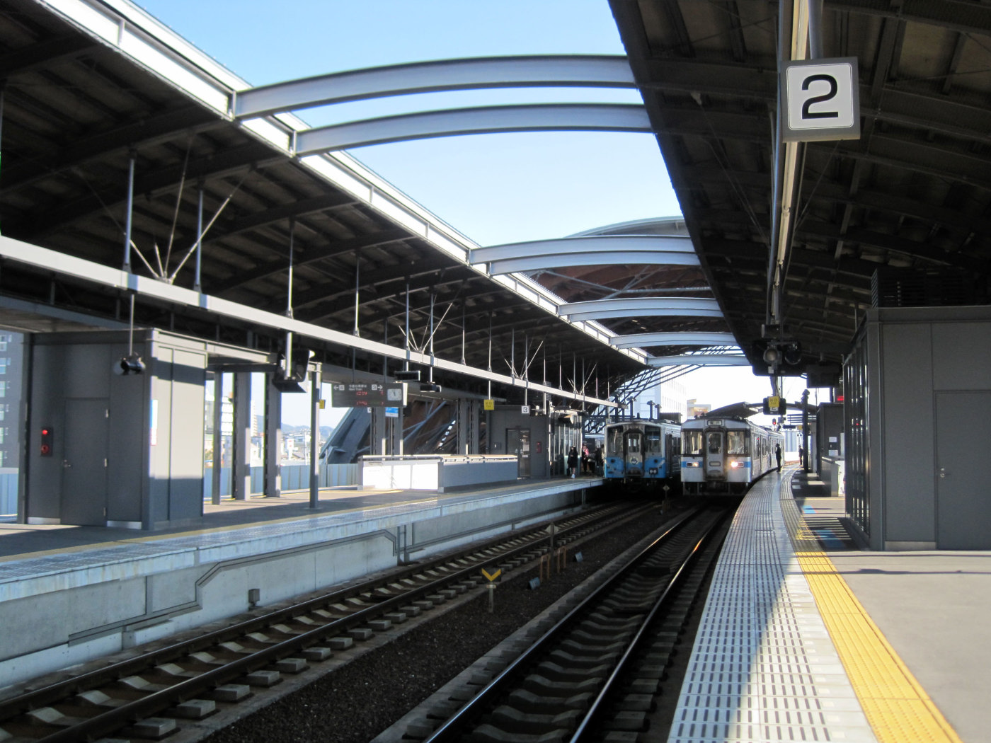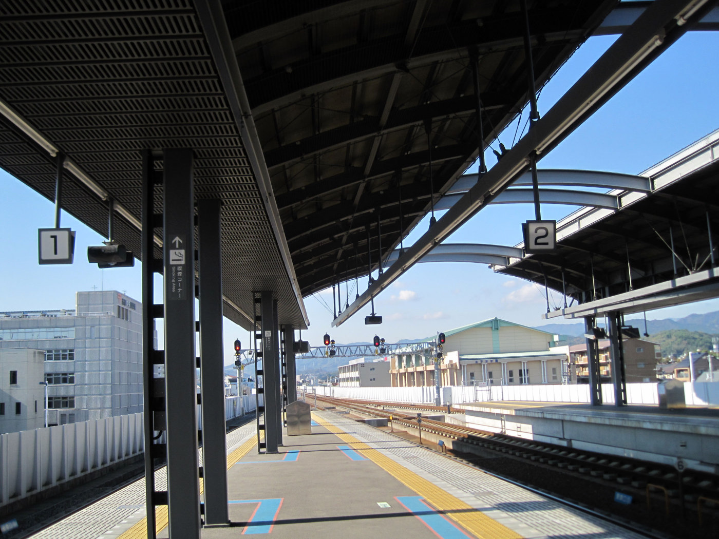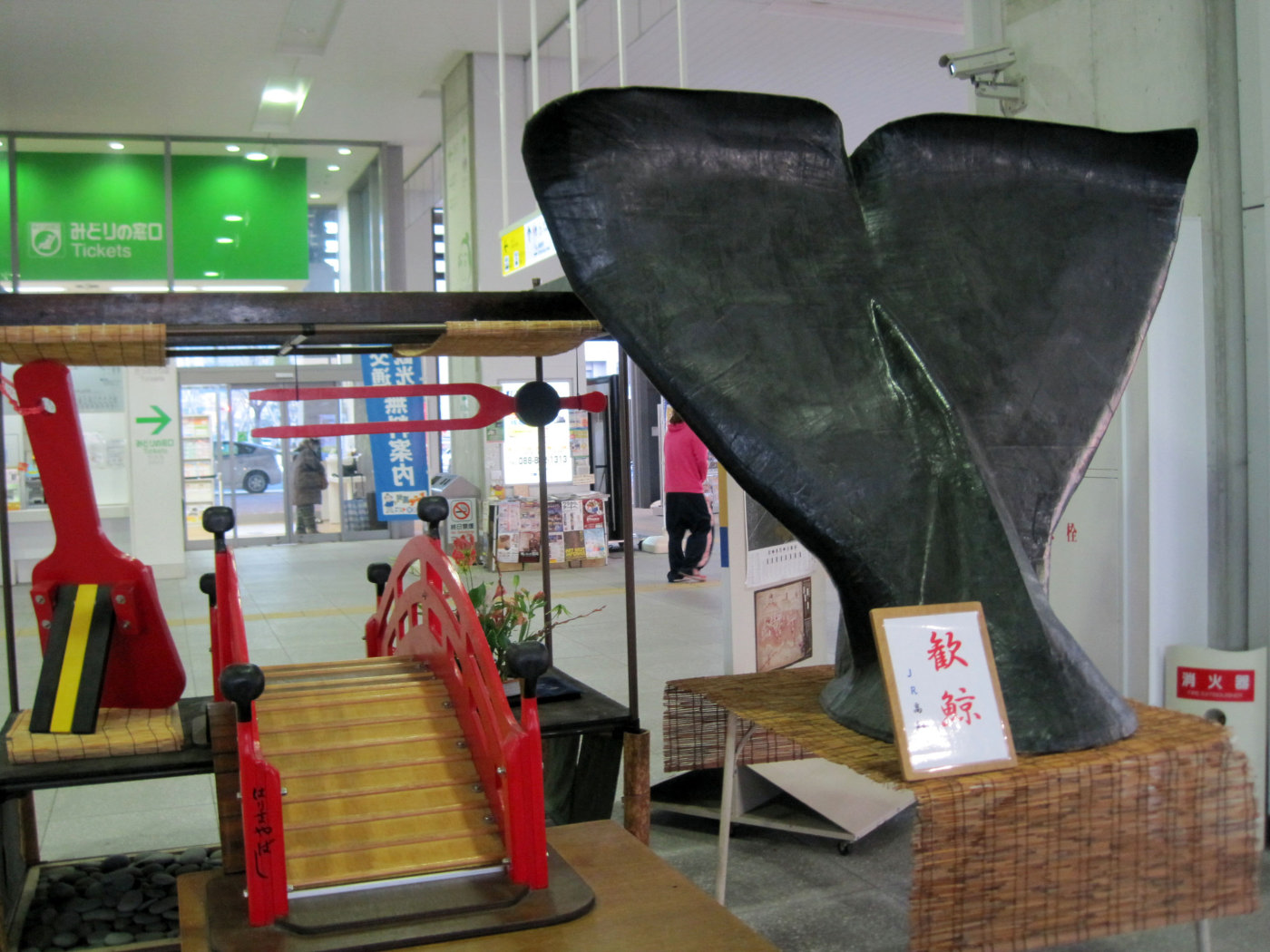 成した。内藤廣設計の新駅舎ホームは、地元の杉材で作られたアーチ状の大屋根となっている。愛称は「くじらドーム」、大きさは、線路と平行する東西方面に
