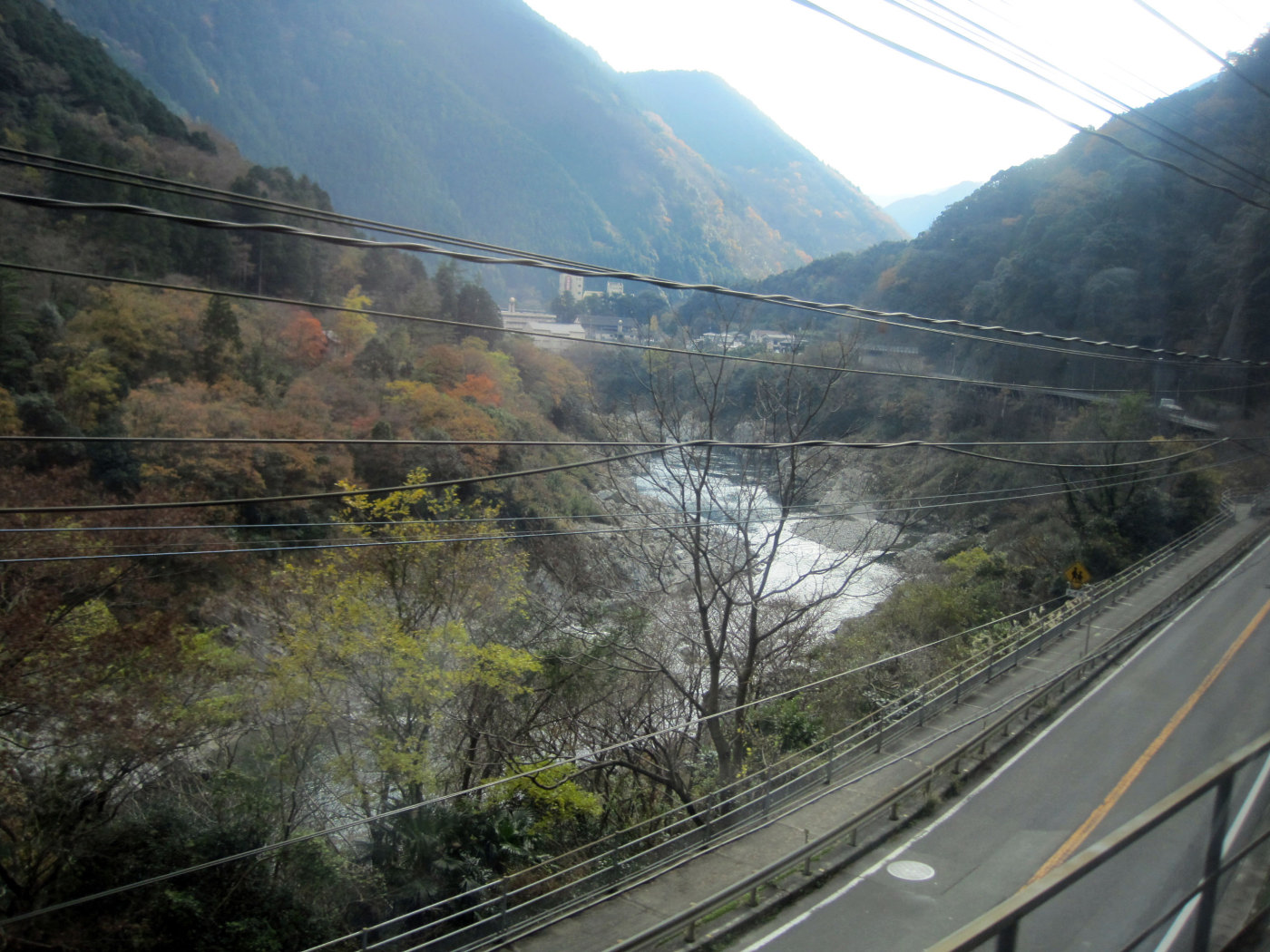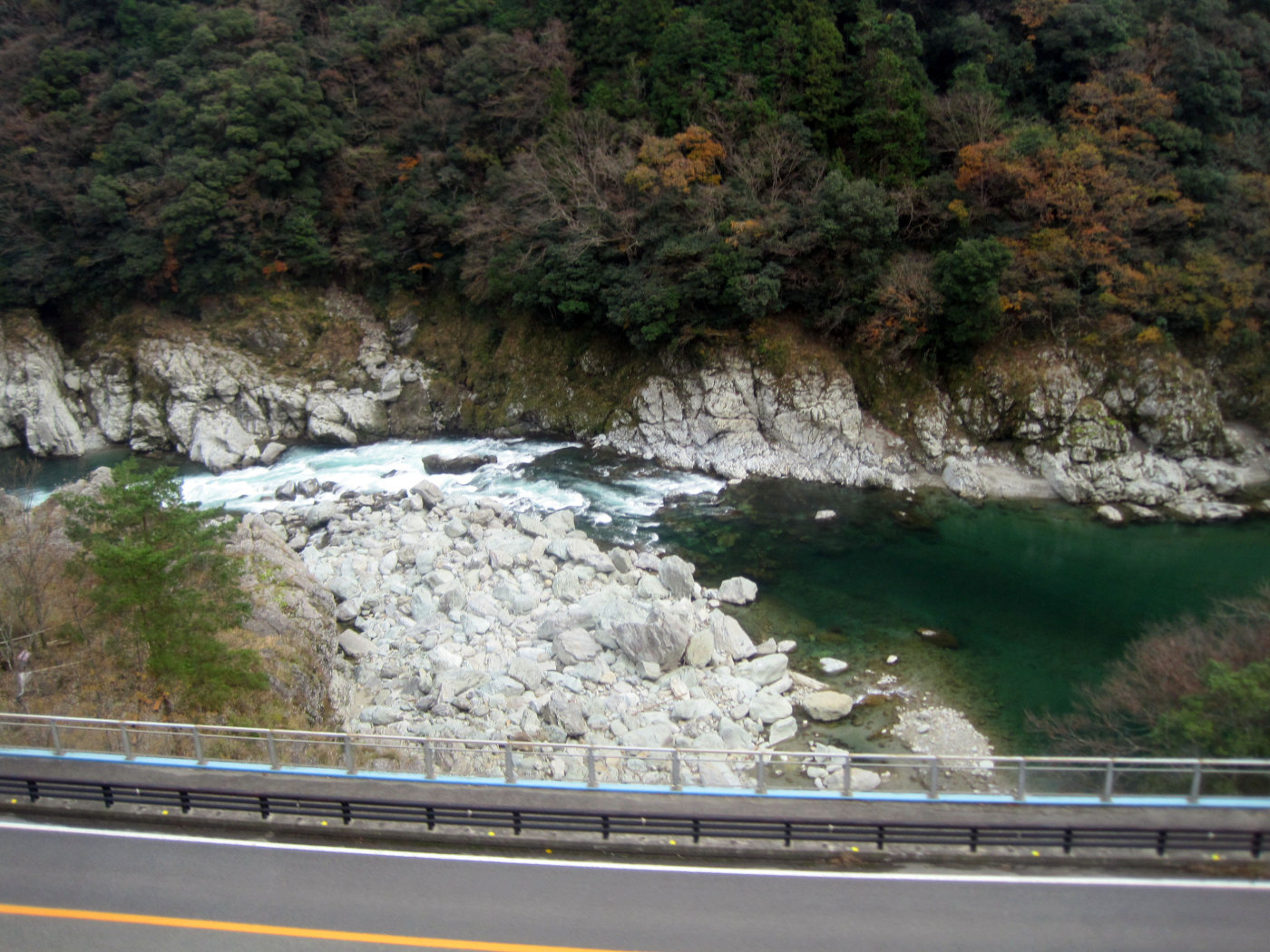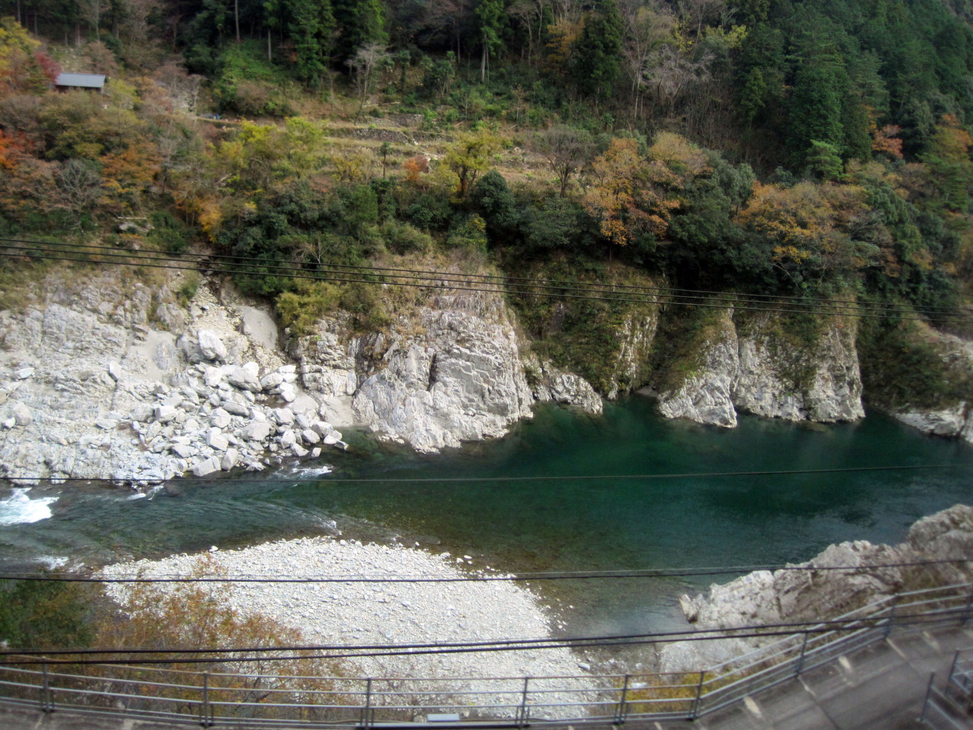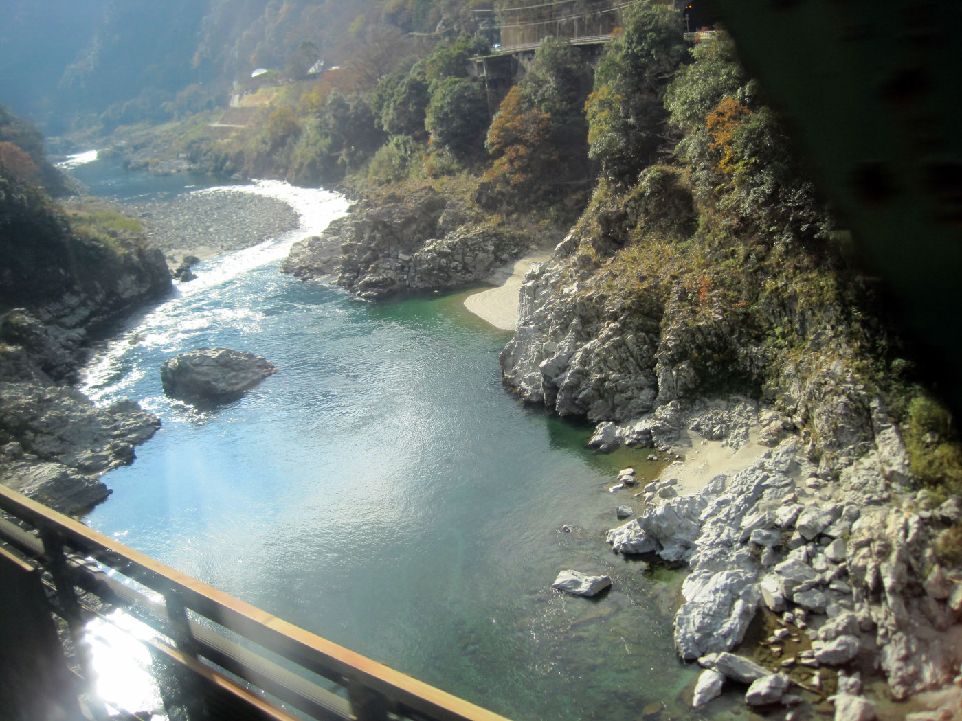 高速バスは,トンネルまたトンネルで直線で走りますが,JRは渓谷沿い・・・吉野川沿いに走ります。大歩危小歩危の景勝も通過しますが,なかなか,立木が多くってシャッターチャンスはなかったのです。