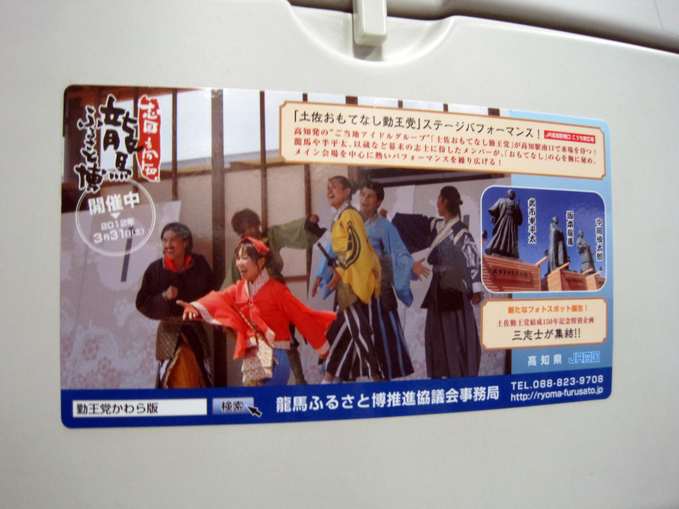 ご当地アイドルグループがイベントをしているようで車中の椅子にも掲示が・・・。