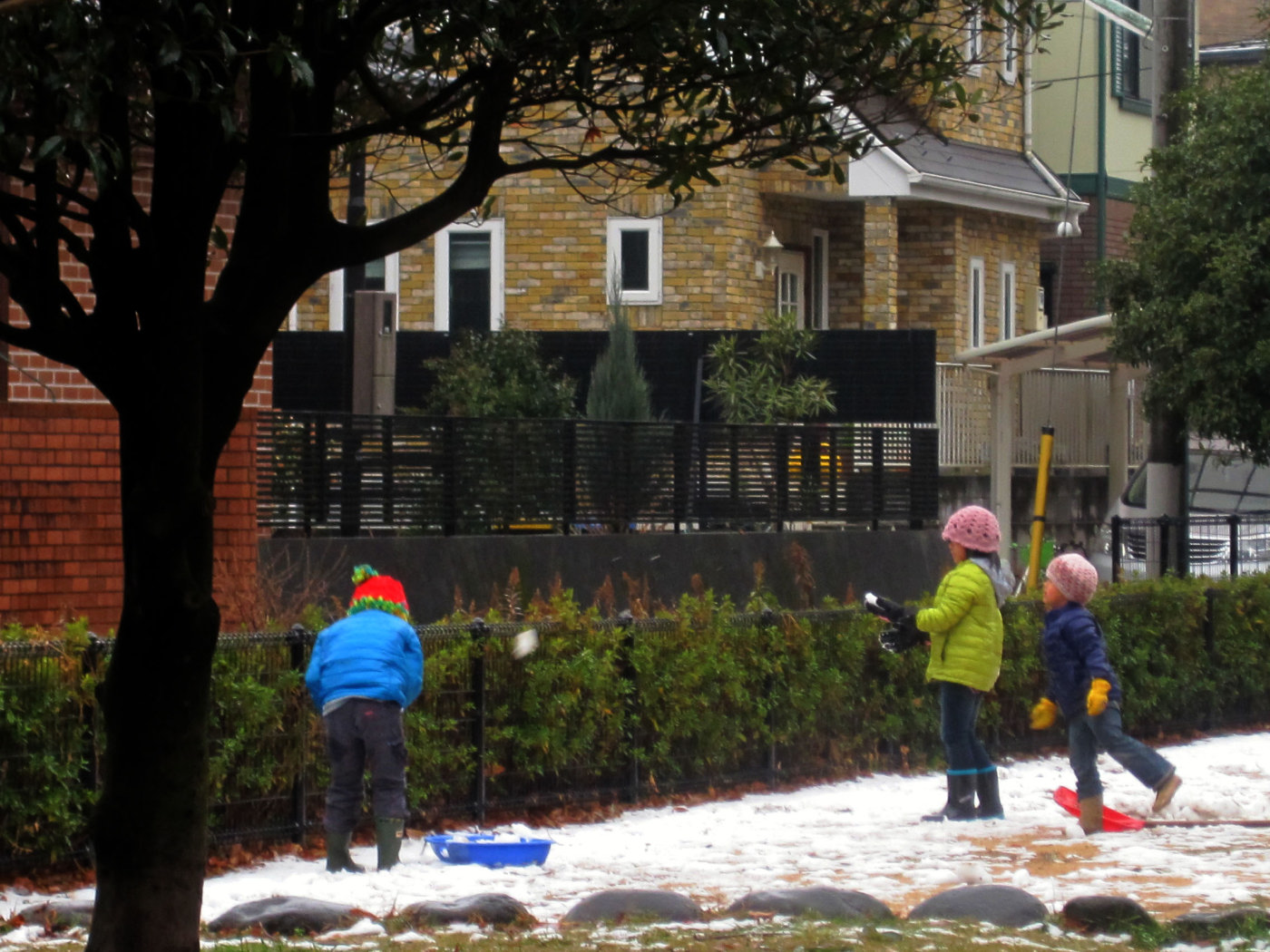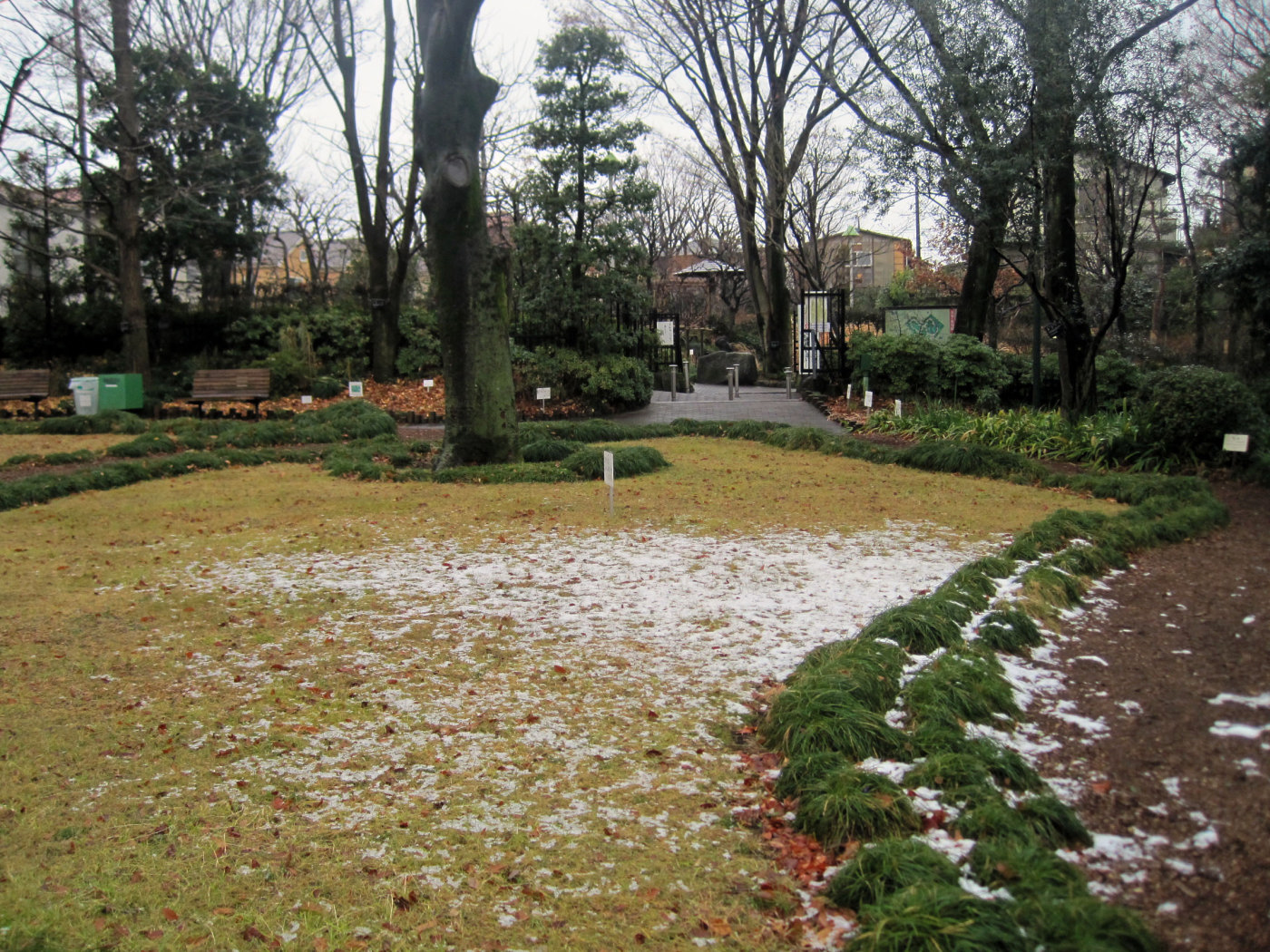 台地の上に登ってみると・・・そういえば・・・昨日は東京は雪だったそうですね・・なごり雪です。