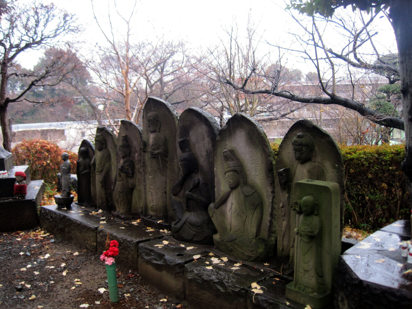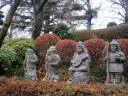 小さなお地蔵さんが,それぞれの像の周囲に置かれています。