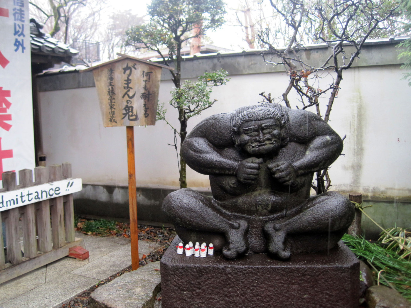 しばらく歩くと,東京大仏のお背中が見えますが,その下には,雪だるまも・・・・。