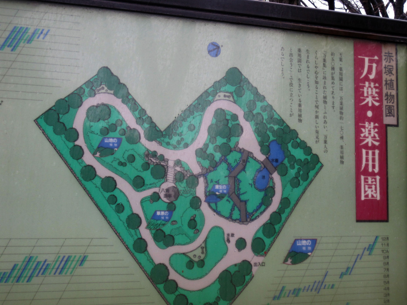 【この植物園は、武蔵野の面影を色濃く残す赤塚の丘陵地を活用し、自然や植物がより身近なものとして親しむことができるような施設として1981年(昭和56年)10月に開園しました。本園と万葉・薬用園からなり、本園は、狭いながらも樹木見本園として多くの樹種が植えられ、その下には野草も可憐な花を咲かせます。また万葉・薬用園には、万葉集に詠まれた植物や薬用植物が植えられています。】とのことです。