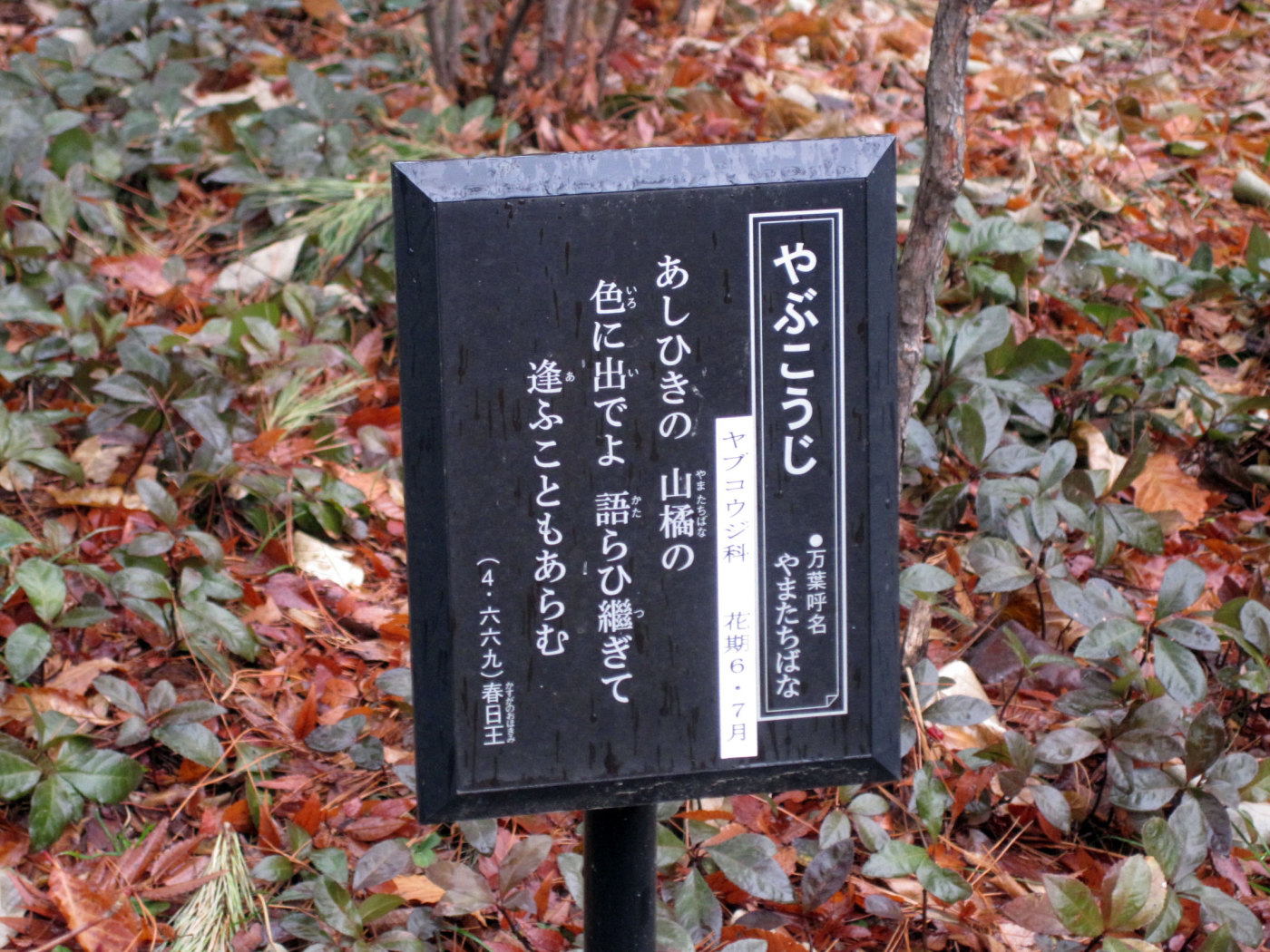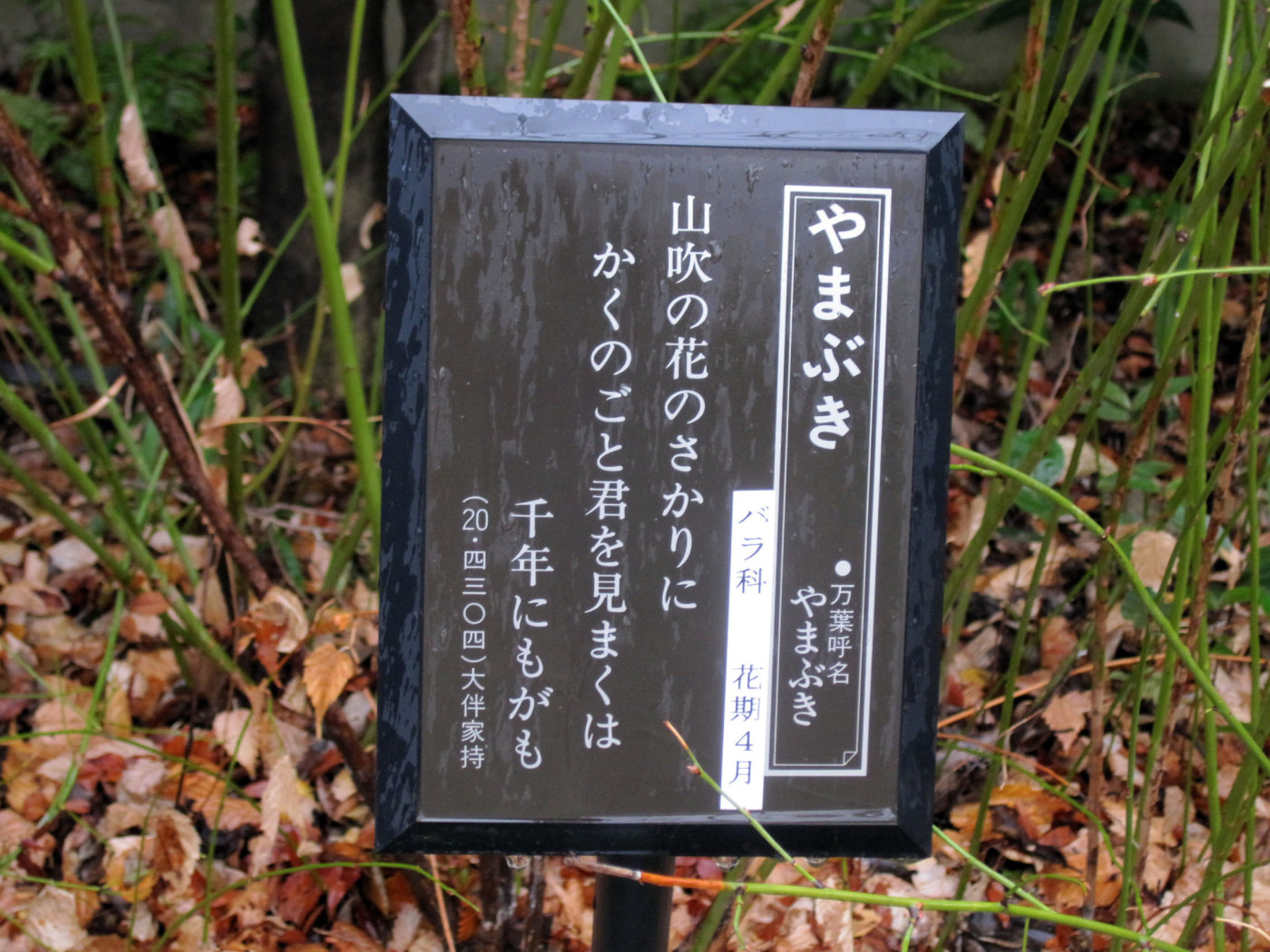 万葉・薬用園には,パネルで・・・万葉集の詩歌が・・・紹介されています。それぞれのお花は,冬はひっそりと姿を隠していますが・・・。