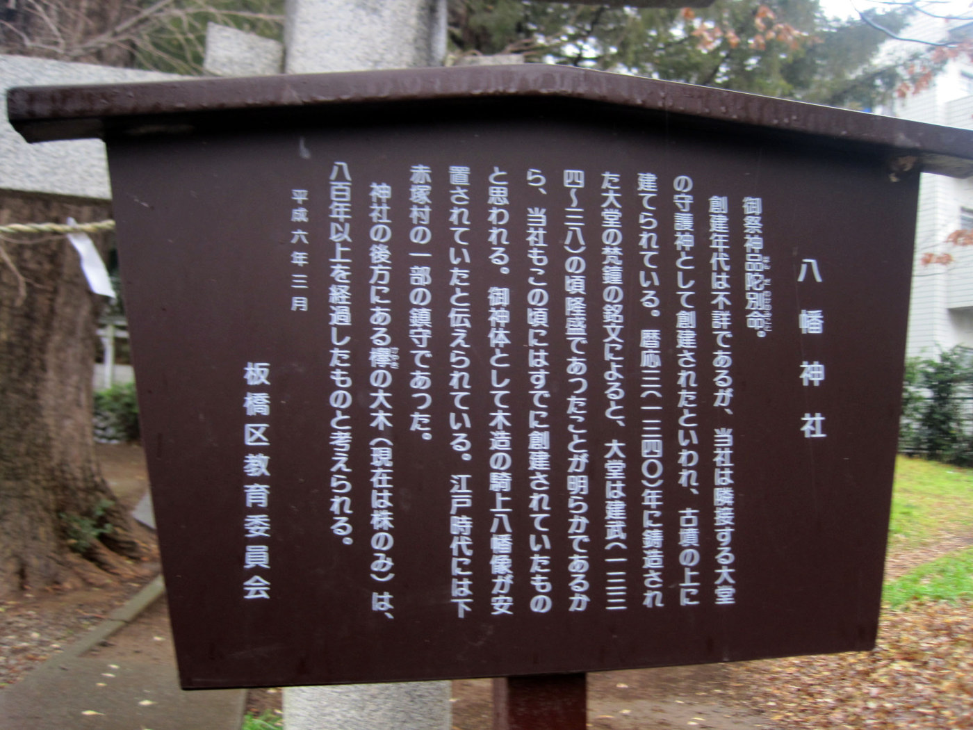【近隣にある寺院で、松月院が管理している。現在では阿弥陀堂と梵鐘のみ残されているが、創建は大同年間(806-810年)と板橋区最古を誇る。戦国時代に焼失したが、かつては七堂伽藍があった大寺院であったという。梵鐘は暦応3年(1341年)の作で都内最古のもの。】だそうです。元々,別寺院で,今は松月院さんの管理ってことですね。