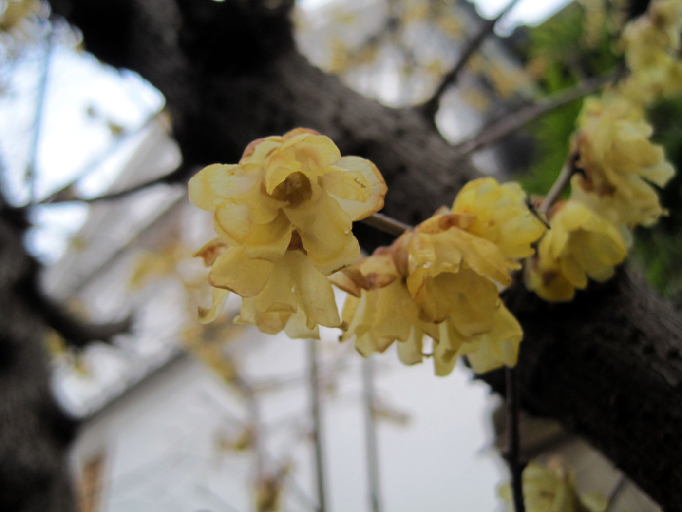 蝋梅は・・・昨日の雨の後で,少ししょんぼりした感じ