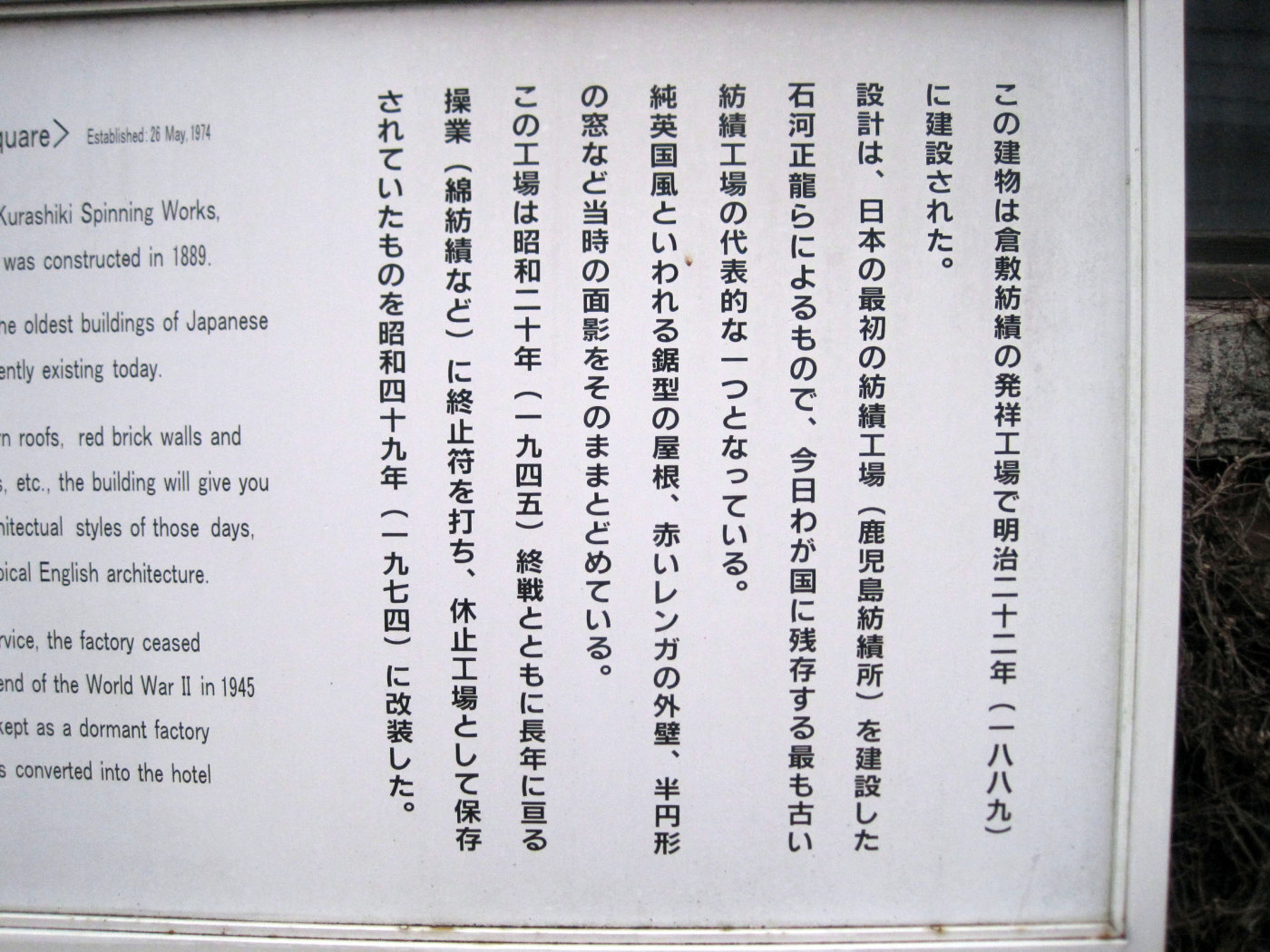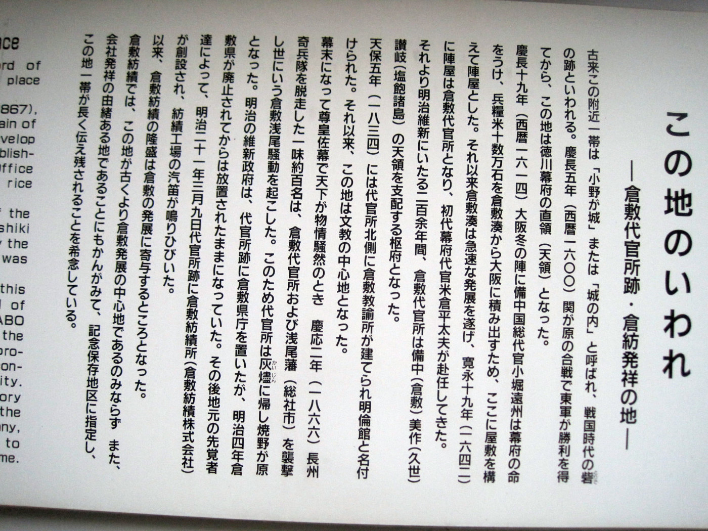 代官所跡であり,倉敷紡績の最初の工場跡です。