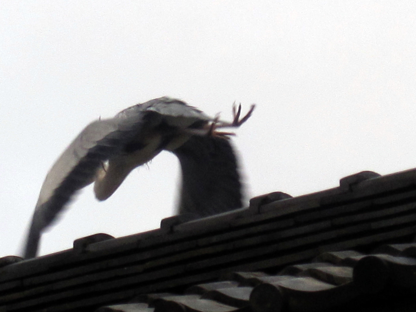 飛び立ったかと思ったら,また,別の屋根の上です。