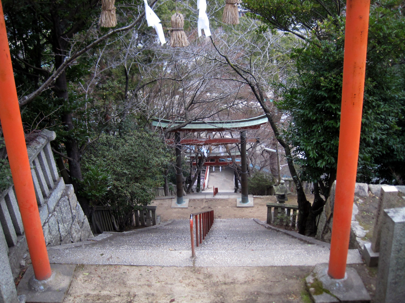 参道は,JR山陽本線の上をわたり,かつ,架橋の道路の下をくぐるって感じでした。