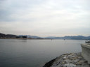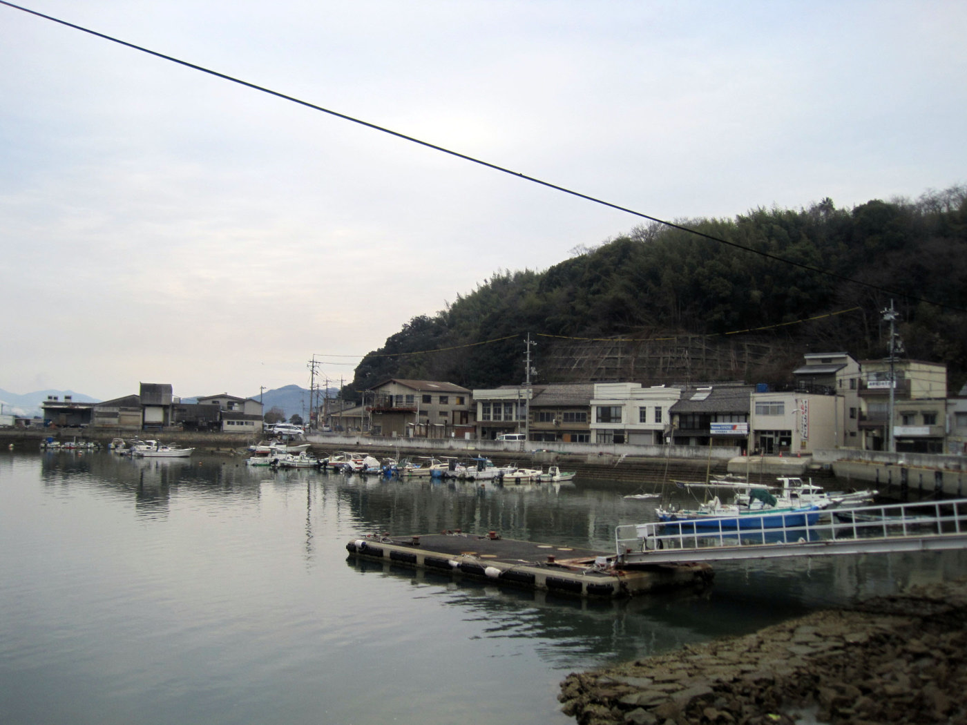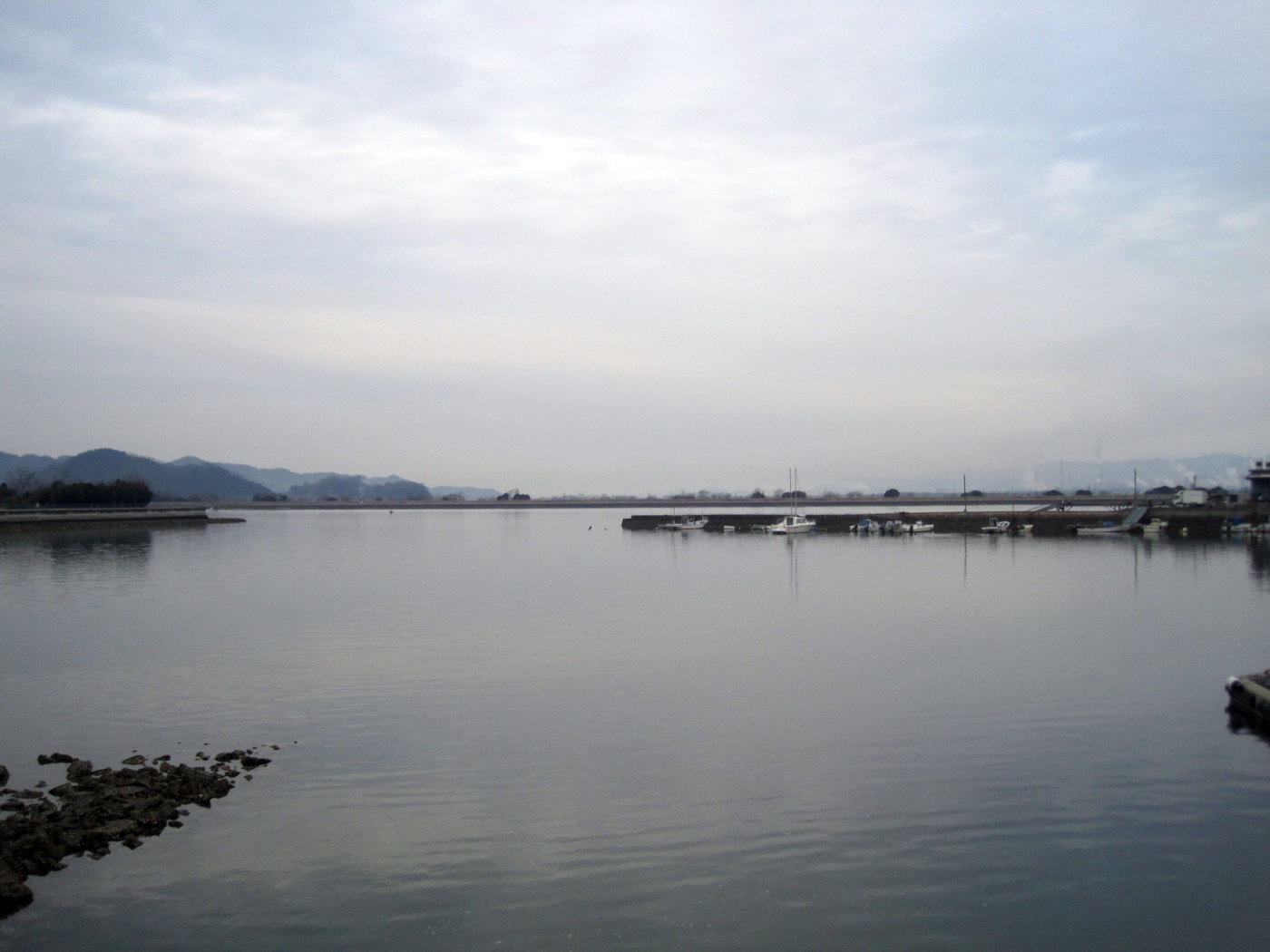 美の浜沿いに東南の方向へ歩きます・・・干拓されたので,港・・・フェリーの航路は,狭い水路を進む感じのようです。