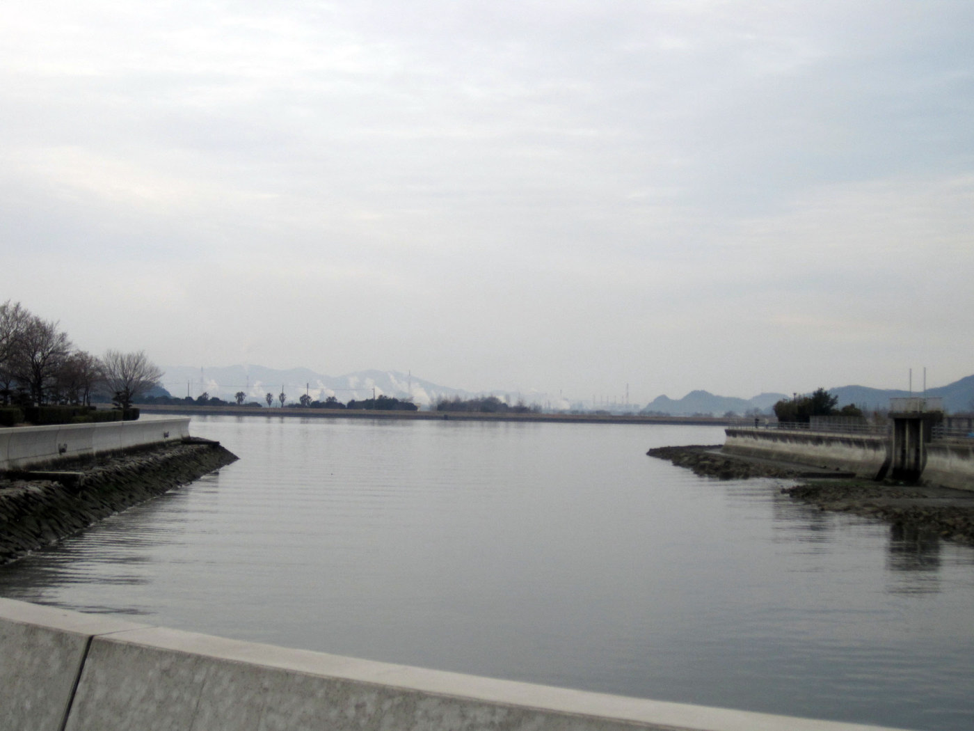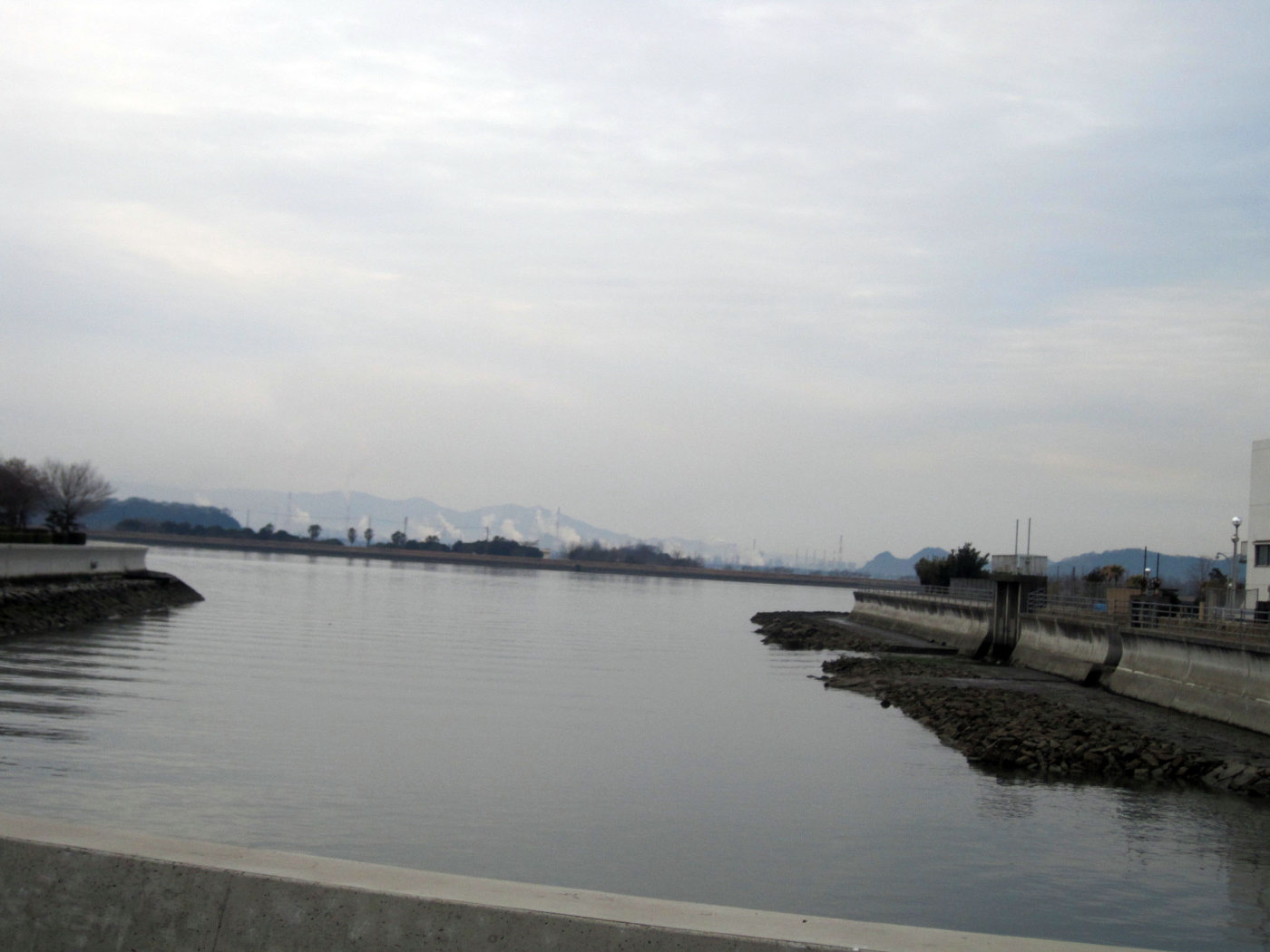 ここは水門で区切られている多分,半分海,半分淡水って感じの池ですね。笠岡終末処理場があります。