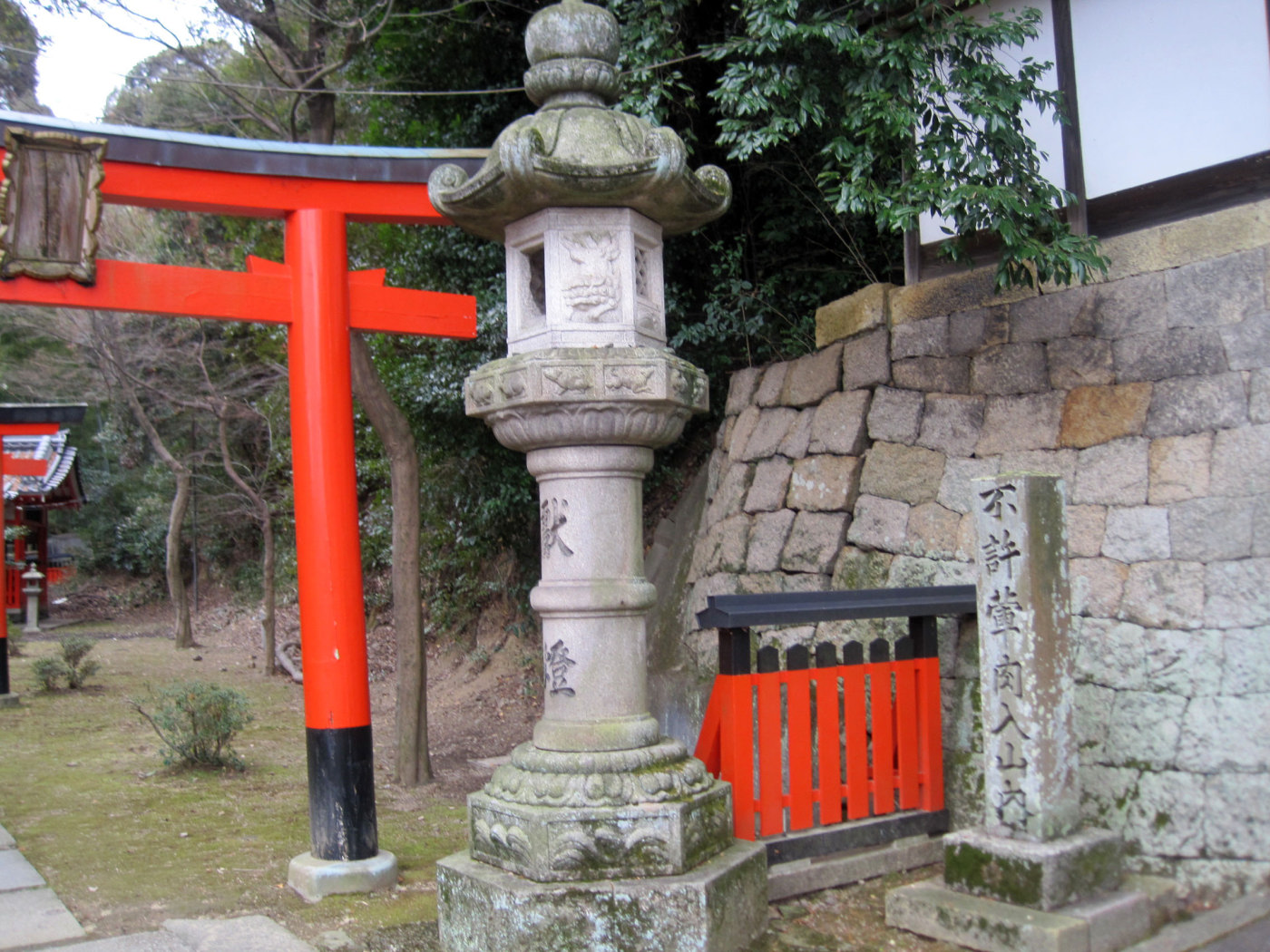 急な石段を昇ると・広い境内と立派な灯籠が目に入りました。